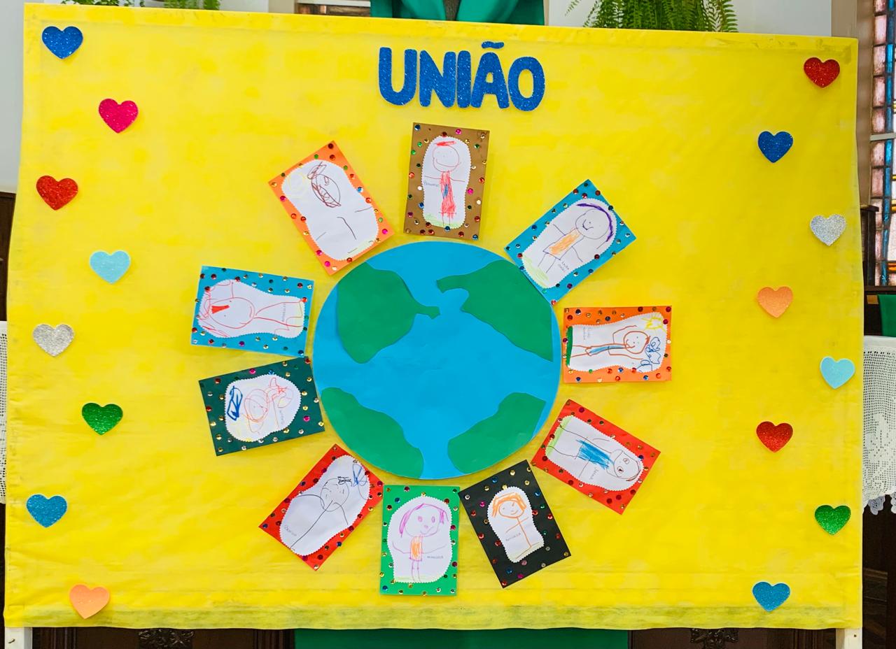 Em sala de aula, refletiu-se sobre tudo que as crianças podem fazer para praticar a união e o que as deixam mais felizes e como podemos agradecer por isso.