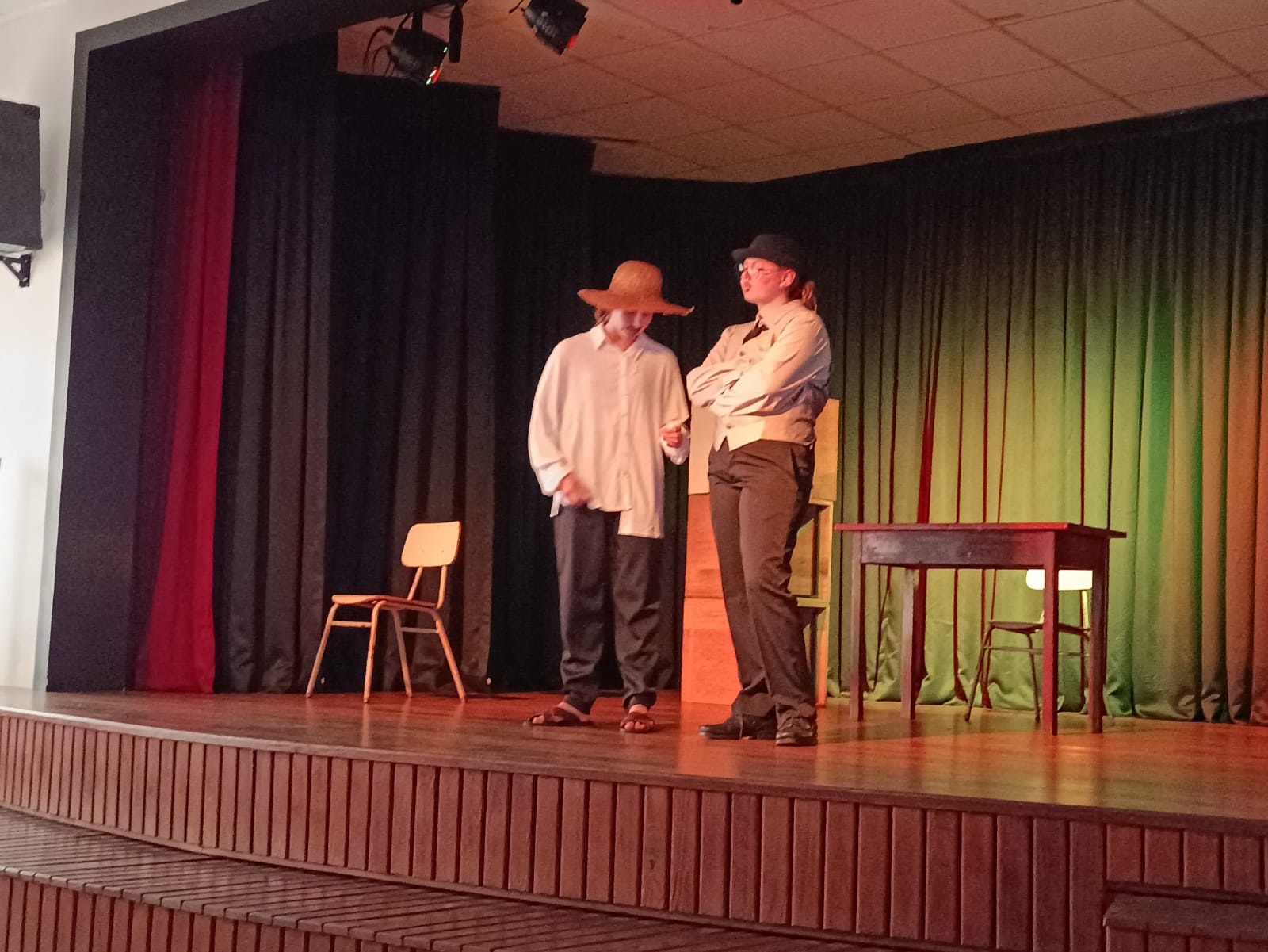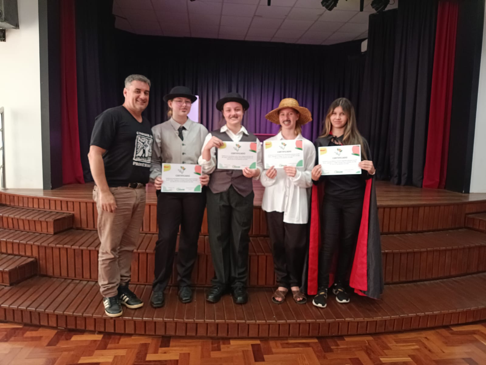 O grupo de Theatro Catavento, do Instituto Sinodal Da Paz, apresentou para os colegas a peça "A farsa do Advogado Pathelin" que foi apresentada na Atese, em Gravataí. Ao final, as integrantes do grupo receberam os certificados de participação da Atese.