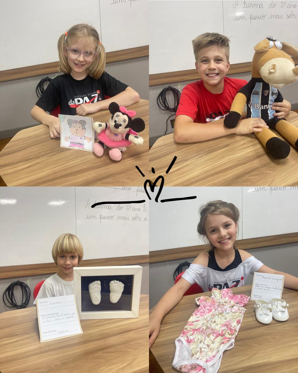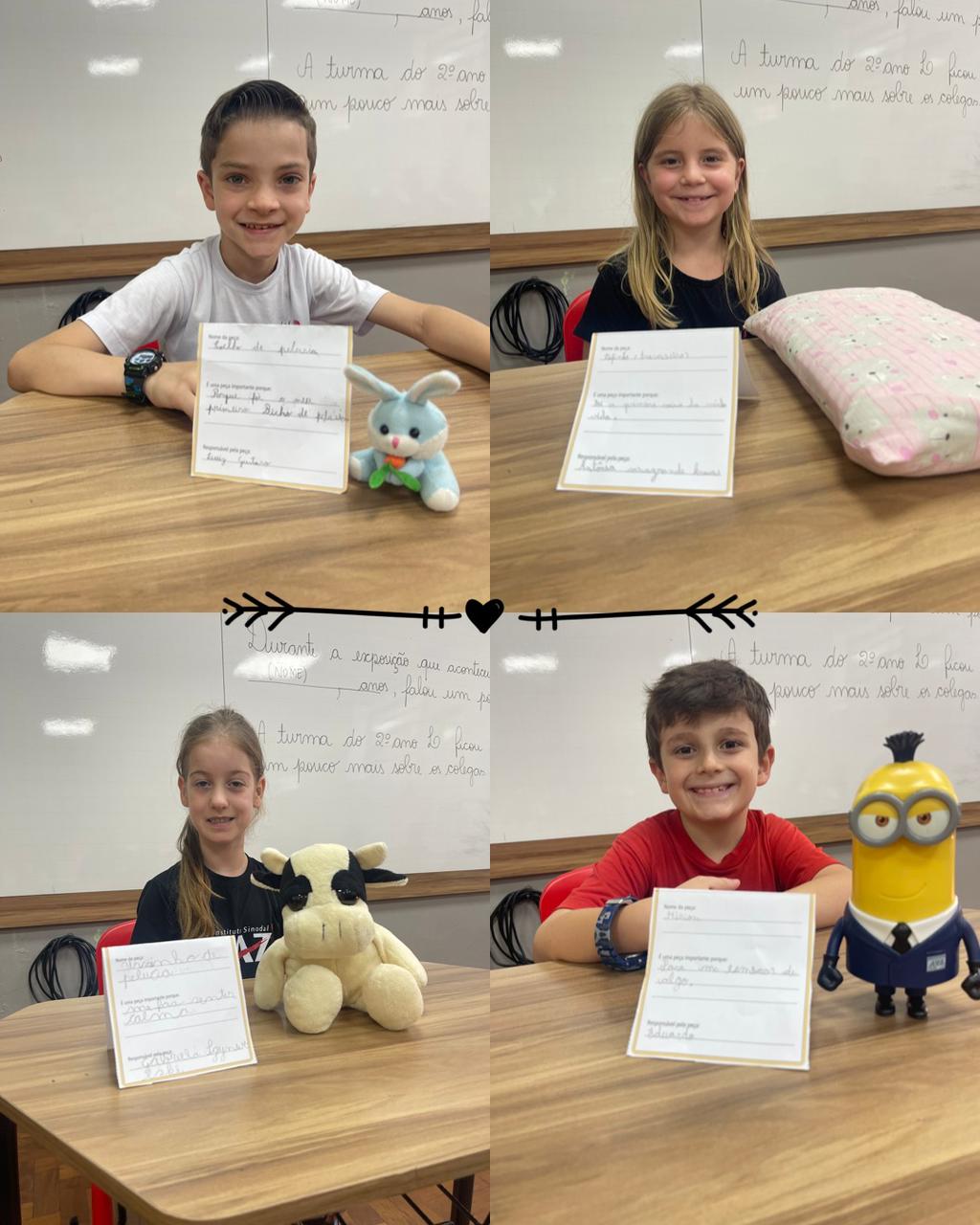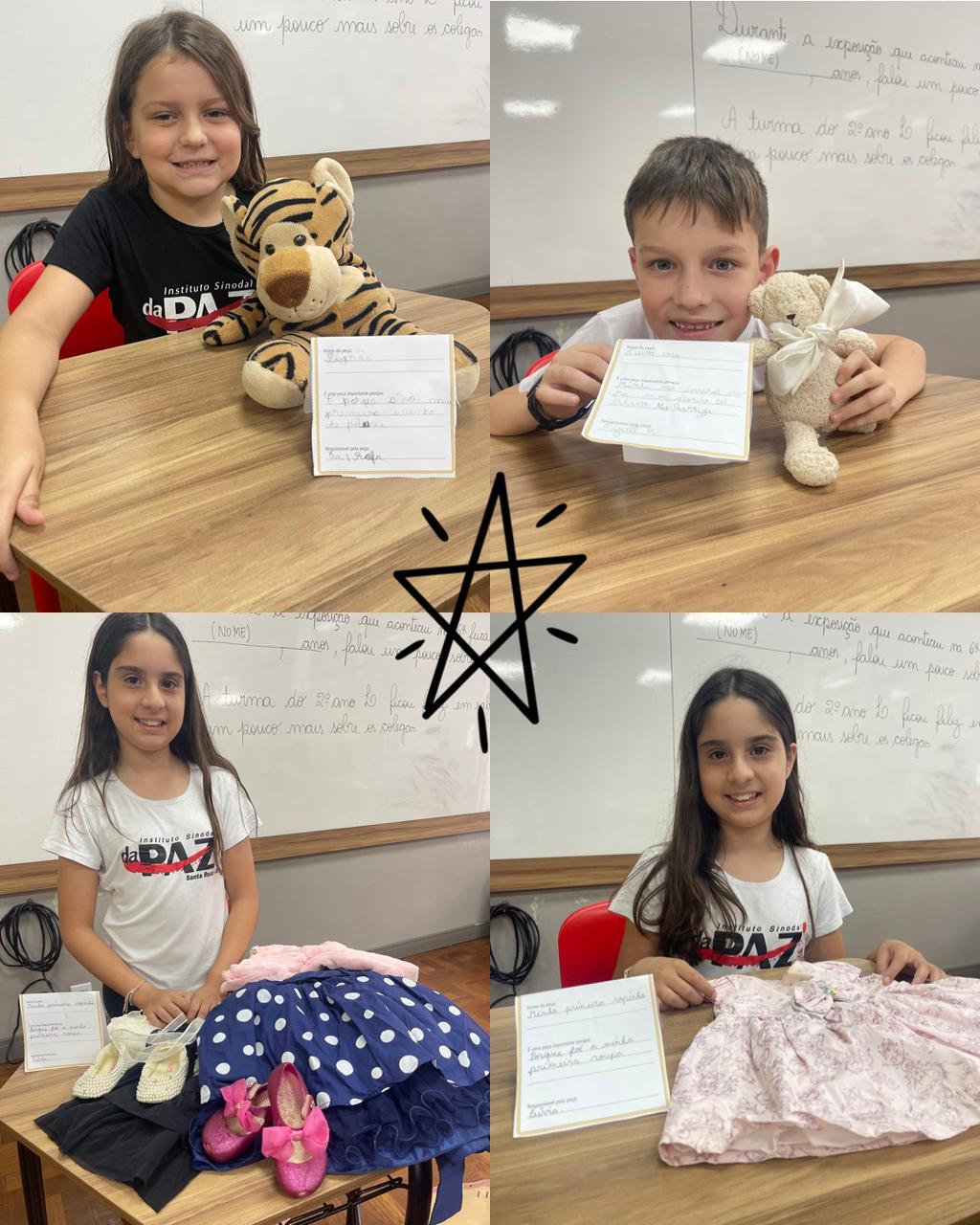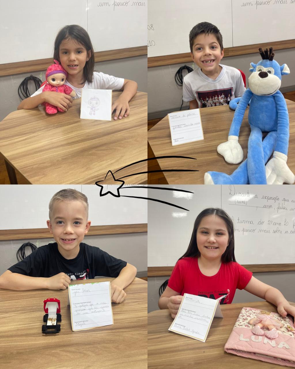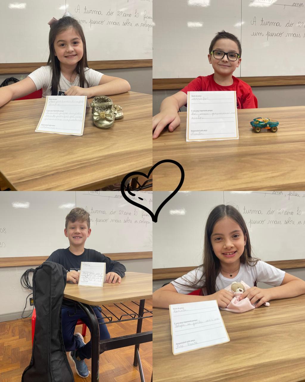 Nas aulas de Língua Portuguesa, os estudantes do 2ºL organizaram uma exposição, cujo o tema foi "A vida dos alunos do 2º ano L". Para montá-la cada estudante procurou em casa, com ajuda da família, um objeto que, conta um pouco sobre a sua vida. Trabalhamos a autonomia dos estudantes, bem como a sua responsabilidade de zelar pelo objeto escolhido. Foram momentos lindos e cheios de memórias afetivas, vivenciadas pelas crianças com seus familiares. Confira as fotos: