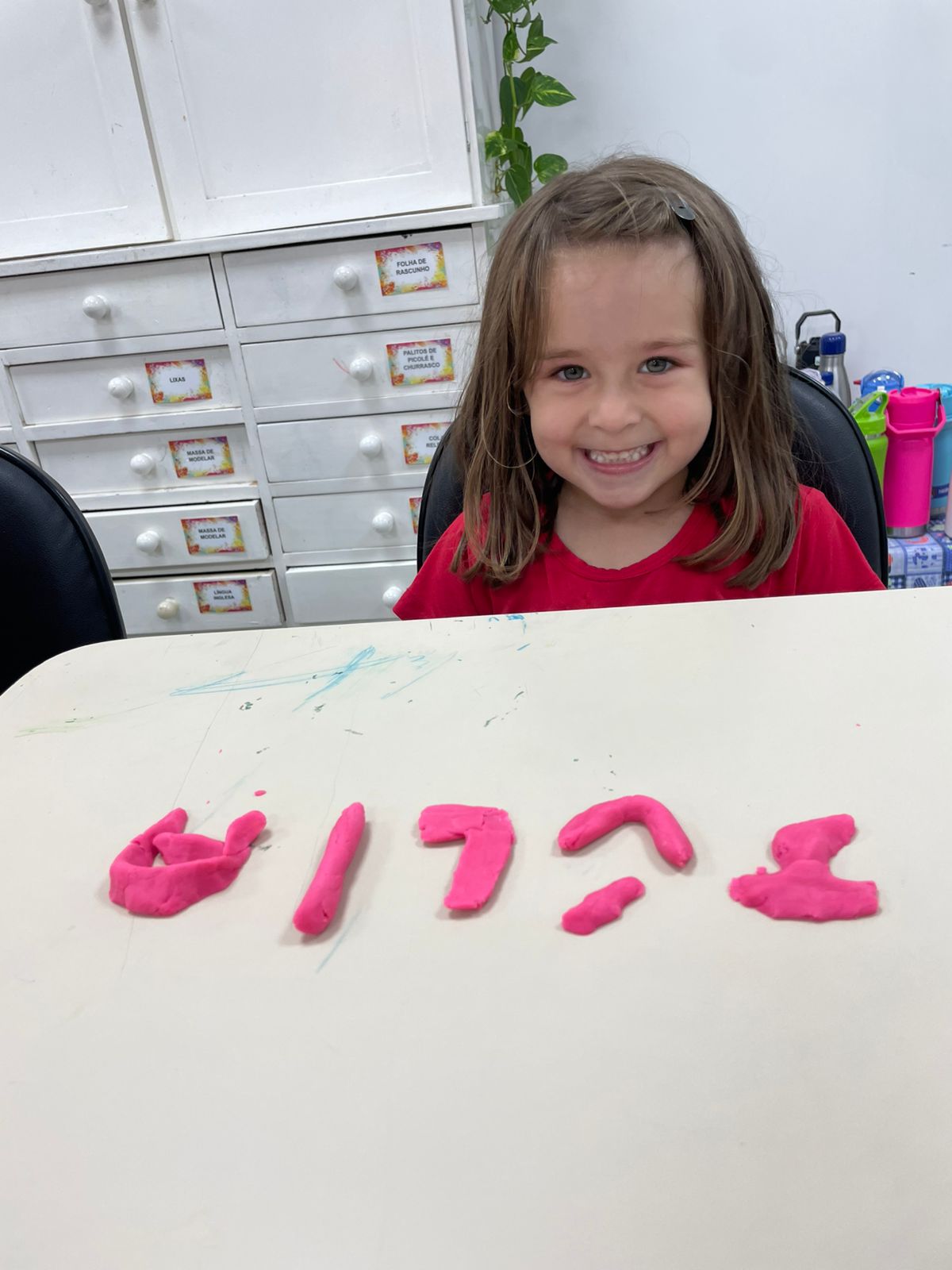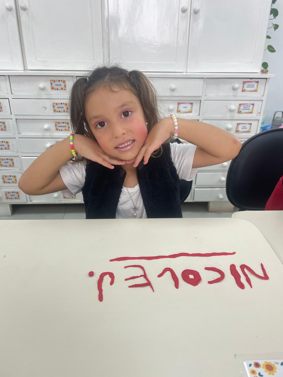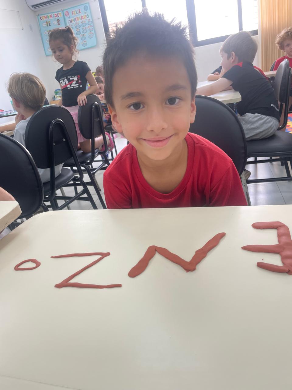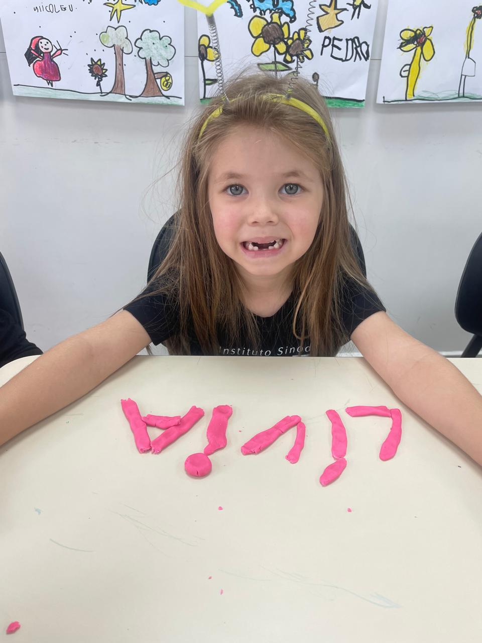 A turma da pré-escola (05 anos) da professora Janete recebeu um desafio super divertido: modelar seu próprio nome com massinha de modelar!