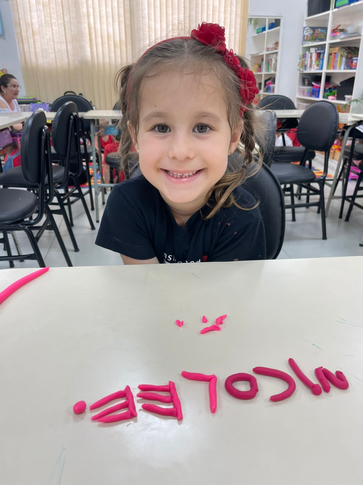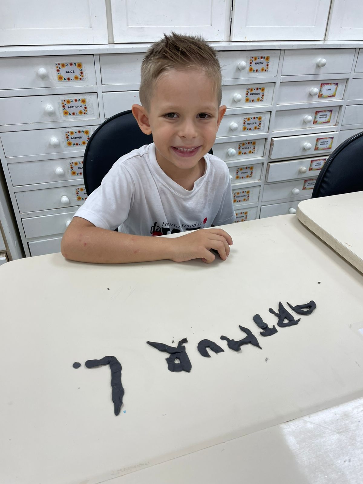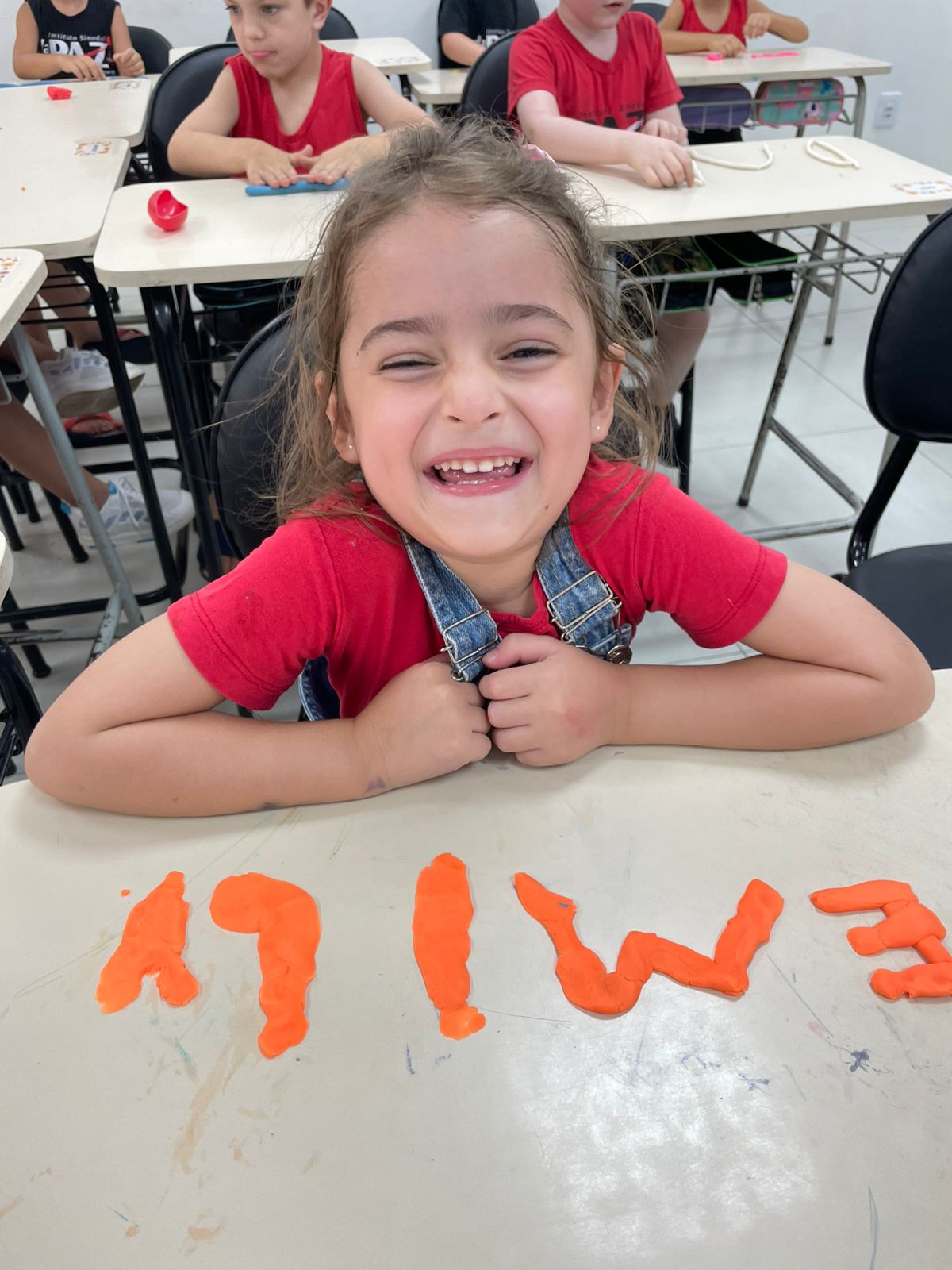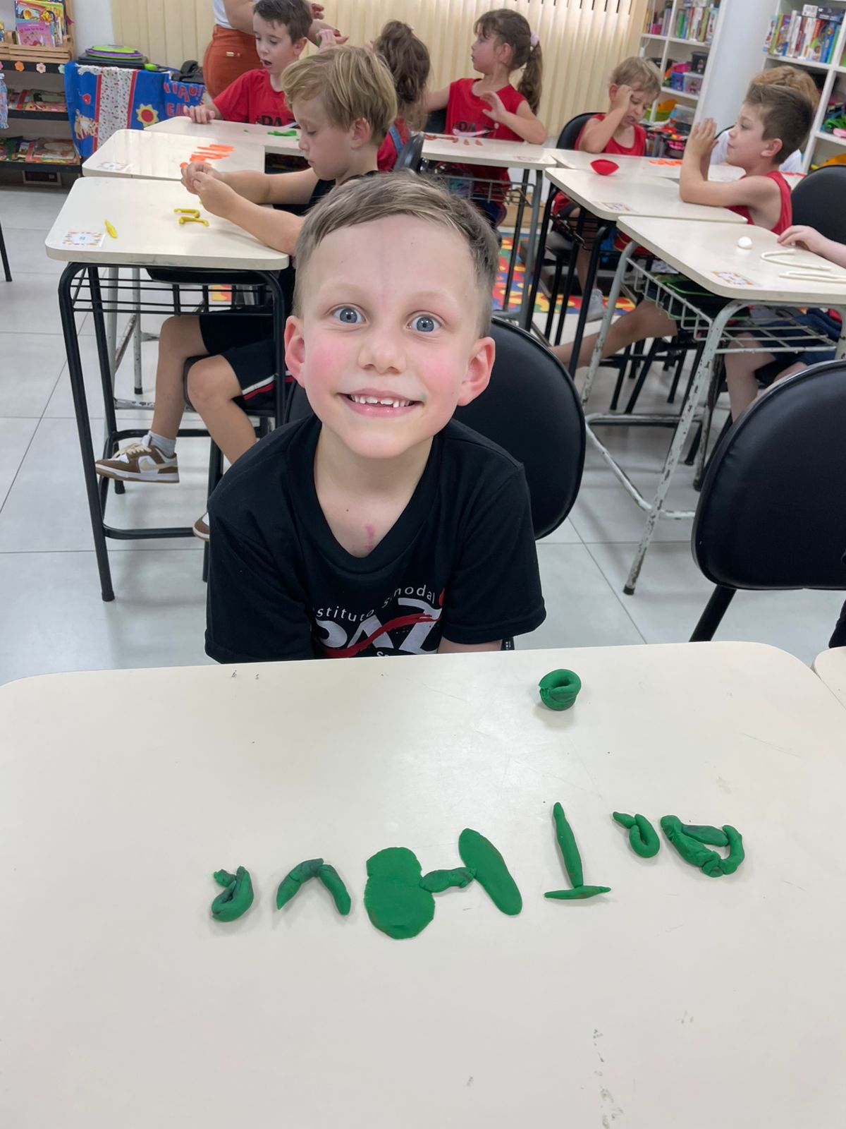 A turma da pré-escola (05 anos) da professora Janete recebeu um desafio super divertido: modelar seu próprio nome com massinha de modelar!