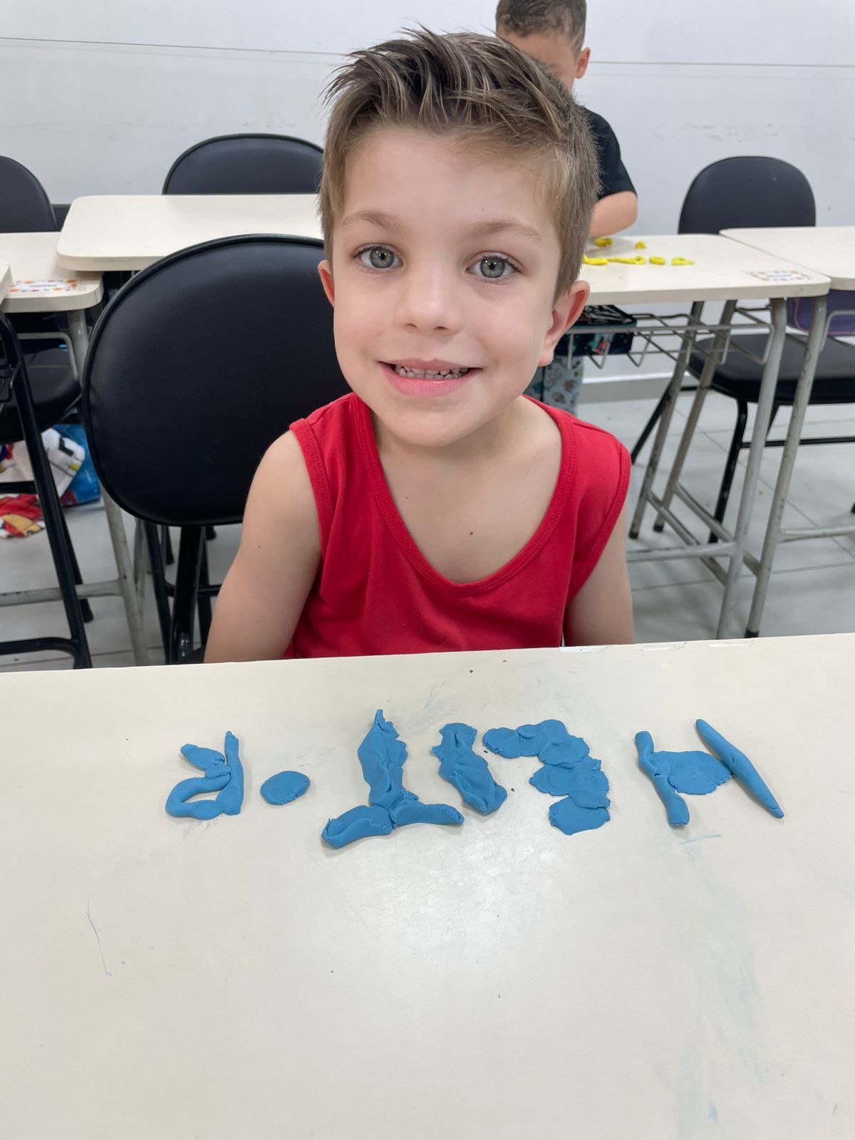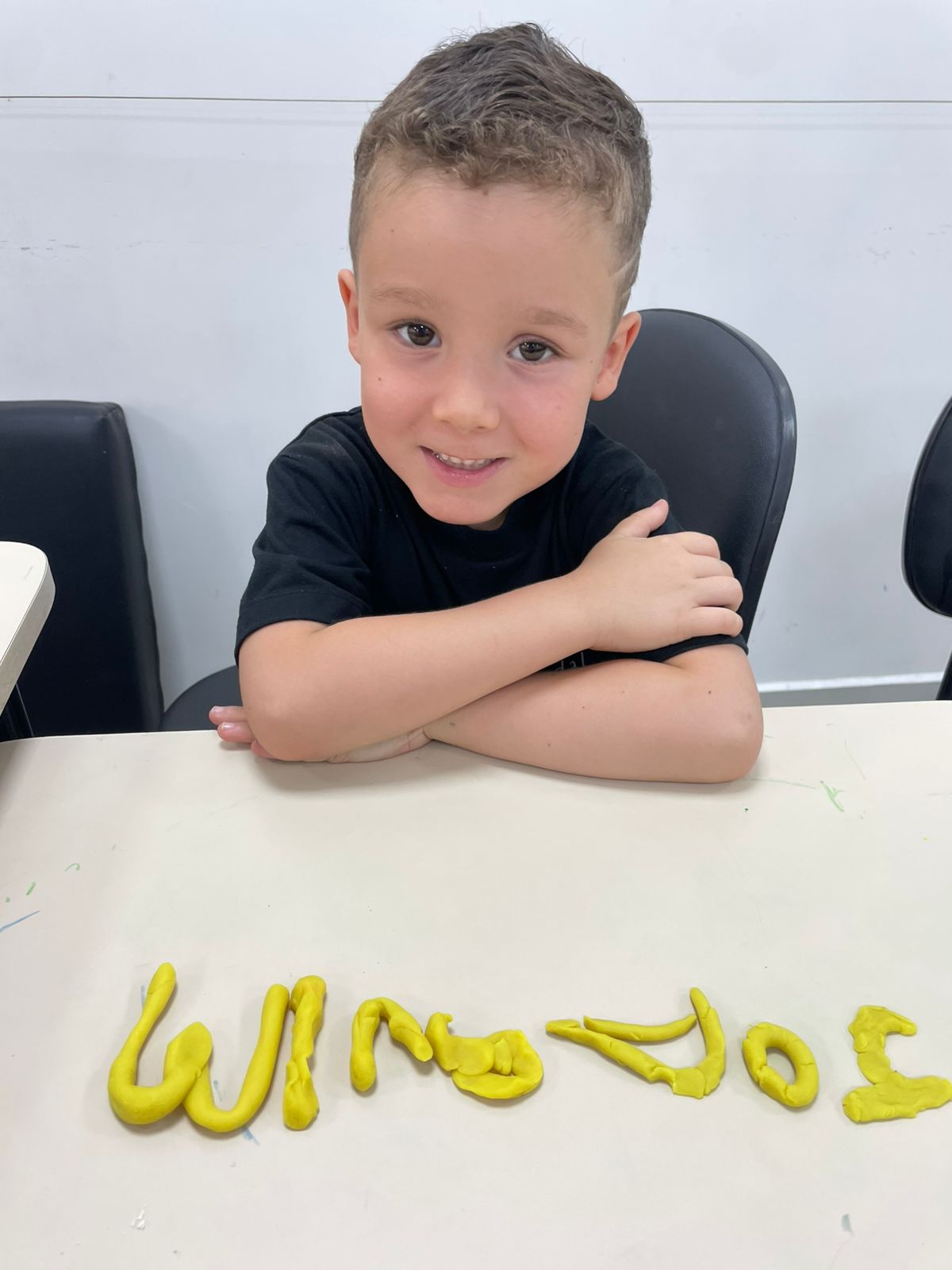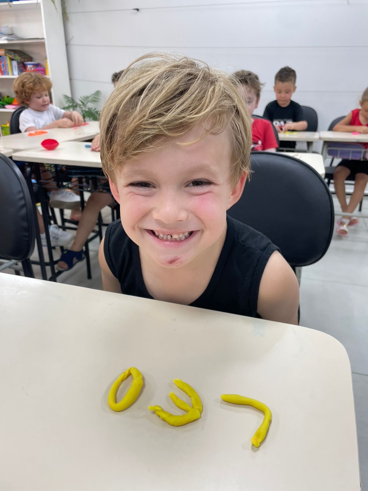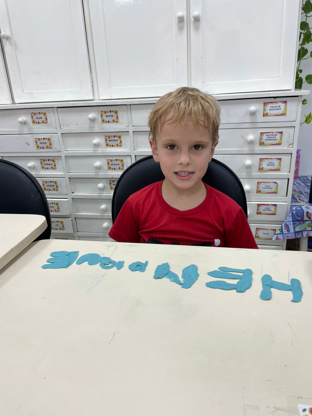A turma da pré-escola (05 anos) da professora Janete recebeu um desafio super divertido: modelar seu próprio nome com massinha de modelar!