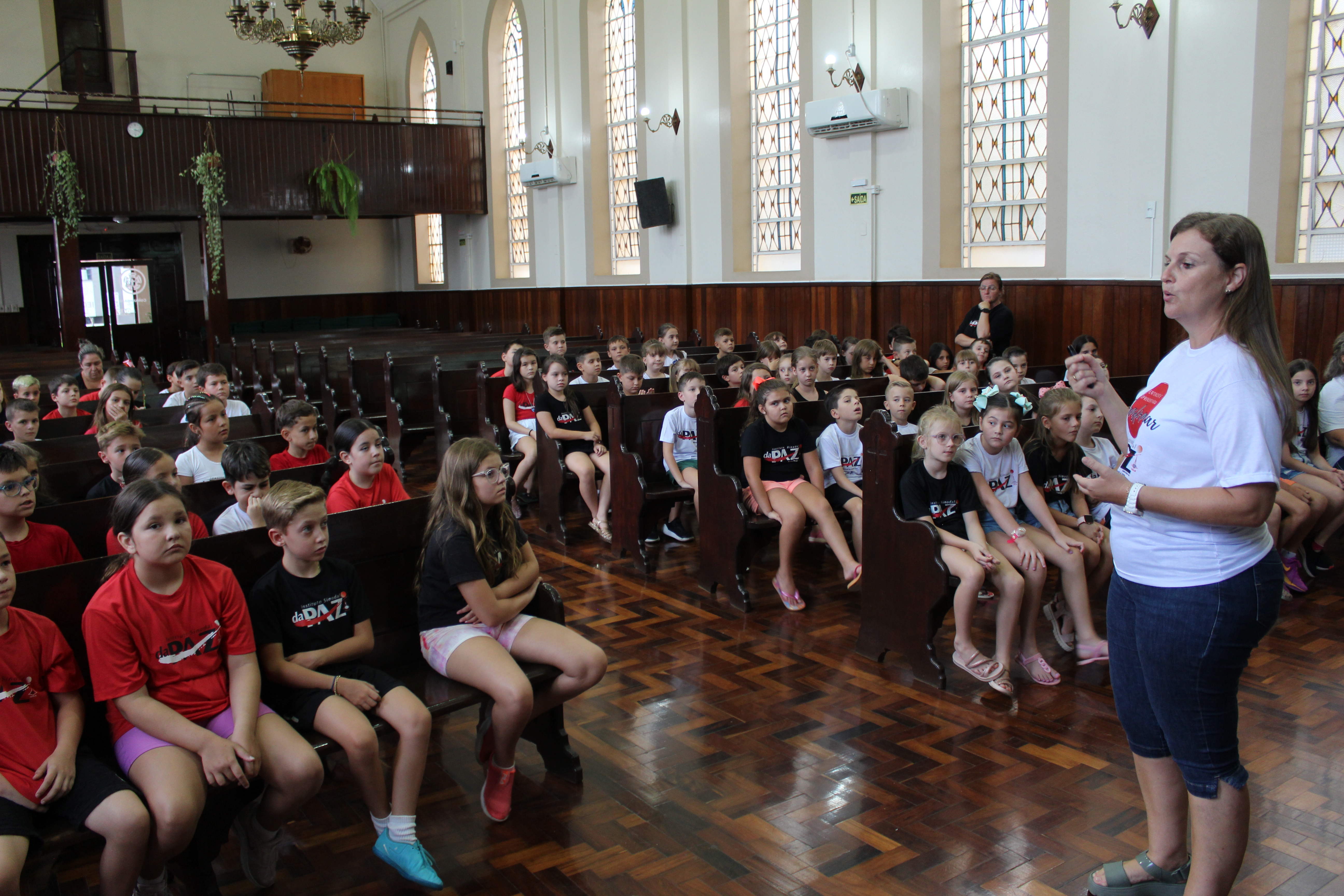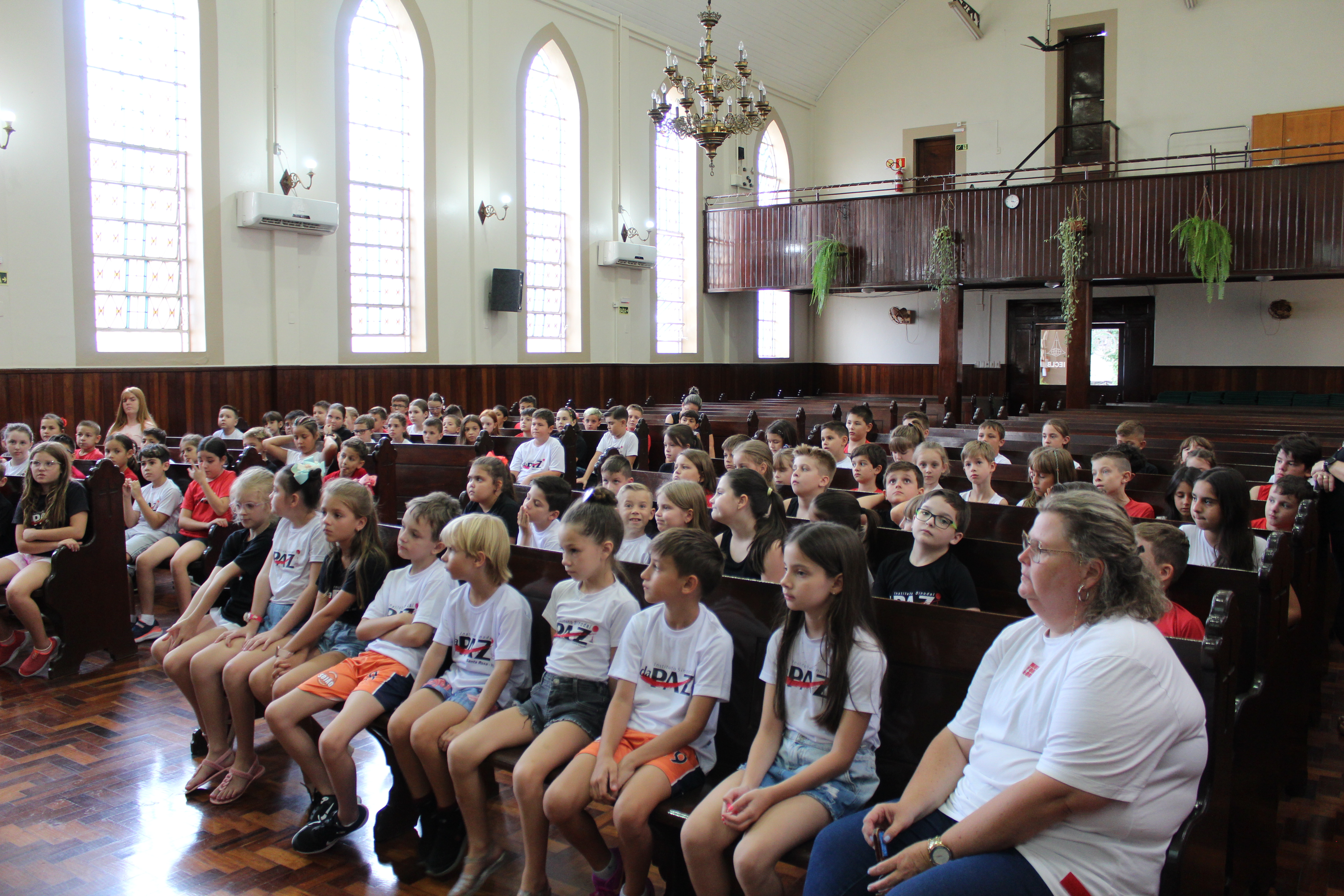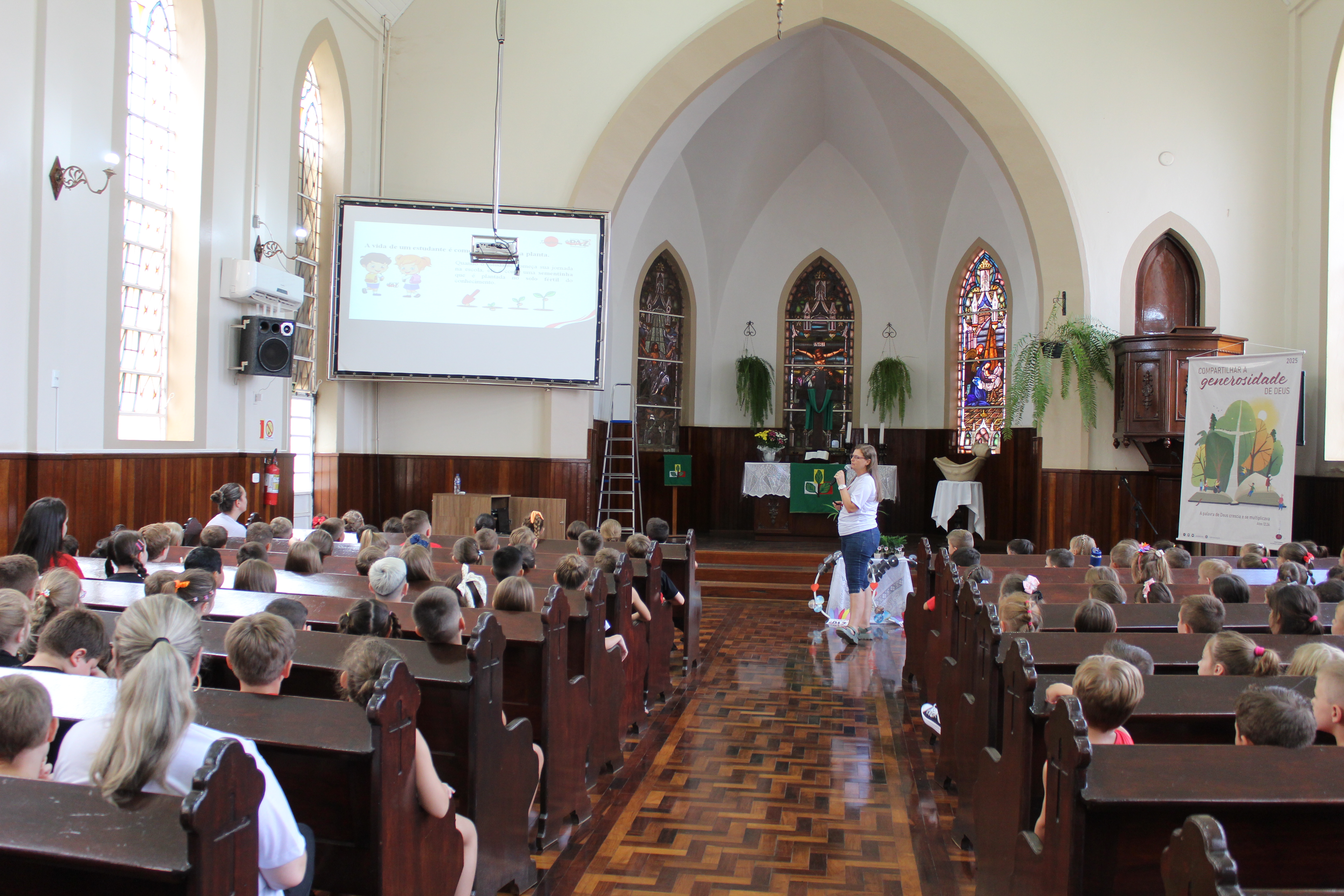 O 1º Boa tarde na Igreja de 2025 foi realizado na quarta-feira pela Orientadora Educacional Marilise. Nesse momento de reflexão a vida de um estudante foi comparada a vida de uma plantinha. Assim como uma planta precisa de cuidados contínuos e paciência para crescer e florescer, o estudante também precisa de tempo, esforço e dedicação para desenvolver todo o seu potencial. Cada etapa do seu aprendizado – desde a semente até a flor – é fundamental para o seu crescimento pessoal e acadêmico. E, assim como uma planta, o estudante não está sozinho nesse processo: ele conta com os professores, amigos e familiares, que são como o sol, a água e o solo, ajudando a nutrir seu caminho. As turminhas receberam uma plantinha para cuidar e sempre lembrar que cada um de nós, tanto as plantas quanto os estudantes, têm um ciclo único de crescimento e transformação, e o mais importante é aprender a valorizar cada etapa desse processo.