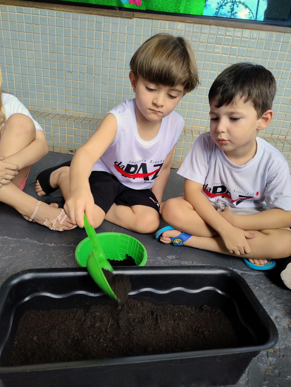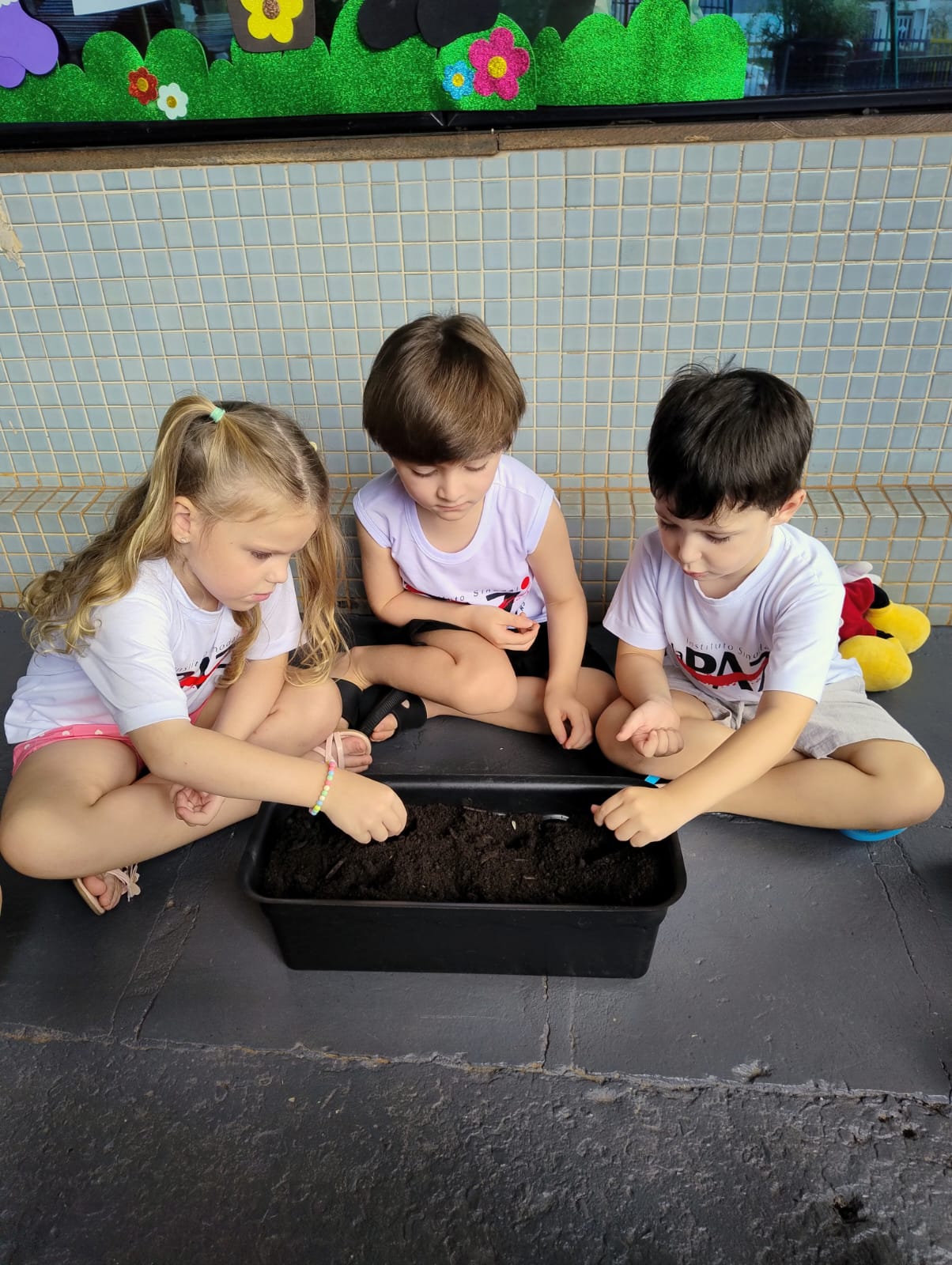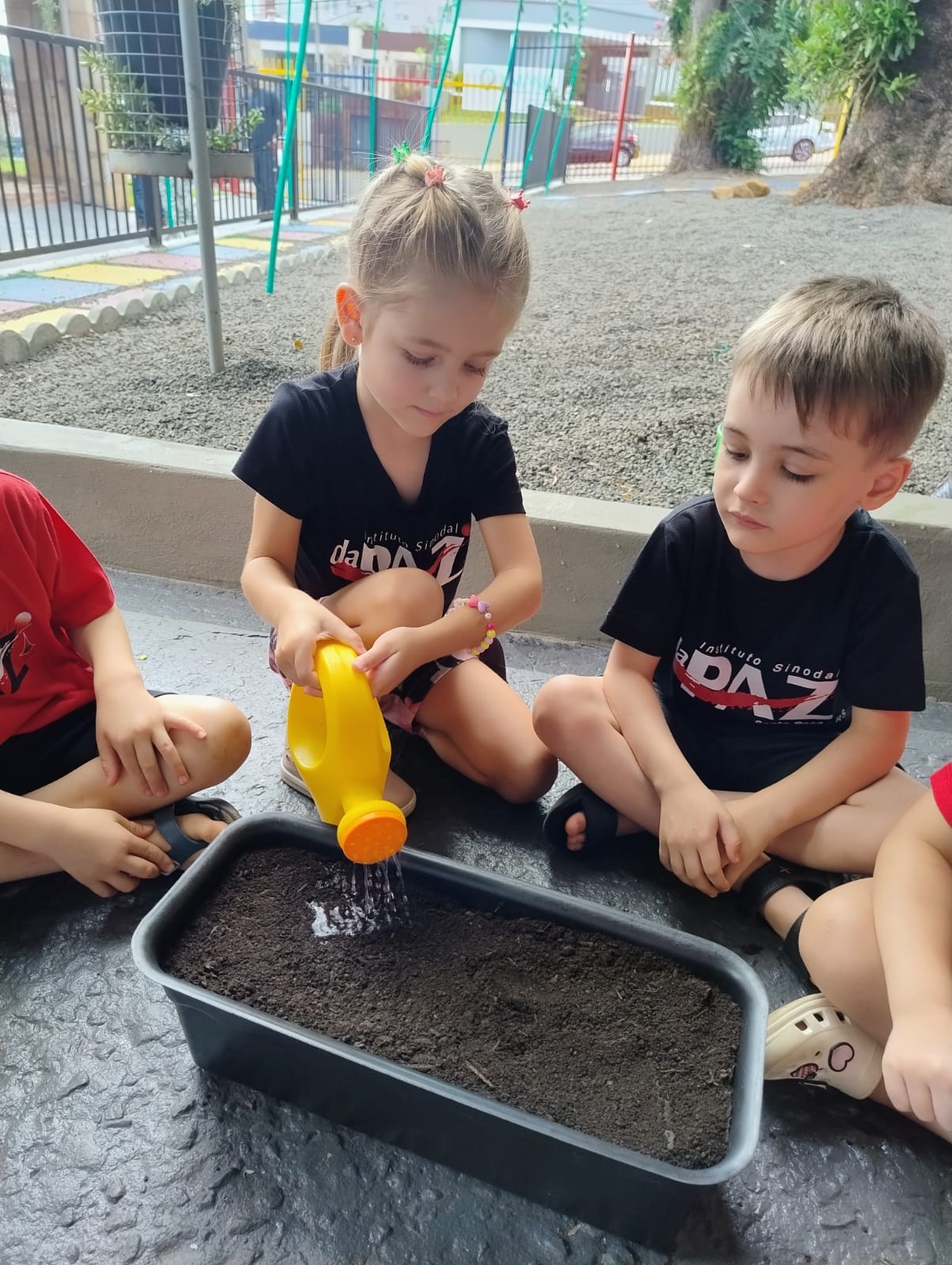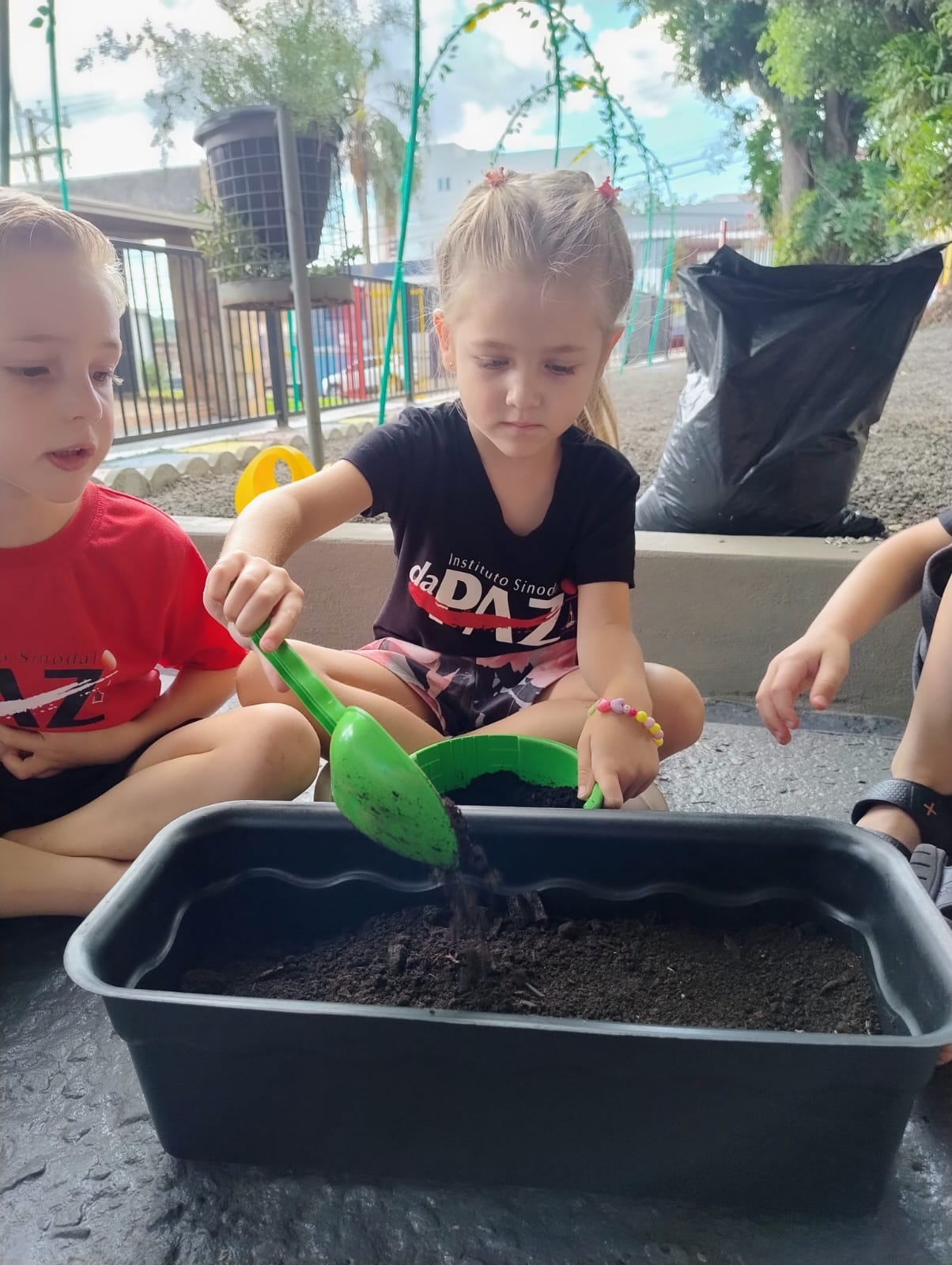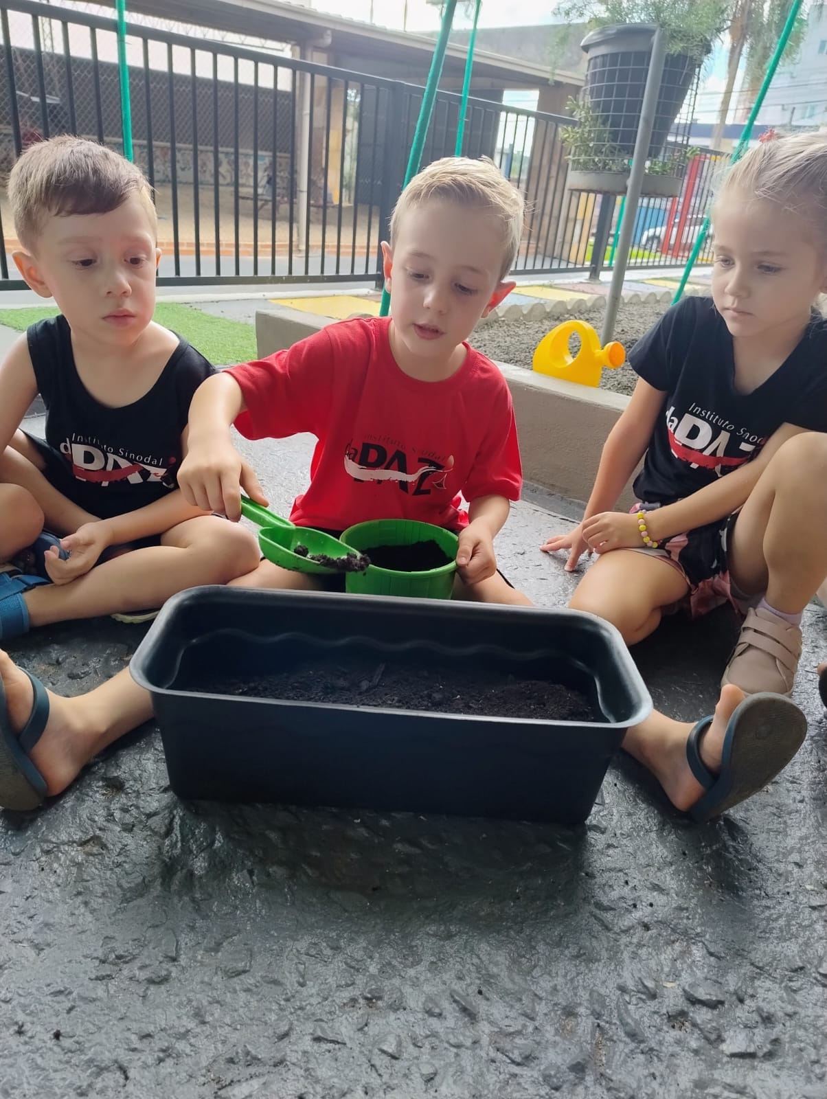 A turma da Pré-escola 04 anos T, junto com a Professora Tamara, viveu uma experiência incrível ao plantar sementes de girassol! Além de explorar a natureza, as crianças aprenderam sobre paciência, cuidado e o ciclo da vida. Agora é só esperar para ver essas sementinhas crescerem e florescerem!