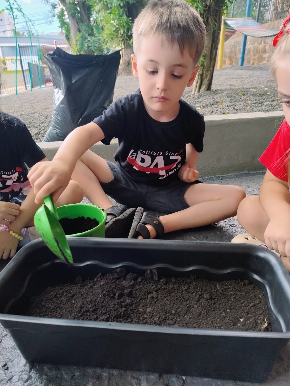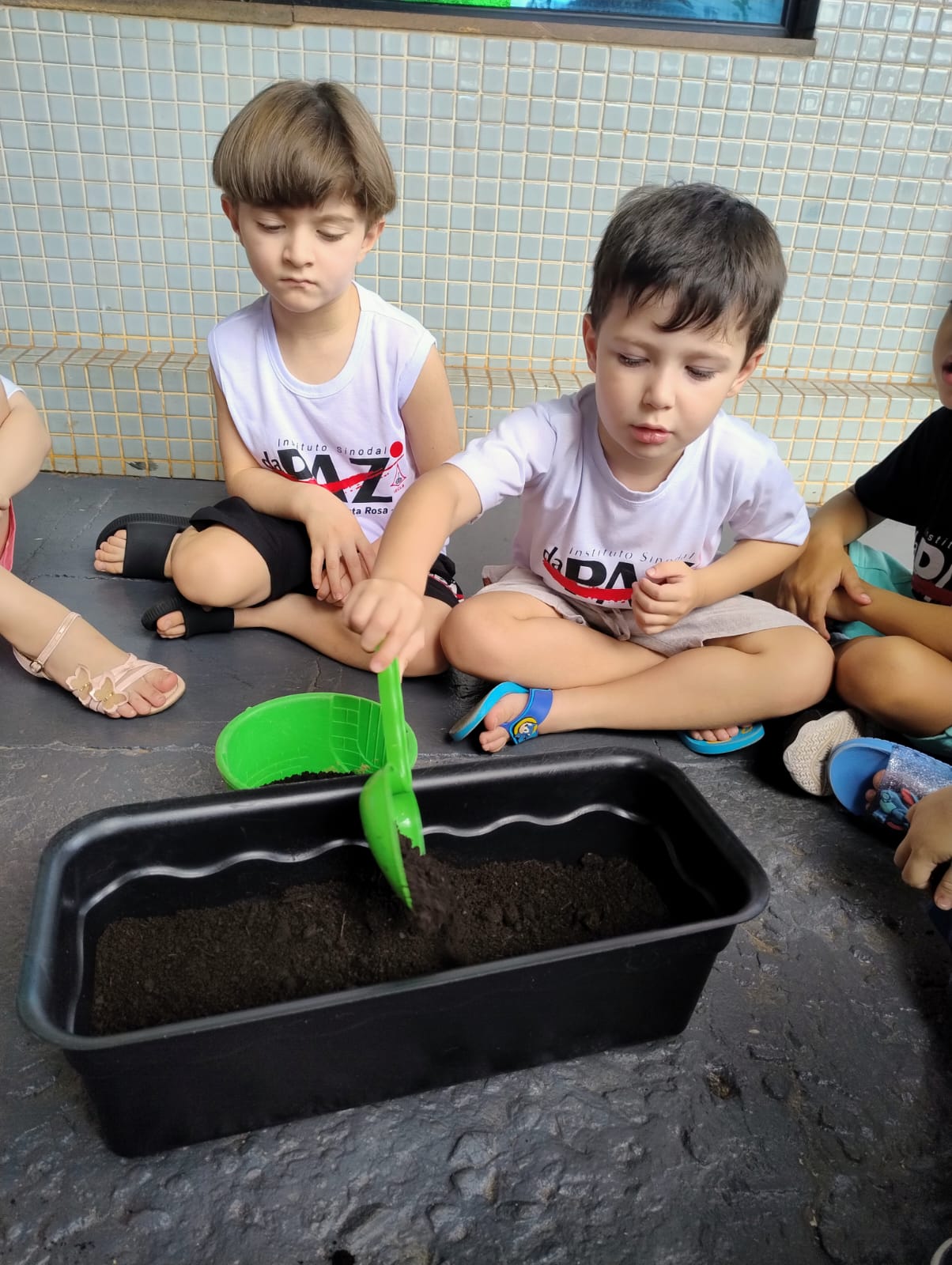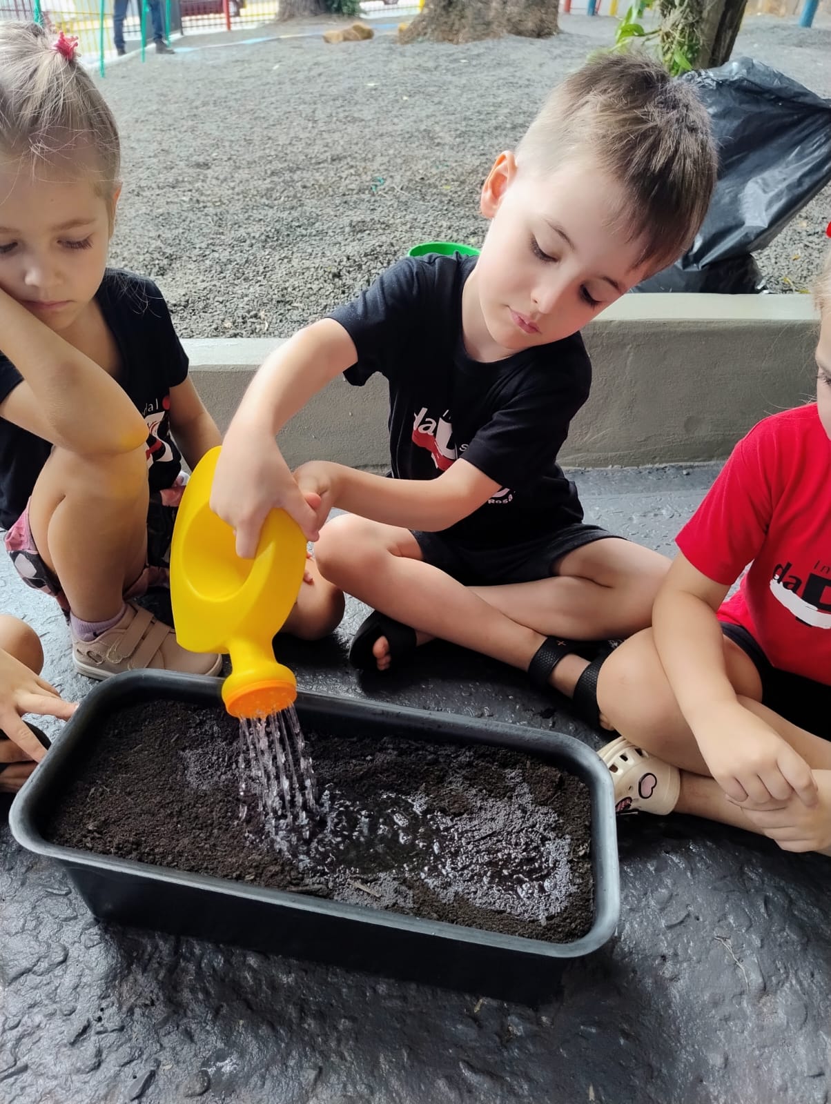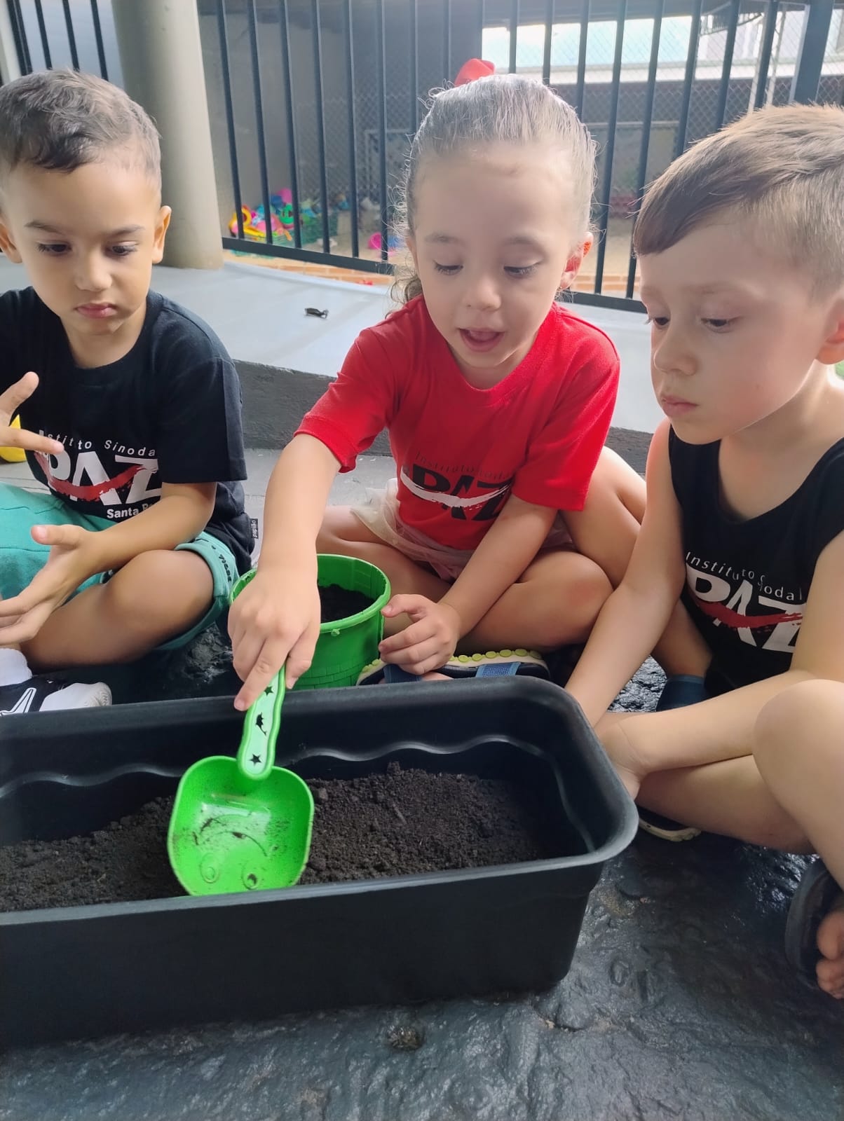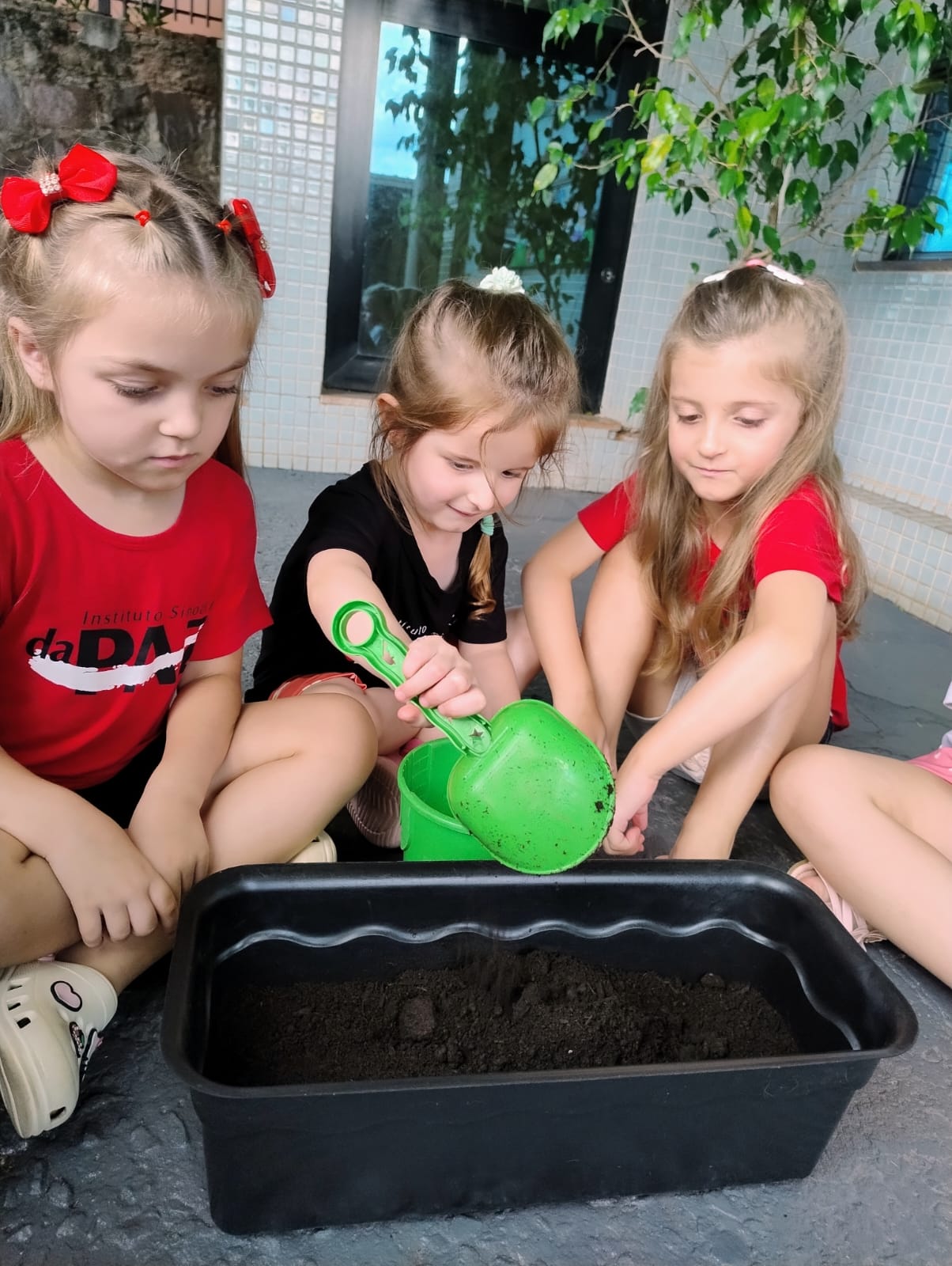 A turma da Pré-escola 04 anos T, junto com a Professora Tamara, viveu uma experiência incrível ao plantar sementes de girassol! Além de explorar a natureza, as crianças aprenderam sobre paciência, cuidado e o ciclo da vida. Agora é só esperar para ver essas sementinhas crescerem e florescerem!