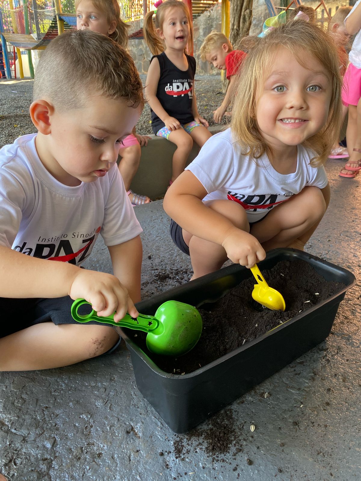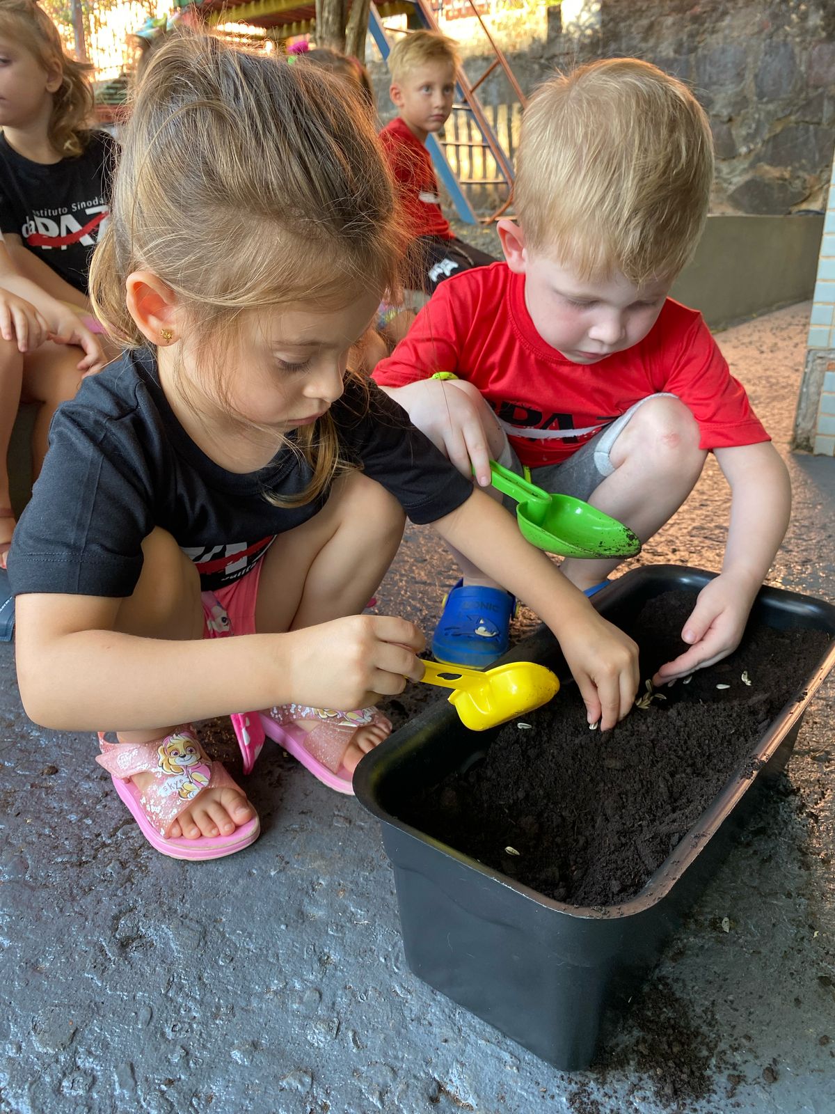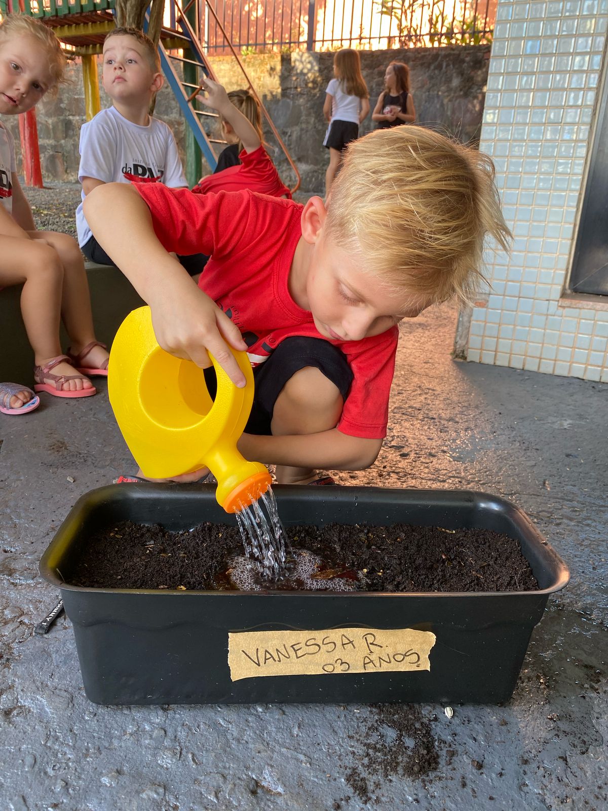 Os alunos da turma de 03 anos da Profe Vanessa Rigon viveram uma experiência especial: o plantio de girassóis! Com muita curiosidade e carinho, as crianças aprenderam sobre o cuidado com a natureza e a importância de cultivar a paciência e o amor pelo meio ambiente.