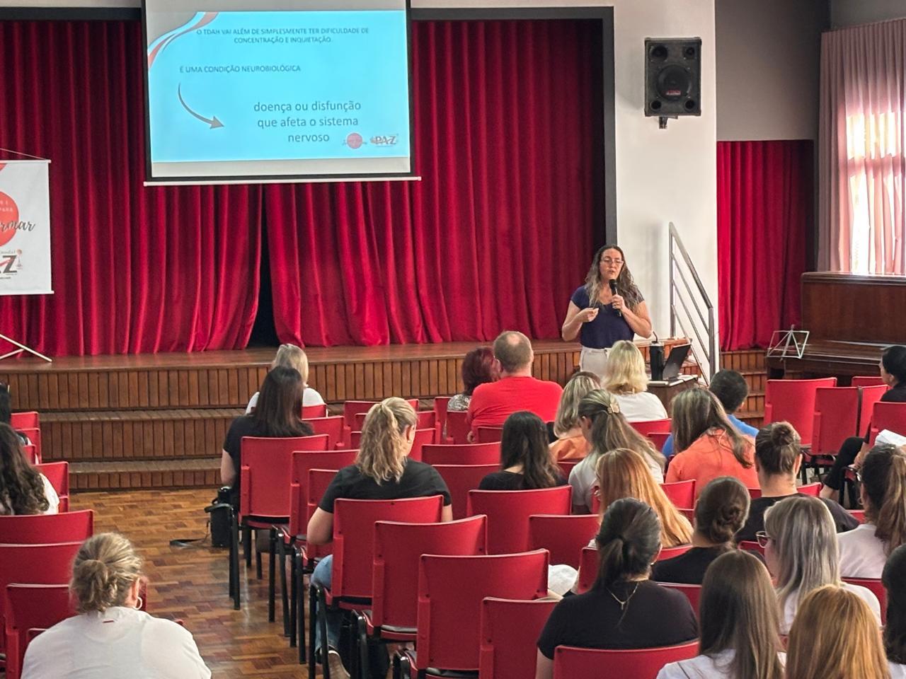 No sábado, dia 22/02, os professores do Instituto Sinodal da Paz participaram de uma manhã de formação com a temática: NEURODIVERSIDADE NA SALA DE AULA: O QUE TODO PROFESSOR PRECISA SABER SOBRE TDAH. Na oportunidade a Psicopedagoga Institucional Lidiane V. da Silva e a Psicóloga Clínica Bruna Altmann, abordaram importantes aspectos relacionados ao Transtorno do Déficit de Atenção e Hiperatividade bem como o papel fundamental da escola no processo de inclusão e acolhimento dos estudantes. A manhã foi marcada por reflexões, trocas de experiências e estratégias práticas para tornar a aprendizagem mais acessível a todos.