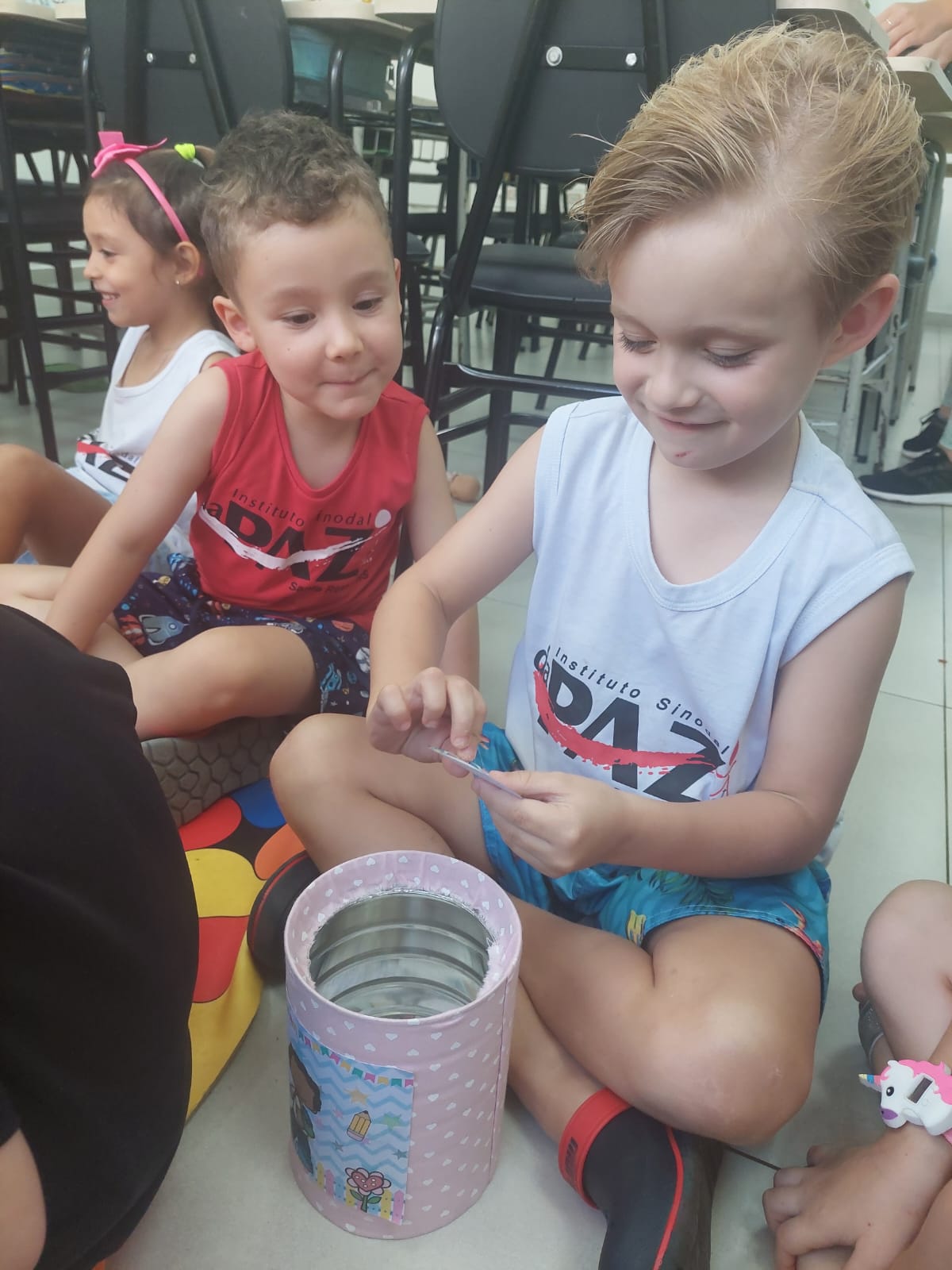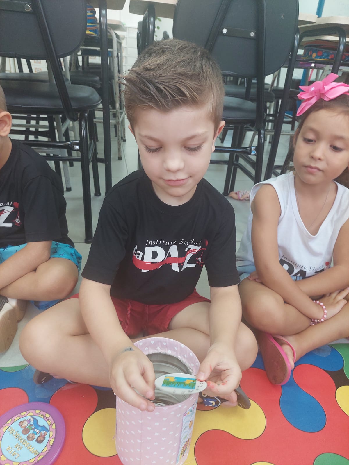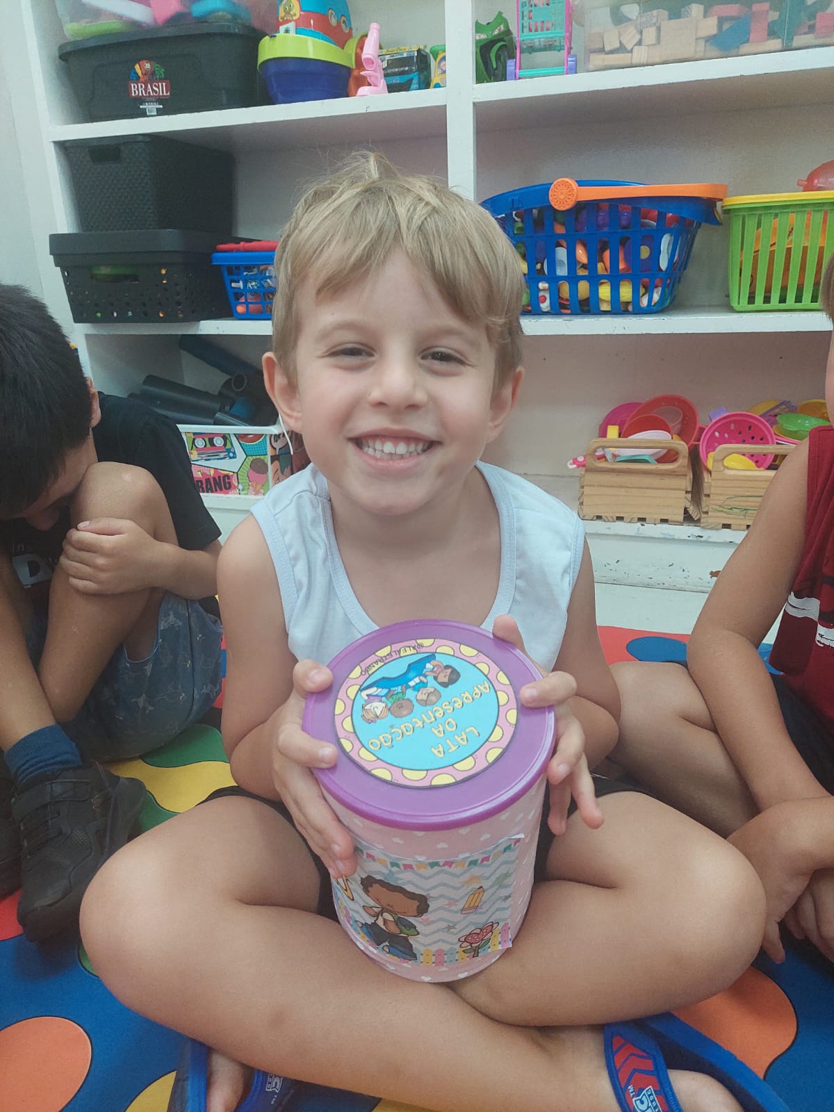 A turma da Pré-Escola 05 anos, da professora Janete, iniciou o ano com uma atividade super especial: a dinâmica da lata!