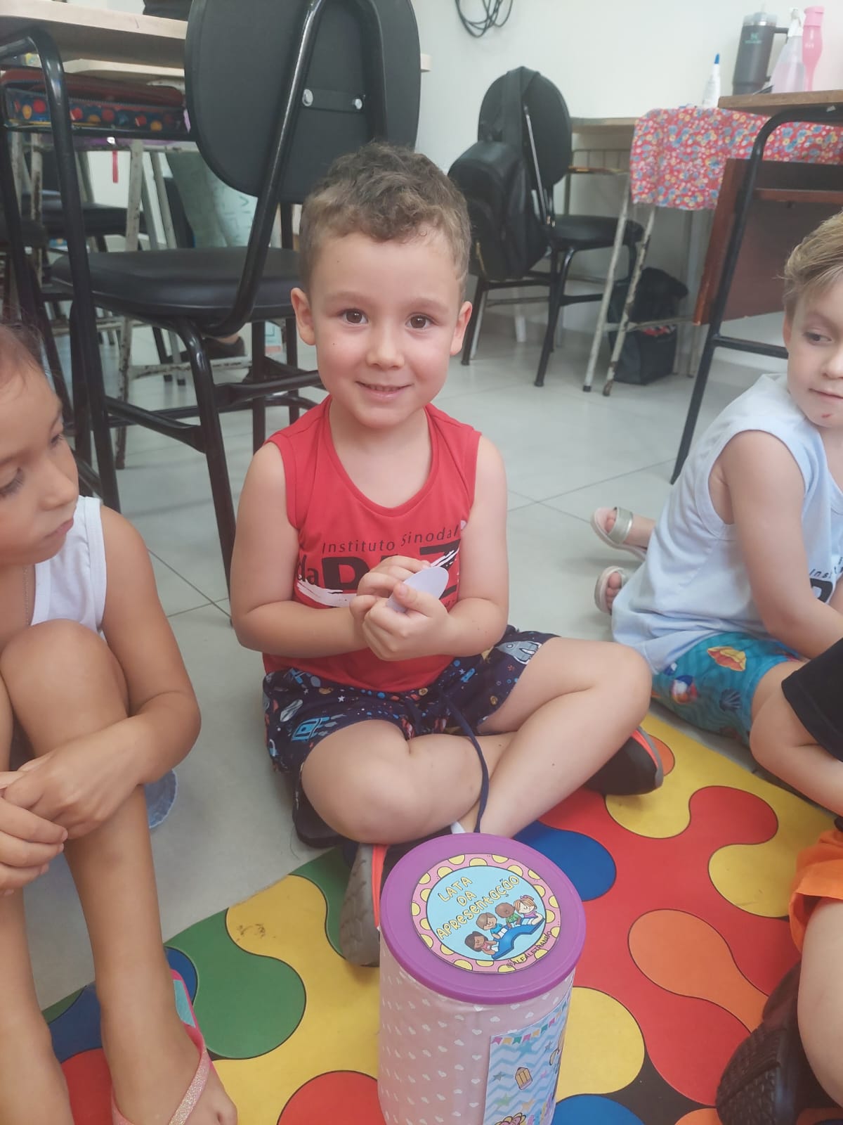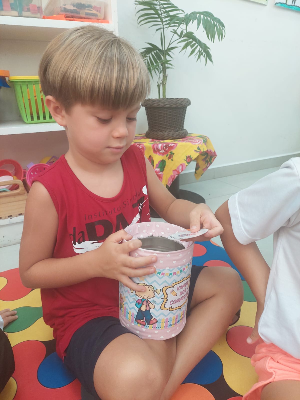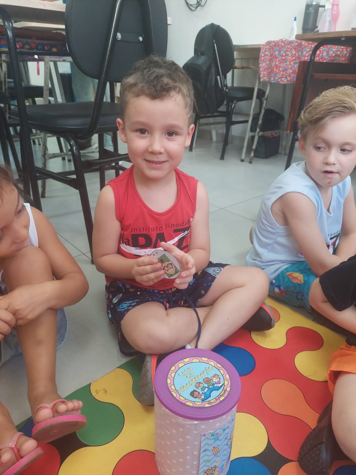 A turma da Pré-Escola 05 anos, da professora Janete, iniciou o ano com uma atividade super especial: a dinâmica da lata!