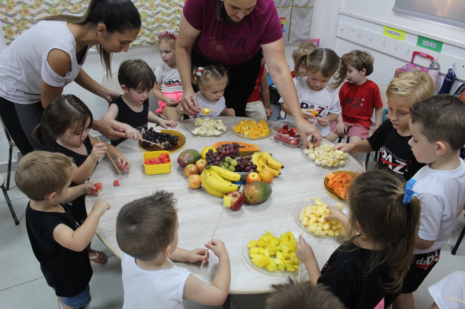 A turma do 03 anos C, da professora Camila, participou de uma atividade especial sobre alimentação saudável! Com muita curiosidade e diversão, nossos pequenos exploraram cores, sabores e texturas dos alimentos, aprendendo a importância de fazer escolhas nutritivas para crescerem fortes e saudáveis!