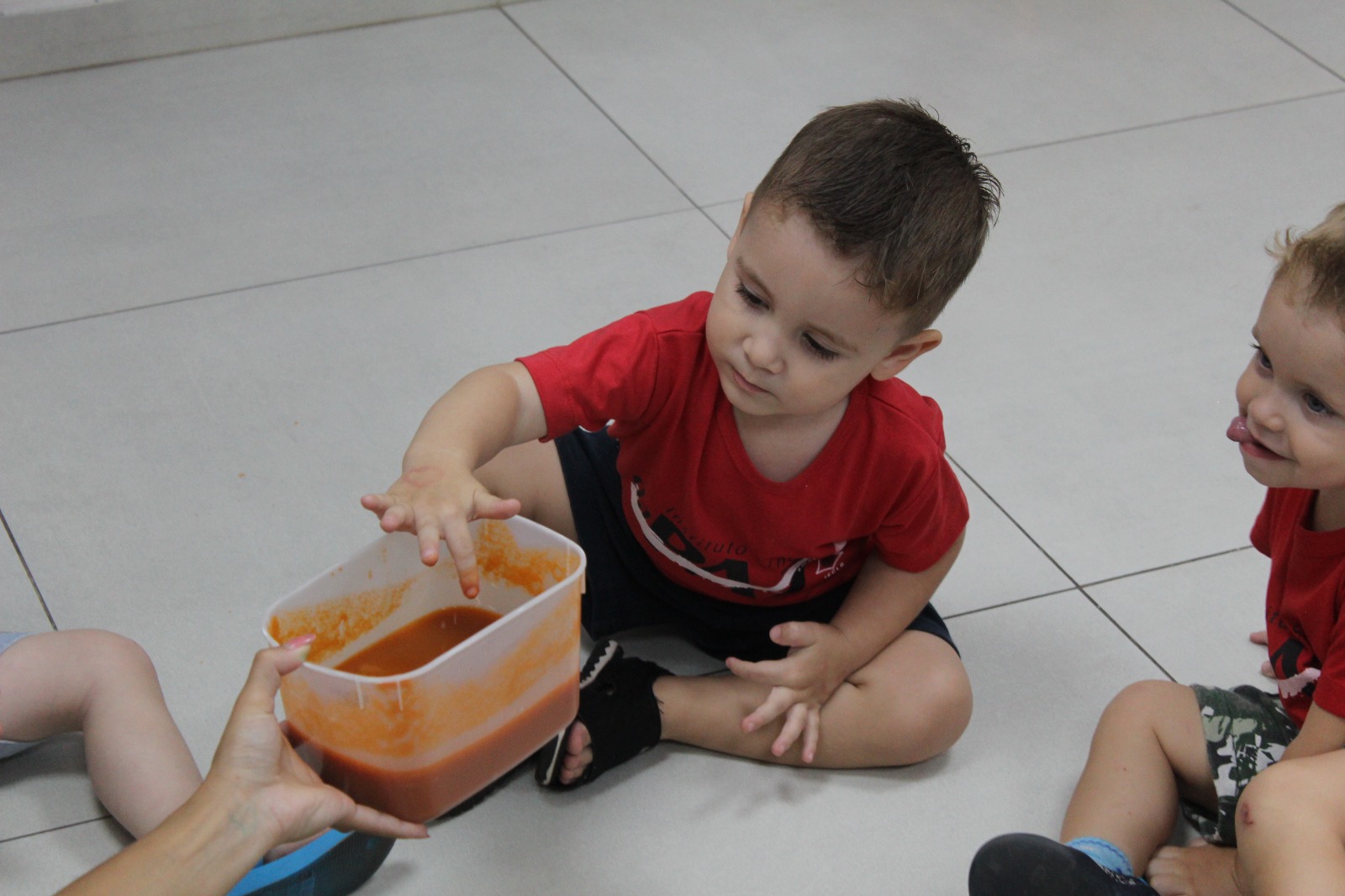 A Turma 03 anos C, junto com a Professora Camila, viveu uma experiência incrível com tinta comestível!