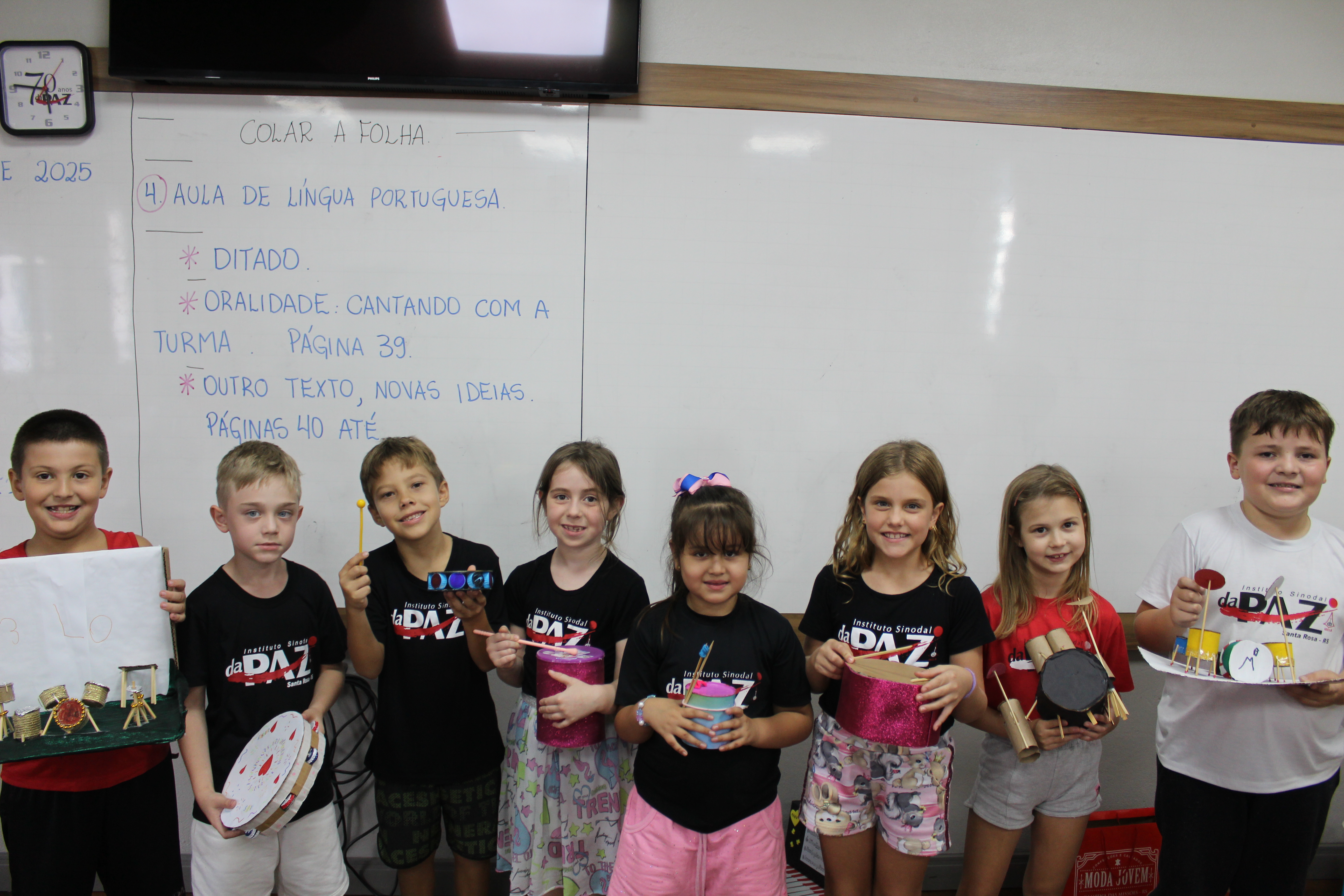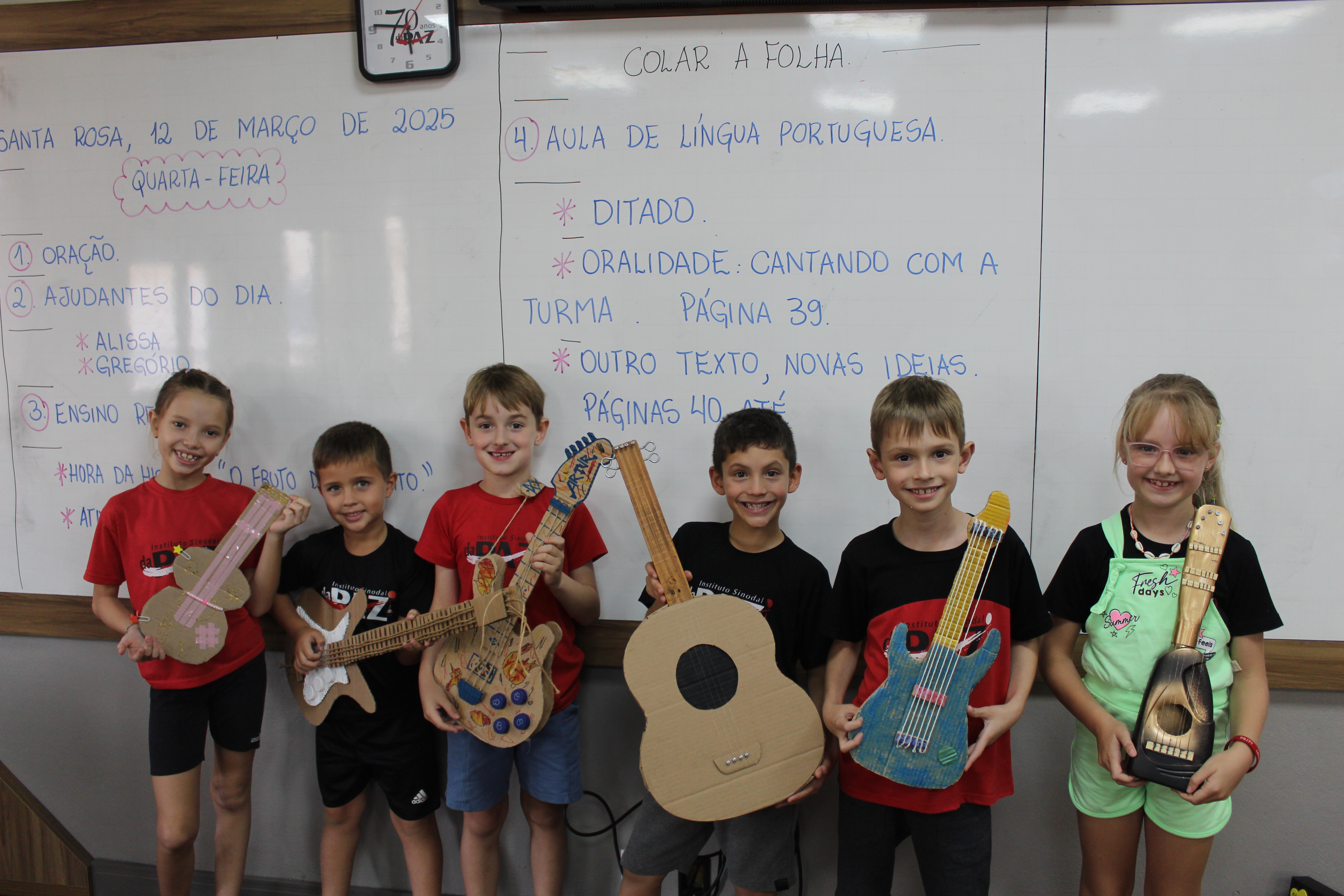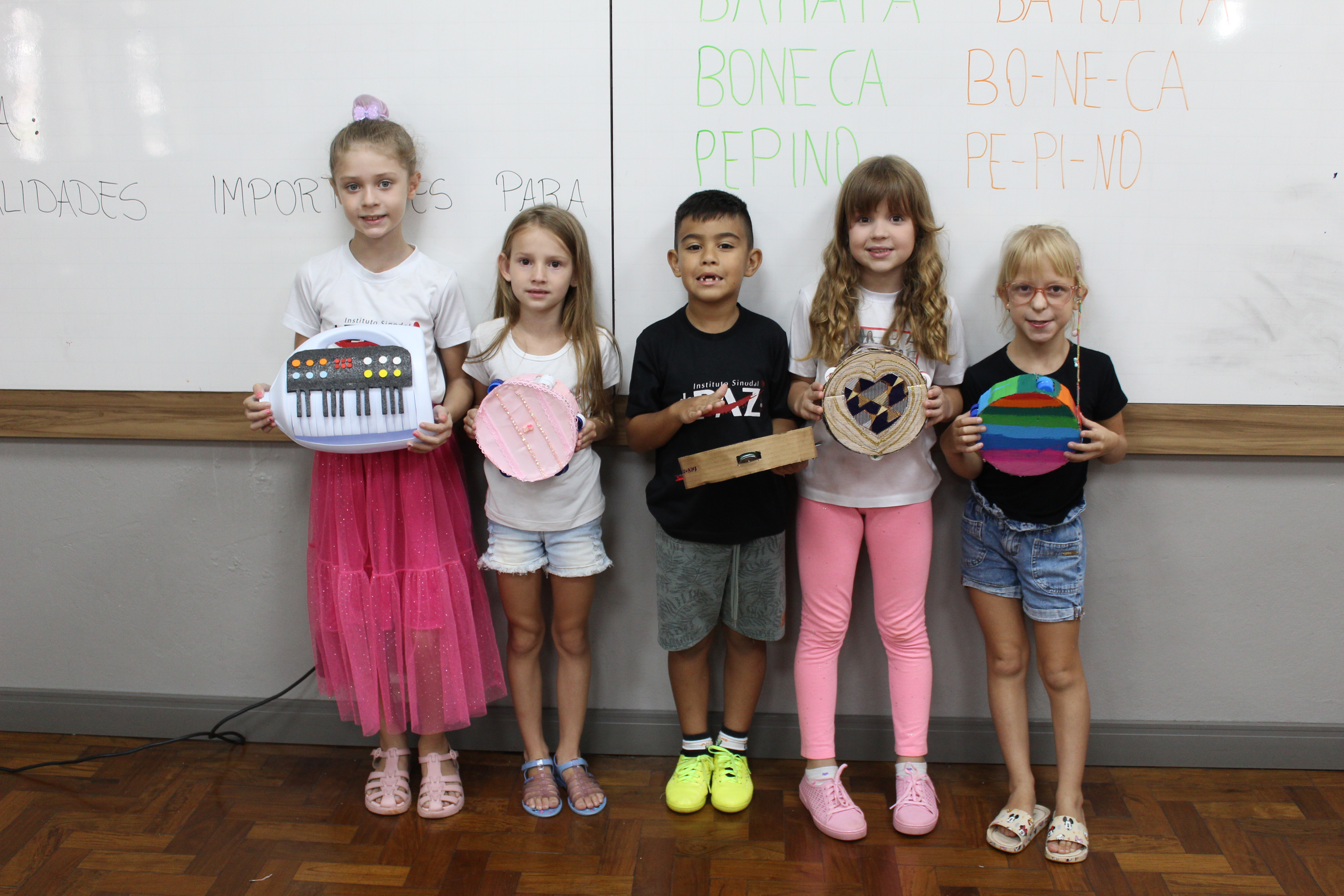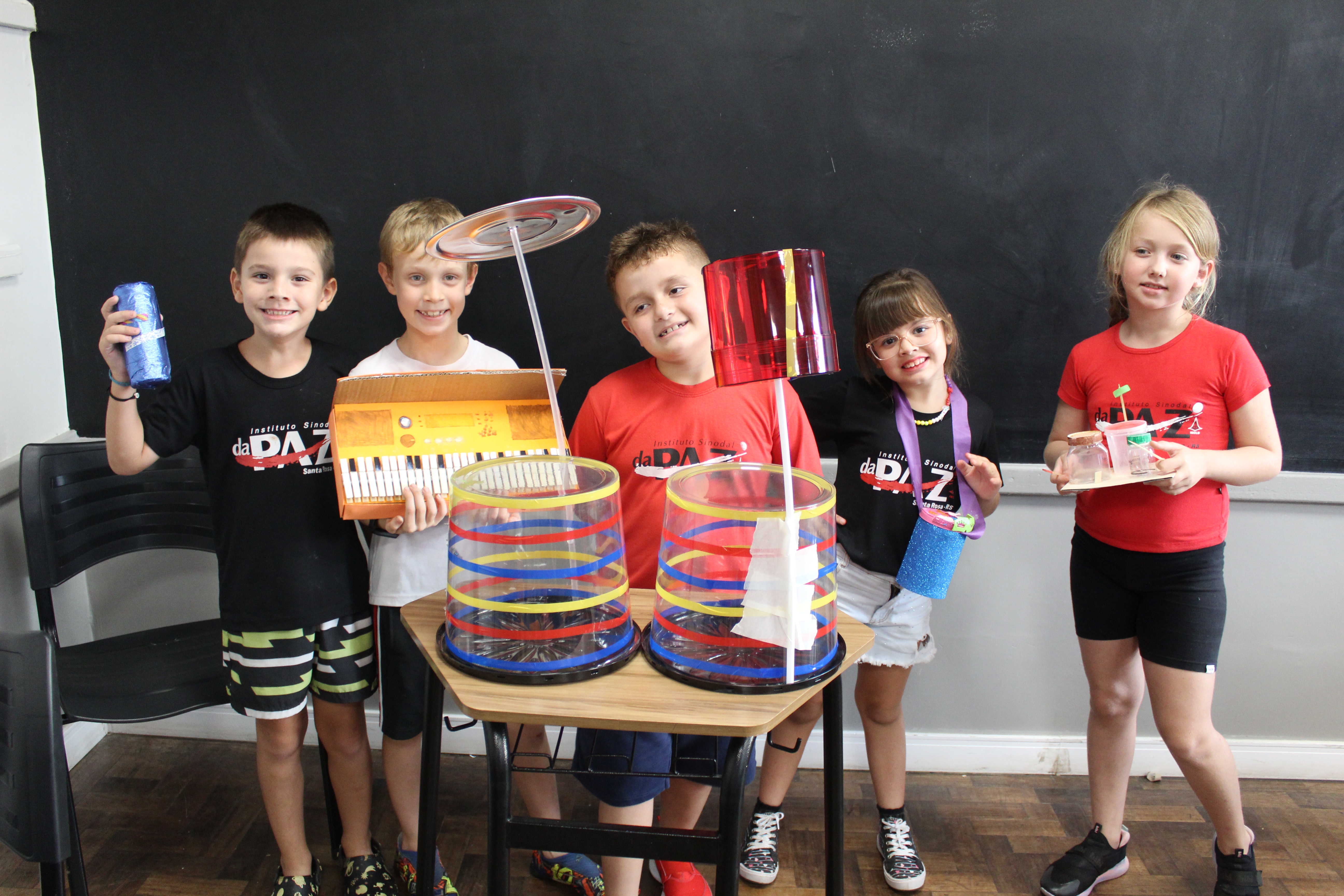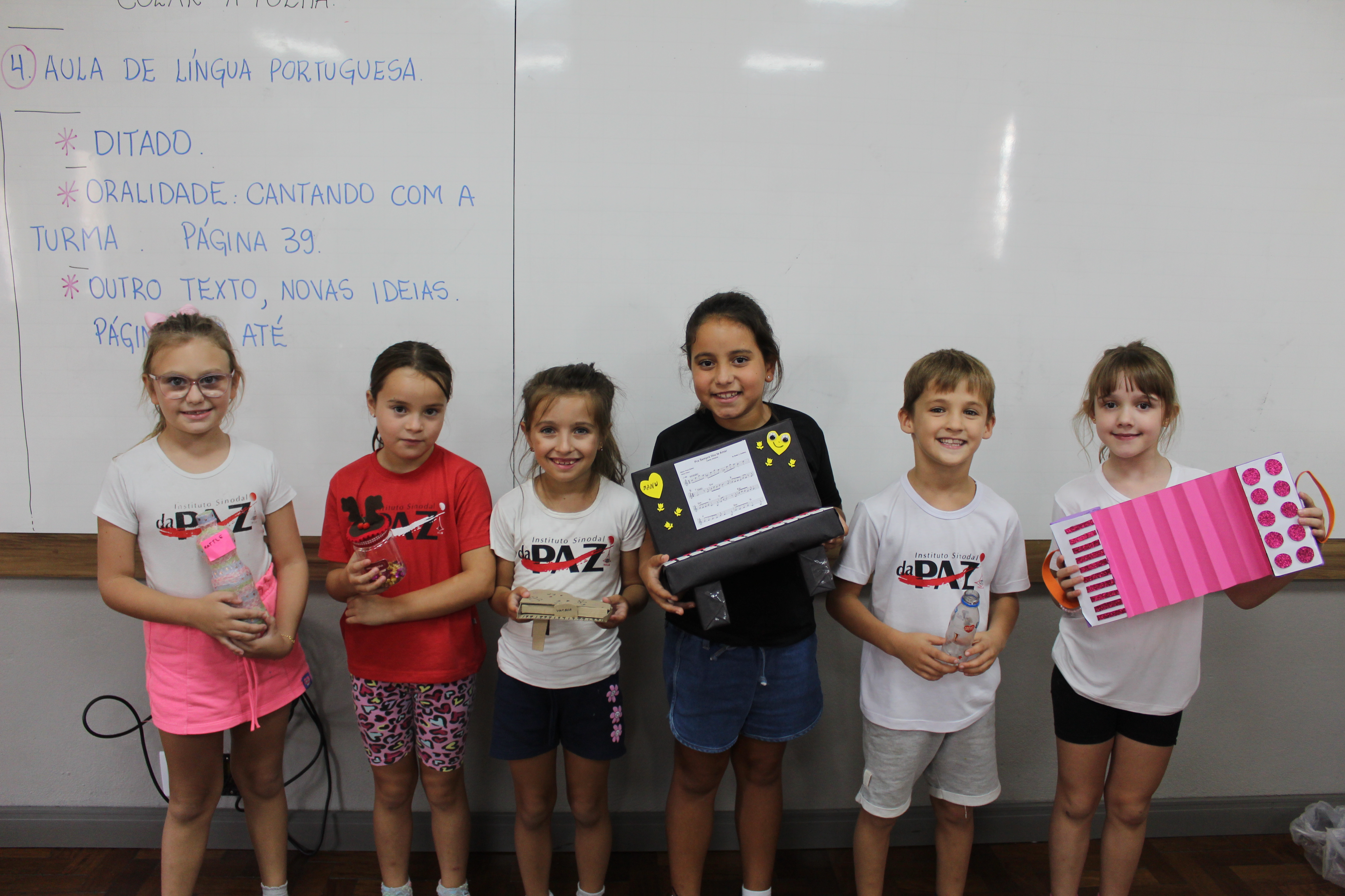 Os alunos do 2º ano de Inglês da professora Priscila Kandler deram um show de criatividade! Para aprender sobre “musical instruments”, eles confeccionaram seus próprios instrumentos usando materiais recicláveis.