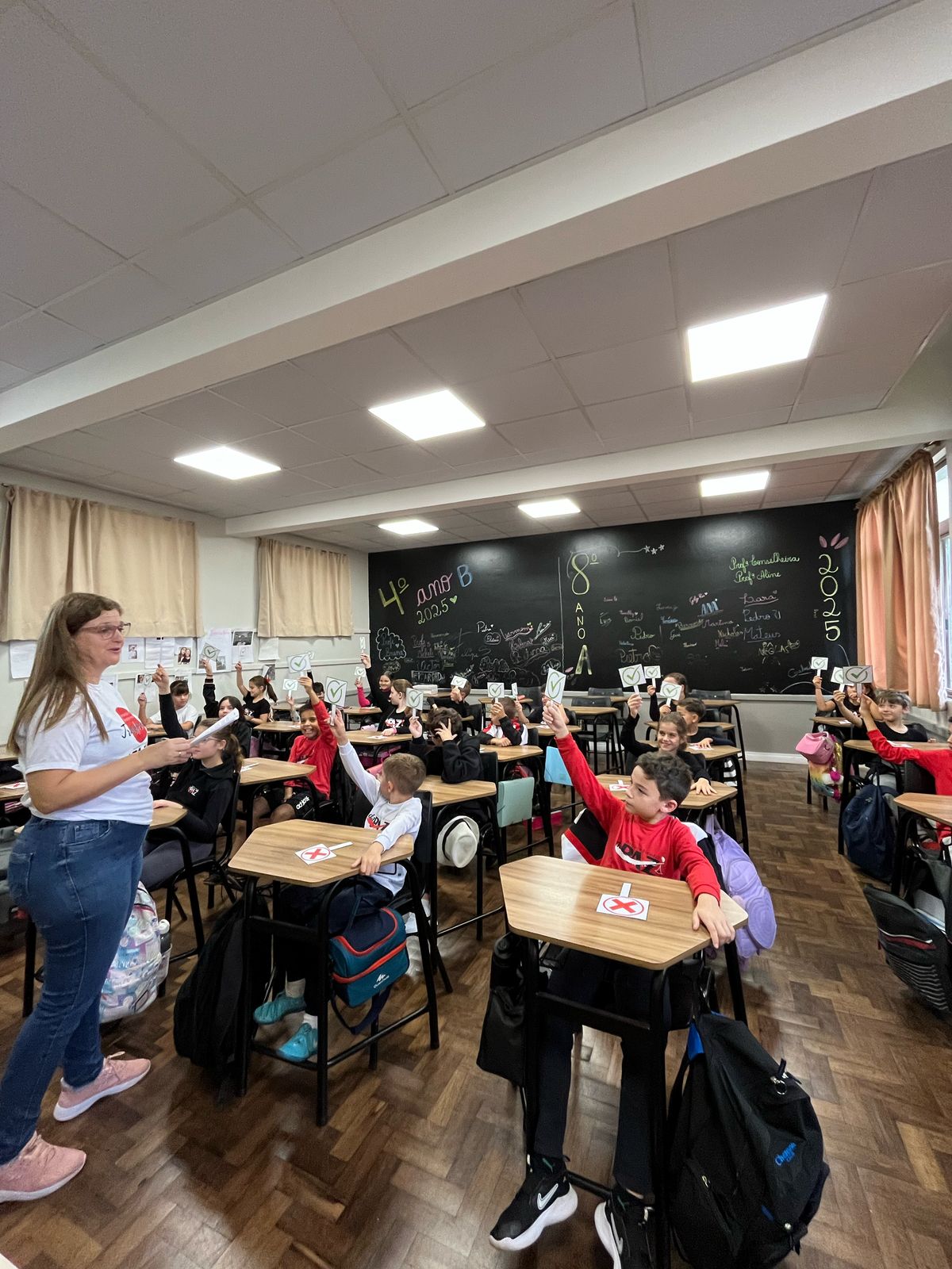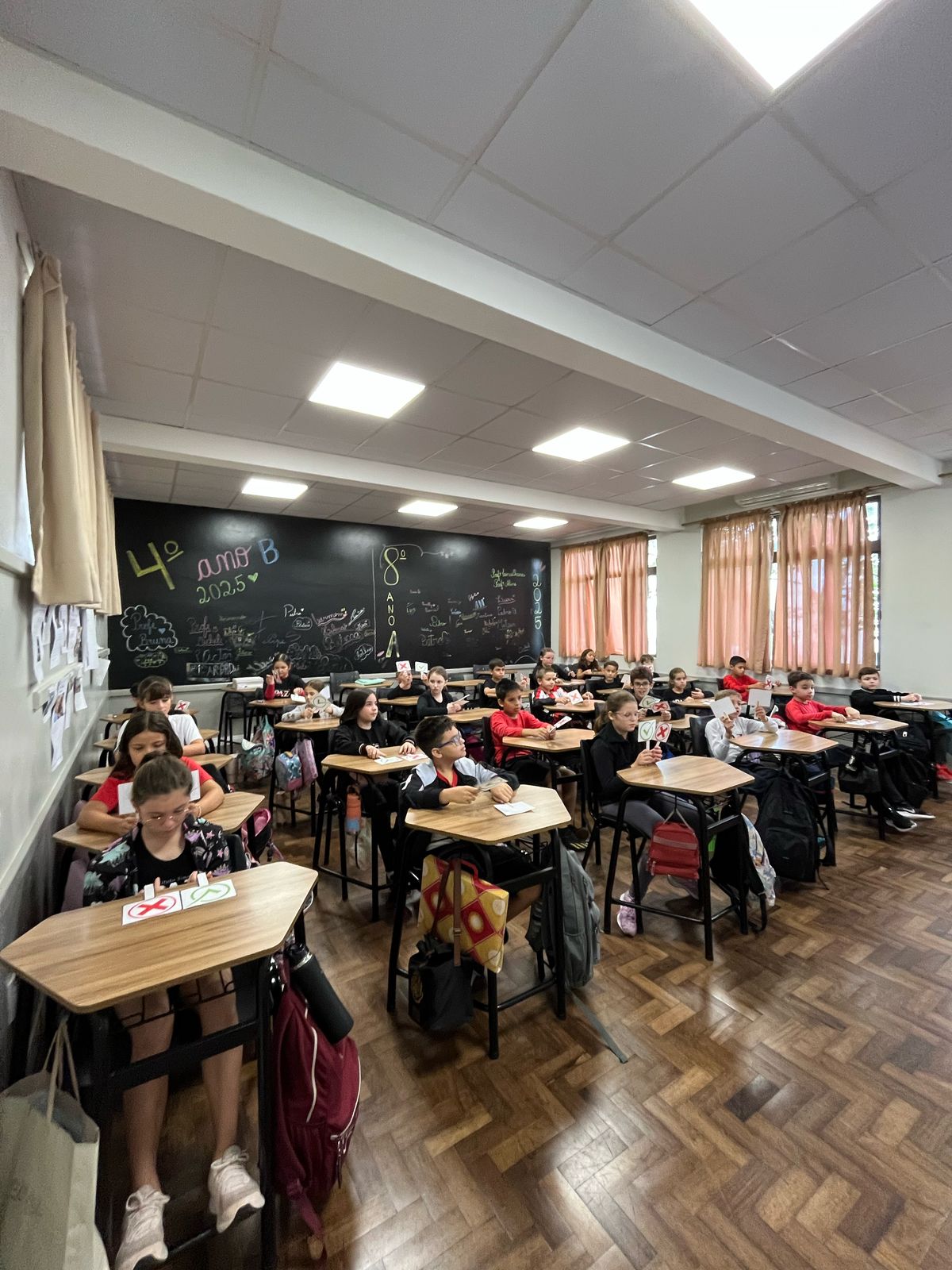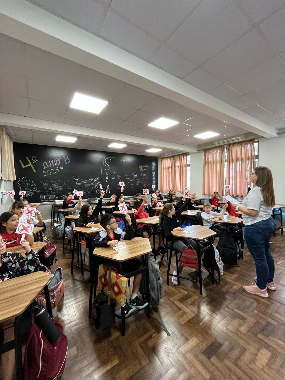 Os alunos dos 4ºs anos participaram de uma atividade especial conduzida pela Orientadora Educacional Marilise Ribeiro, com o objetivo de refletir sobre atitudes e comportamentos relacionados ao bullying no ambiente escolar.
