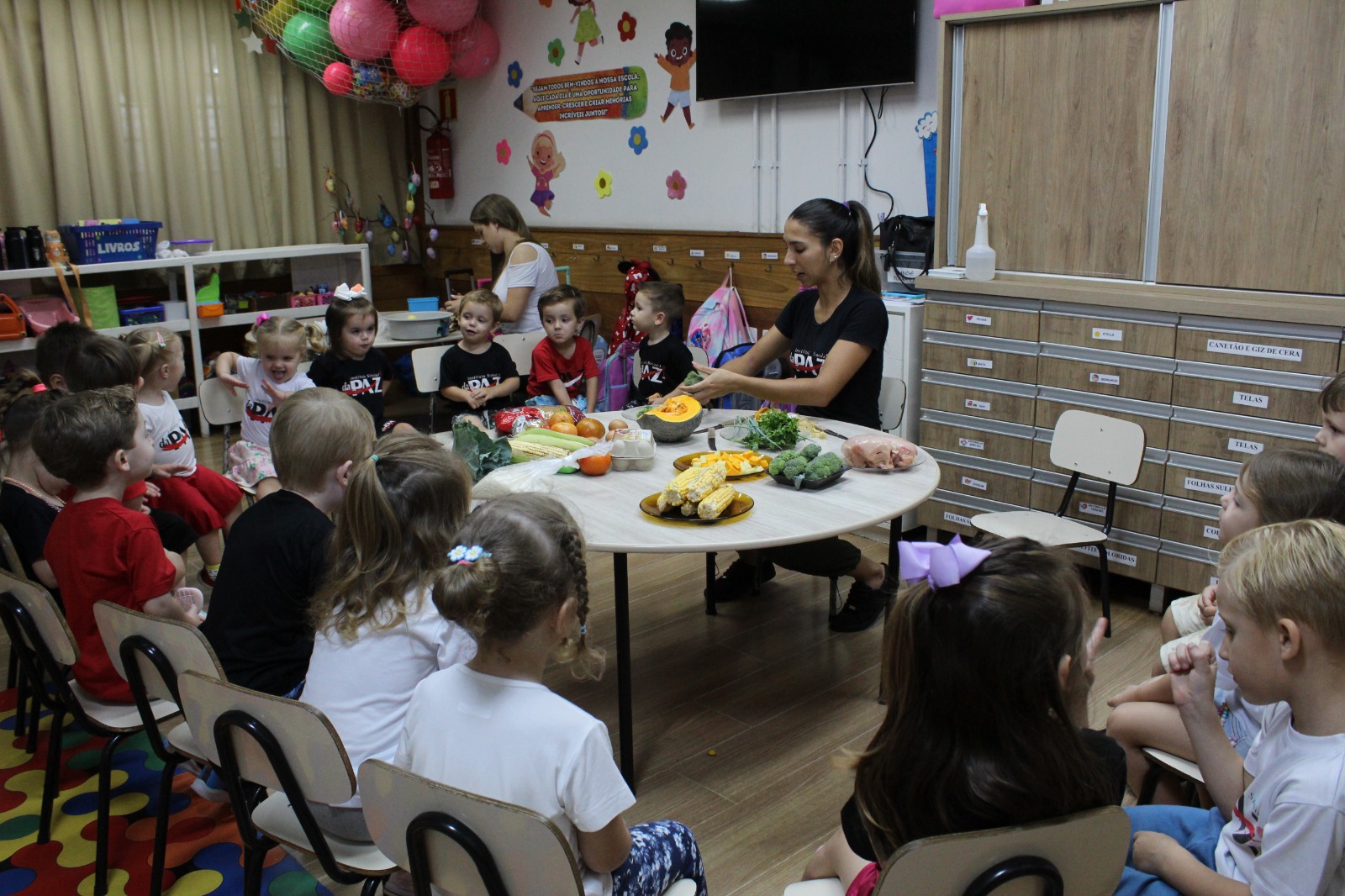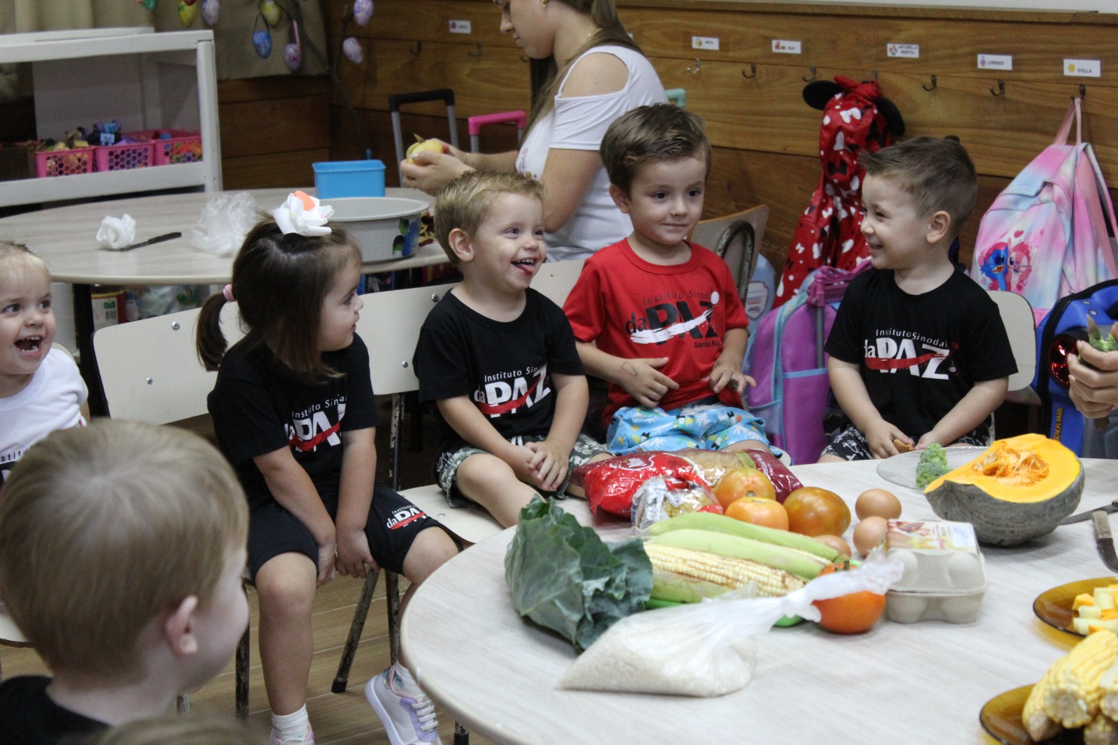 Como parte do projeto Alimentação Saudável, os pequenos colocaram a mão na massa — ou melhor, nos legumes!