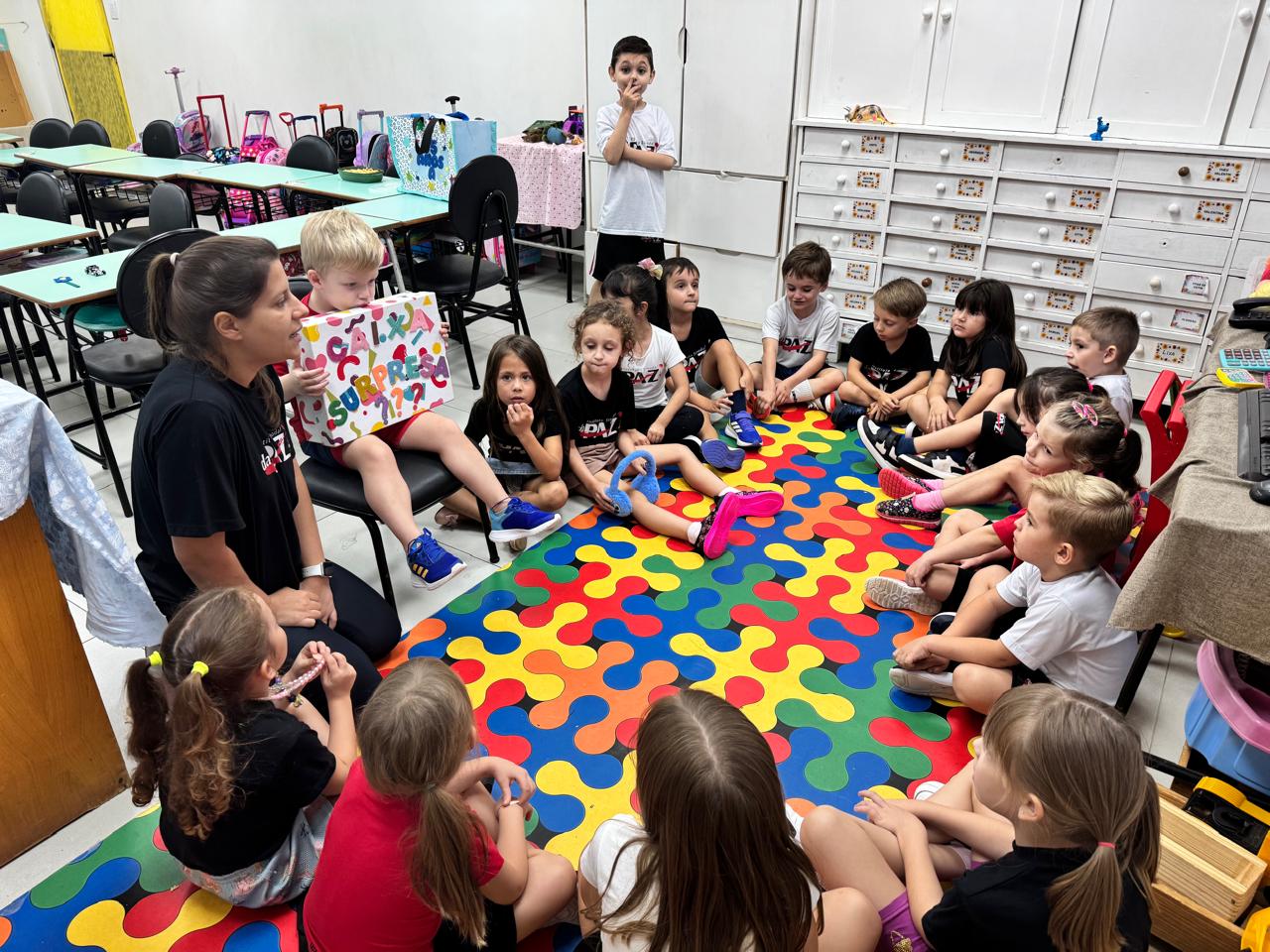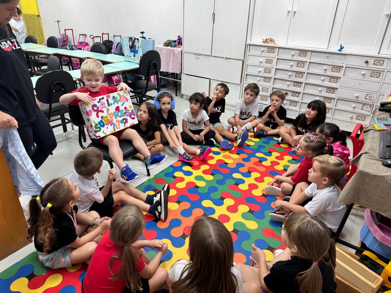 No clima de descoberta e encantamento, os alunos da Pré-escola 05 anos A, das professoras Ana Paula e Denise, exploraram mais duas letras no Projeto "Caixa Surpresa"!