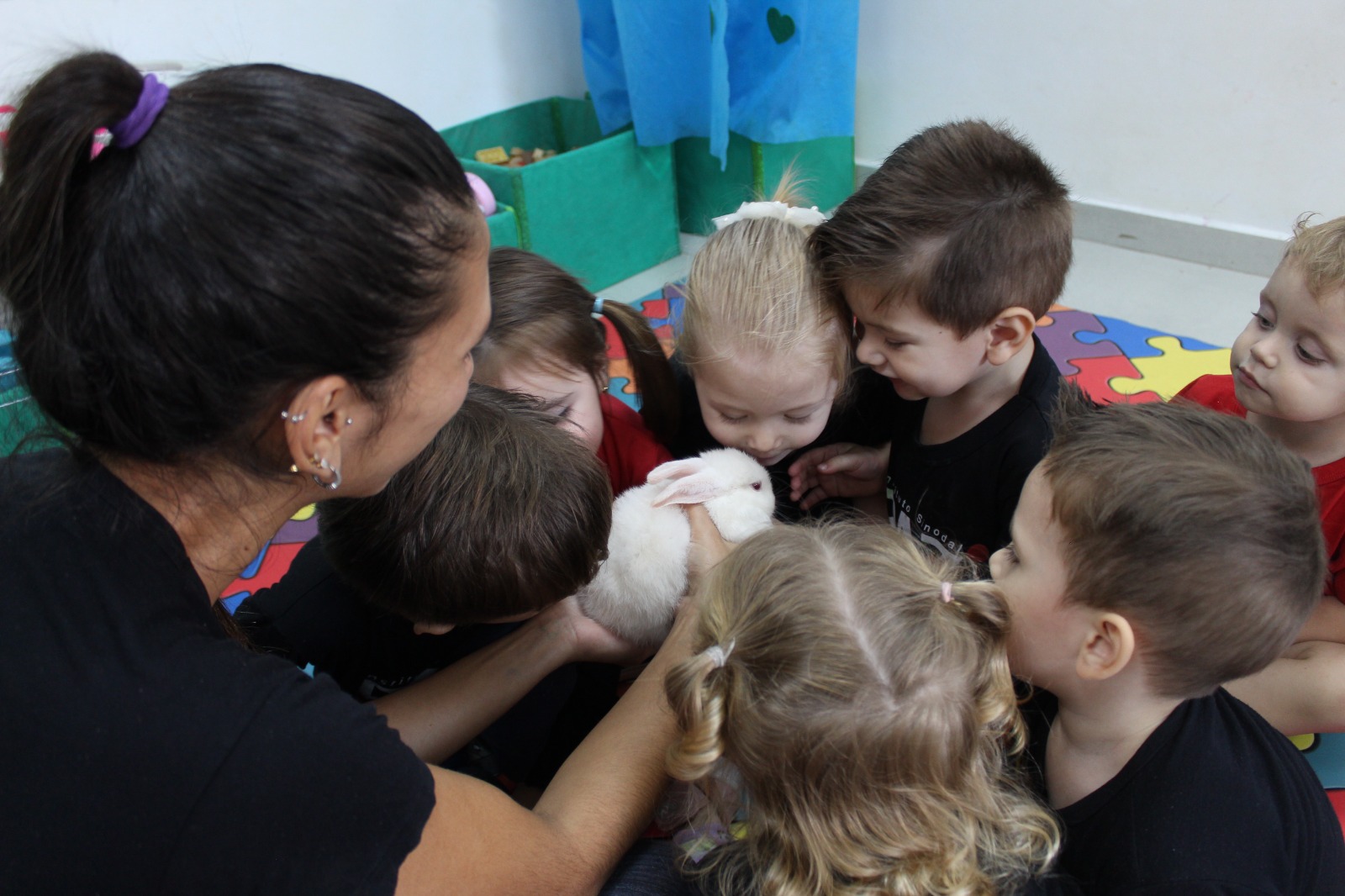 A Páscoa já passou, mas o carinho continua por aqui! A Turma 03 anos da Educação Infantil recebeu uma visita pra lá de especial: o Coelho da Páscoa!