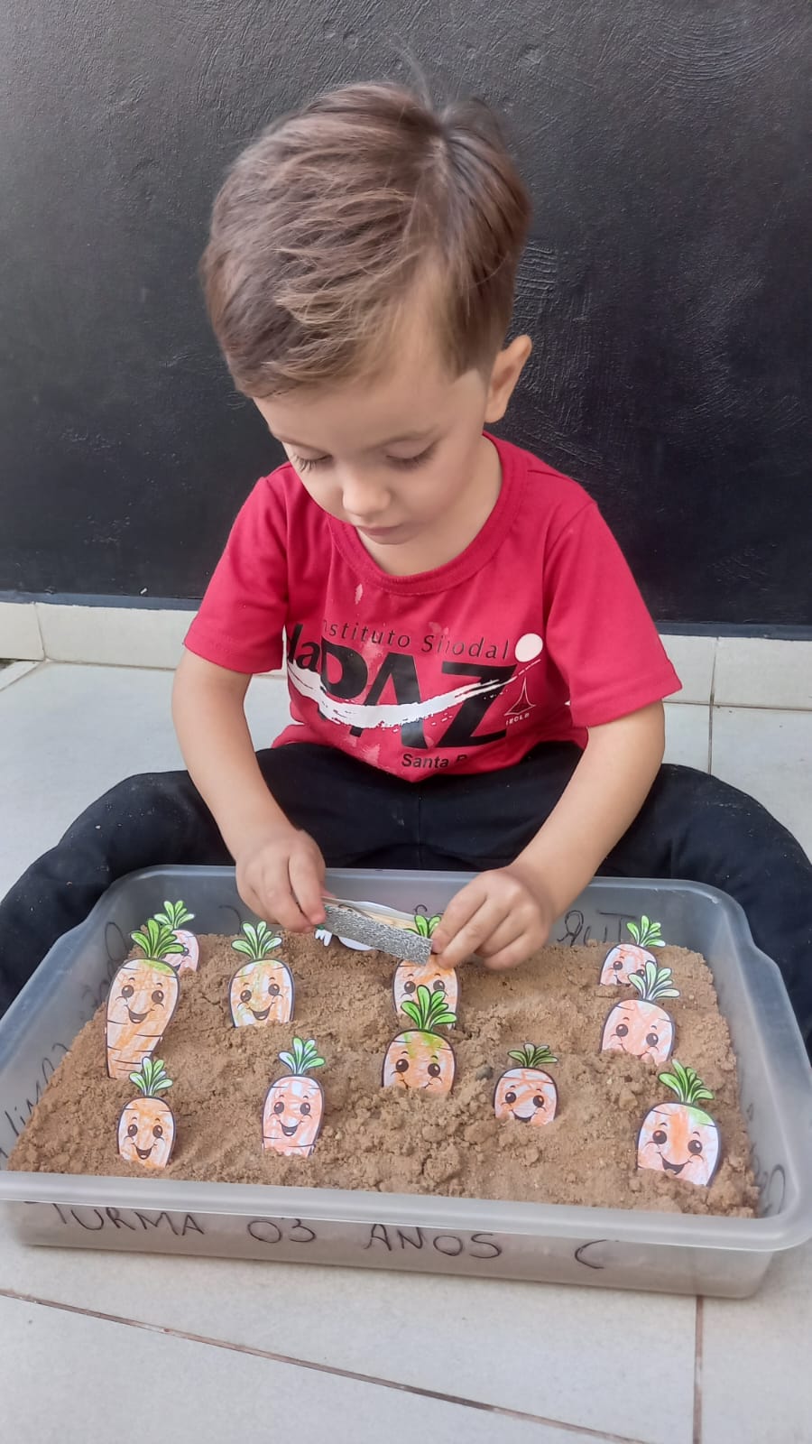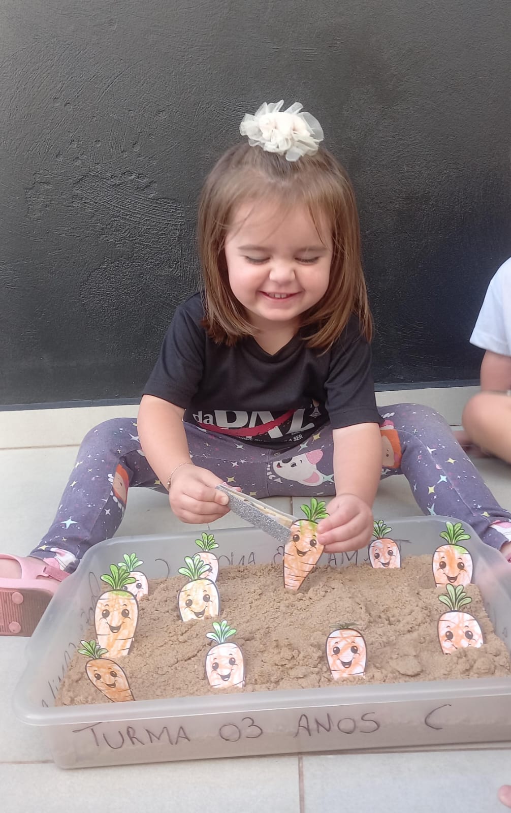 A Turma 03 anos, da Professora Camila, viveu uma experiência cheia de alegria, amor e aprendizado com a colheita das cenouras!