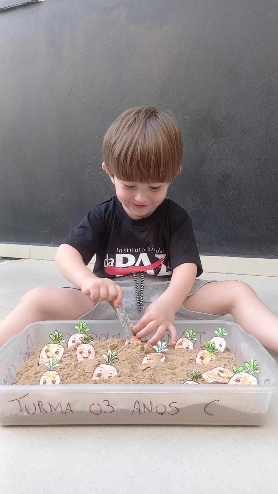 Com as mãozinhas na terra, estimulamos a coordenação motora fina e celebramos cada descoberta com sorrisos, diversão e muito desenvolvimento!
