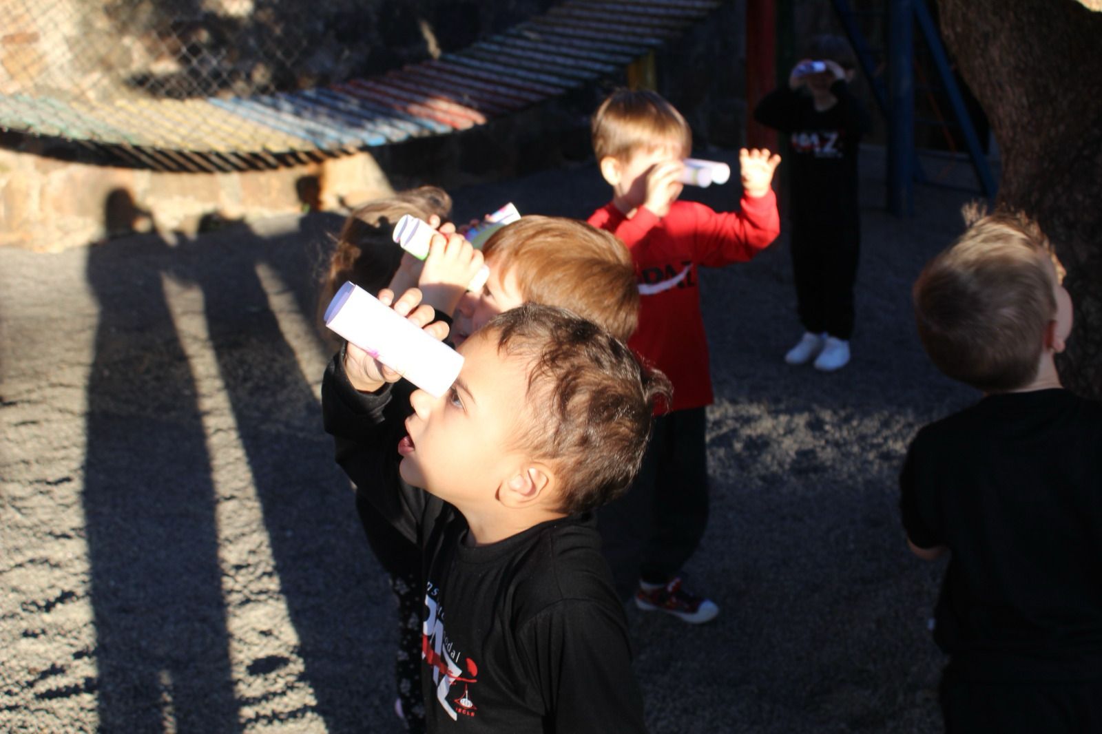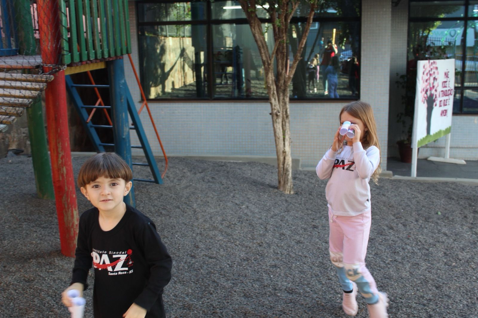 Com eles em mãos, saíram em uma aventura pela escola, observando e identificando tudo o que aprenderam.