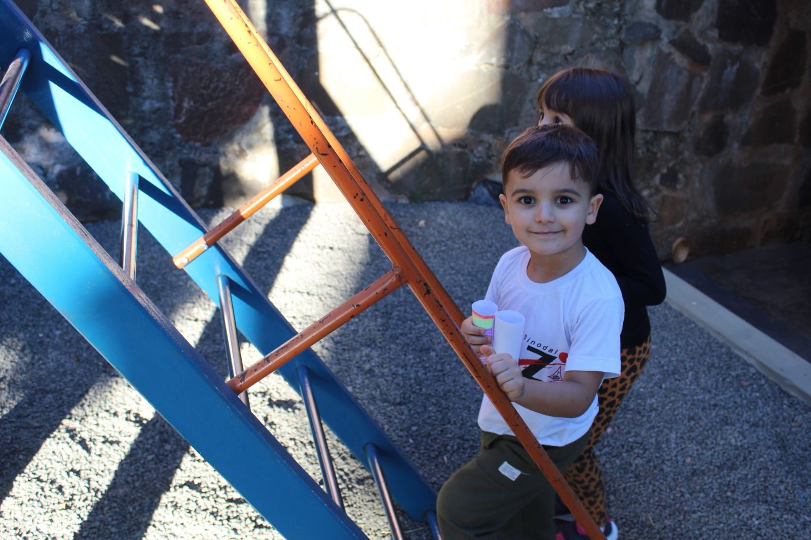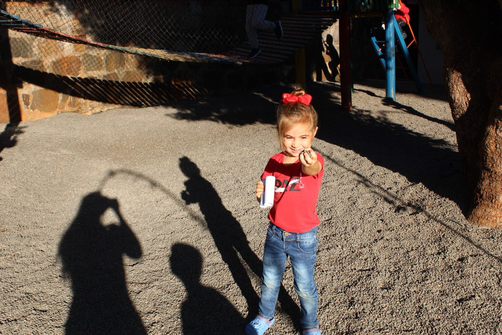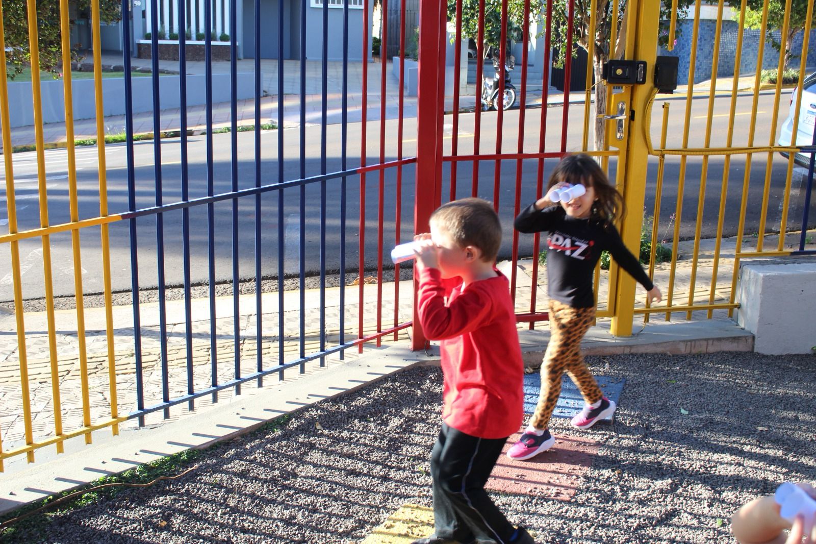 Com eles em mãos, saíram em uma aventura pela escola, observando e identificando tudo o que aprenderam.
