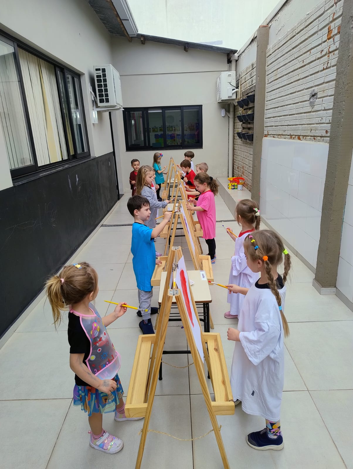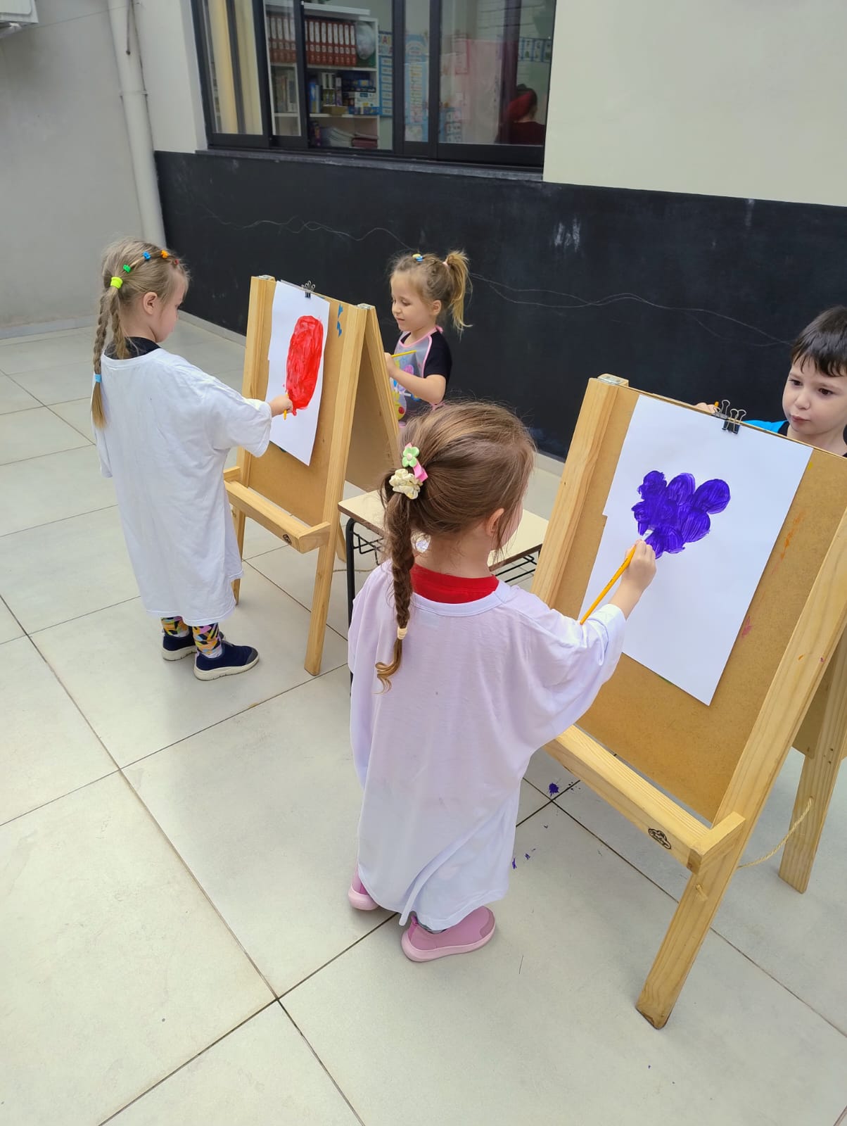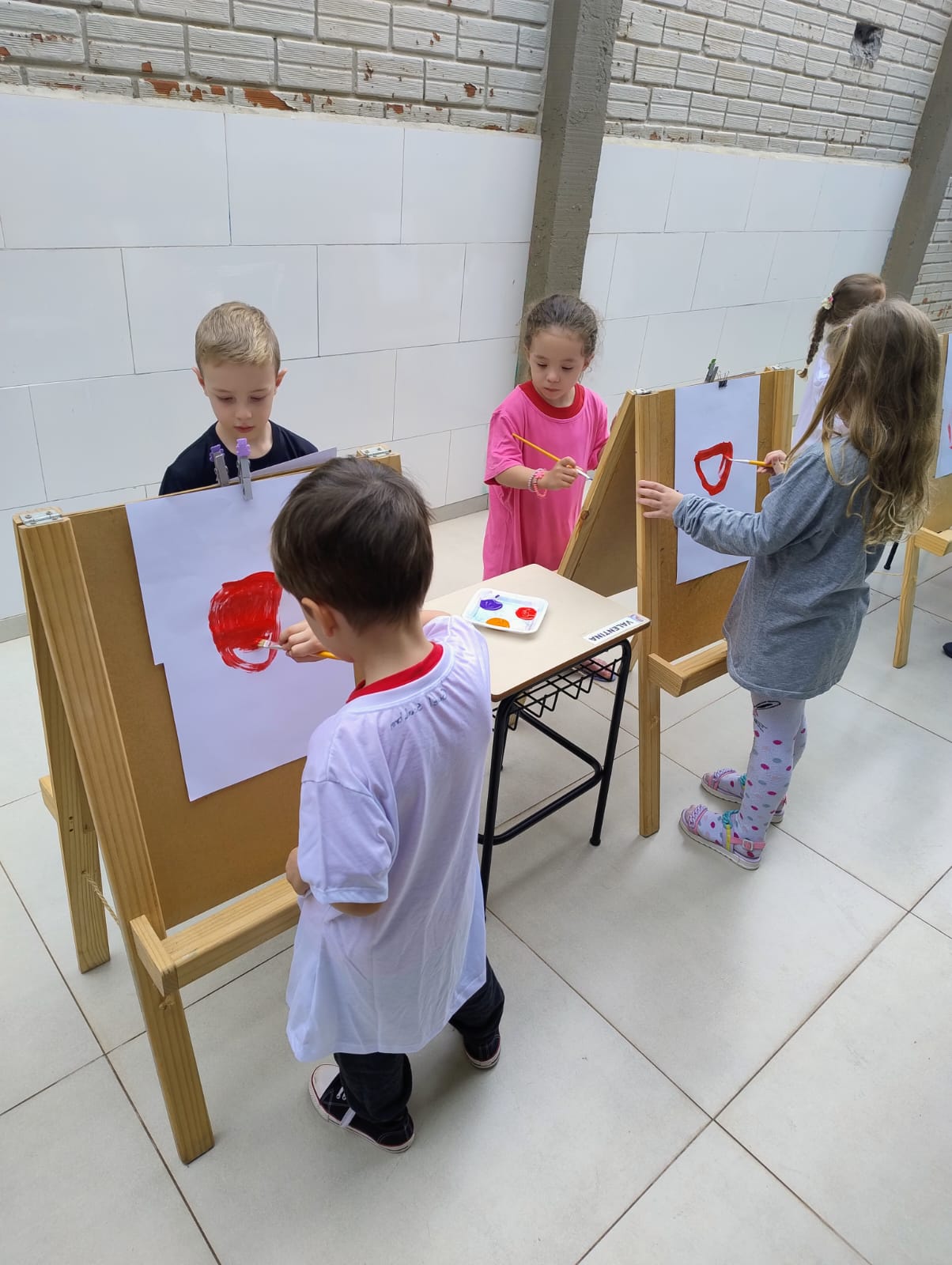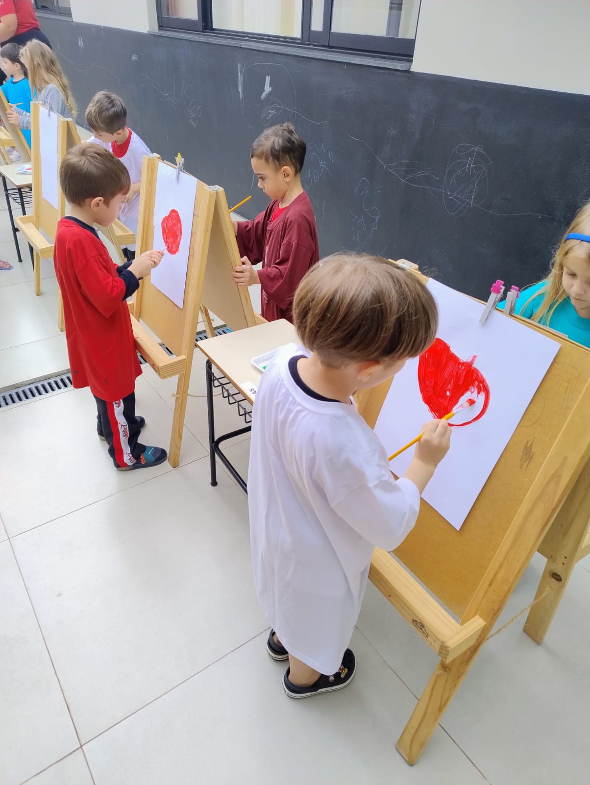 Eles observaram imagens de diversas frutas e, depois, colocaram a criatividade em ação: cada criança escolheu sua fruta preferida e a representou com tinta guache! Uma explosão de cores e imaginação!