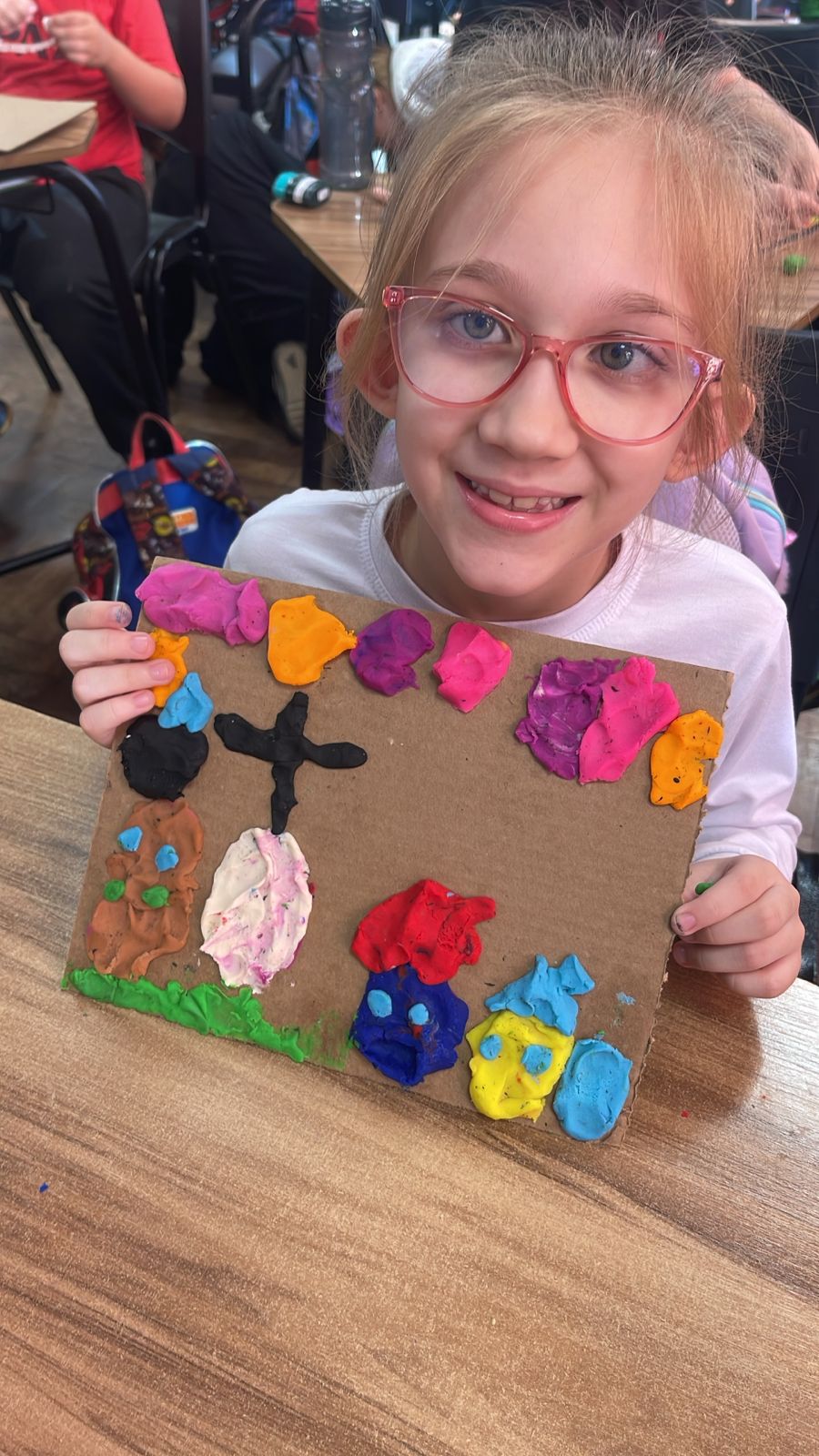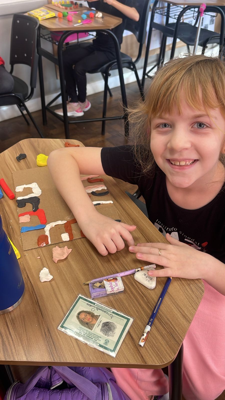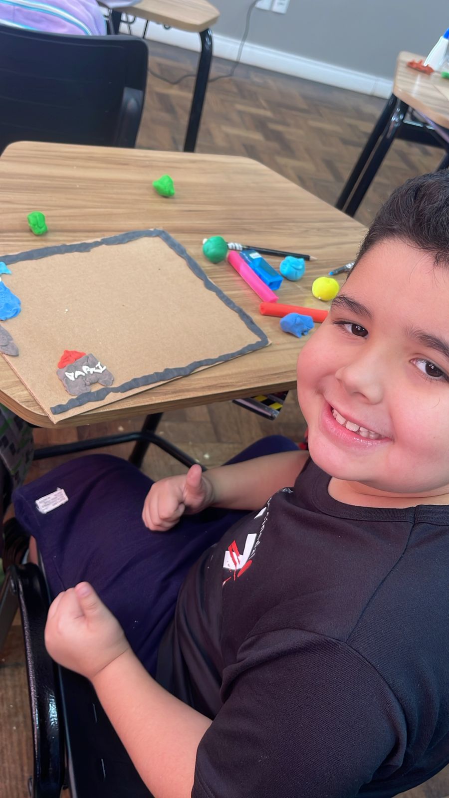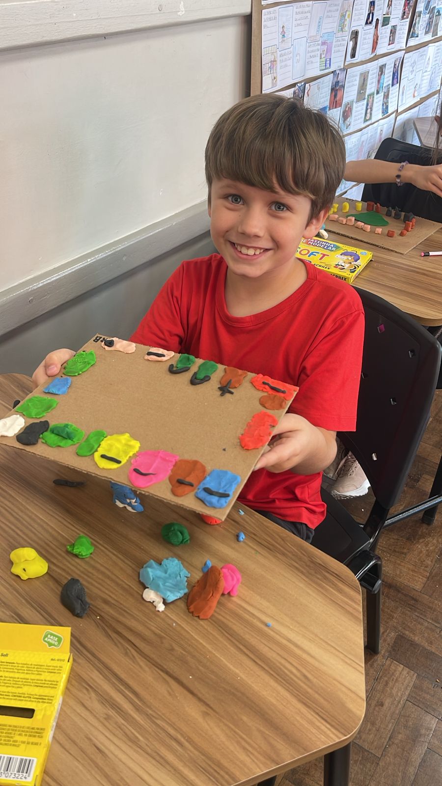 Com o uso de massinha de modelar, foram desafiados a criar uma maquete tátil representando o entorno da escola, aplicando na prática o que observaram durante a caminhada.
