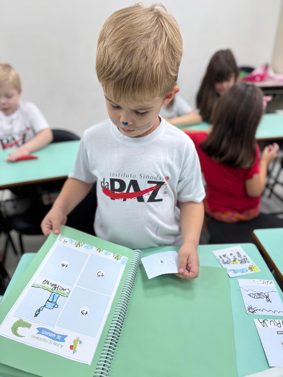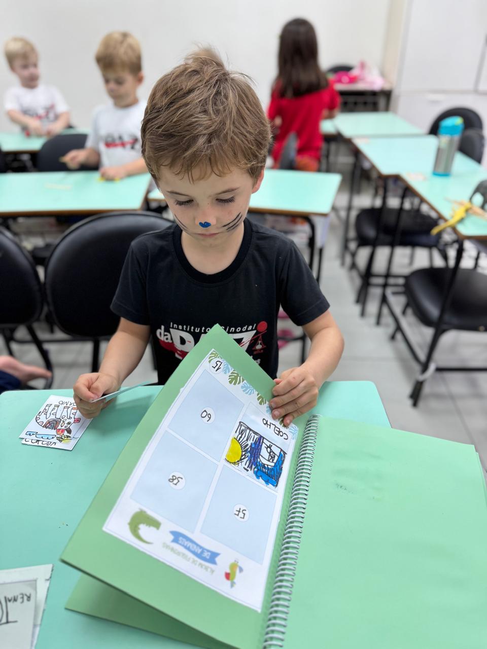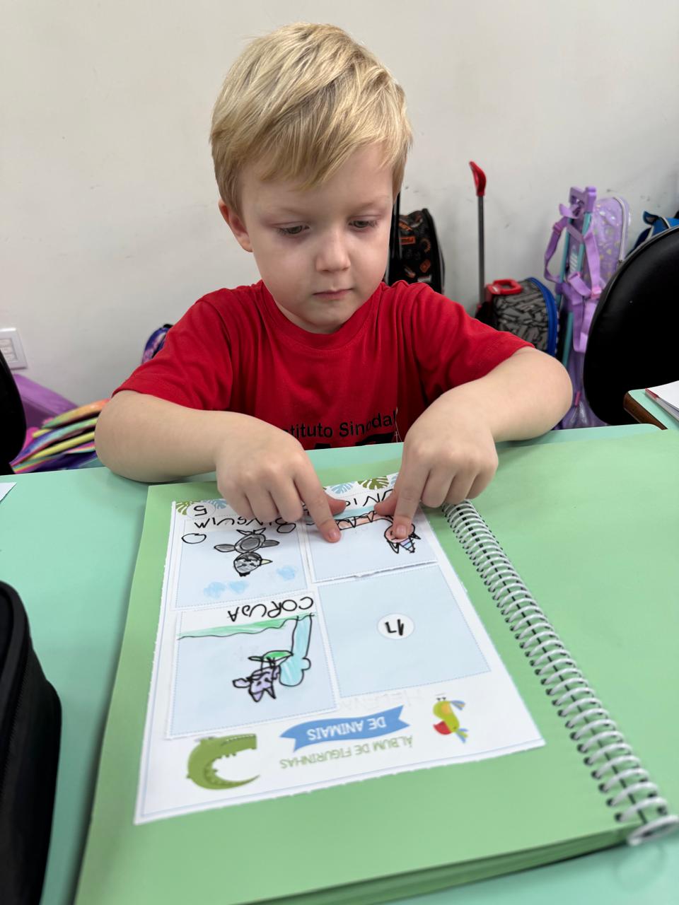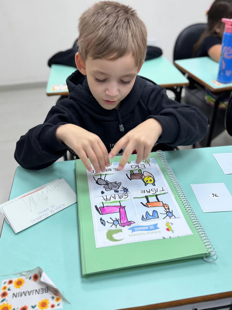 Durante a sequência didática “Álbum de figurinhas de animais”, os alunos produziram um álbum personalizado da turma. A atividade envolveu numerar páginas e figurinhas, localizar os espaços corretos para colagem e, principalmente, pesquisar e descobrir curiosidades sobre os animais — como seus hábitos, alimentação, hábitat e muito mais!
