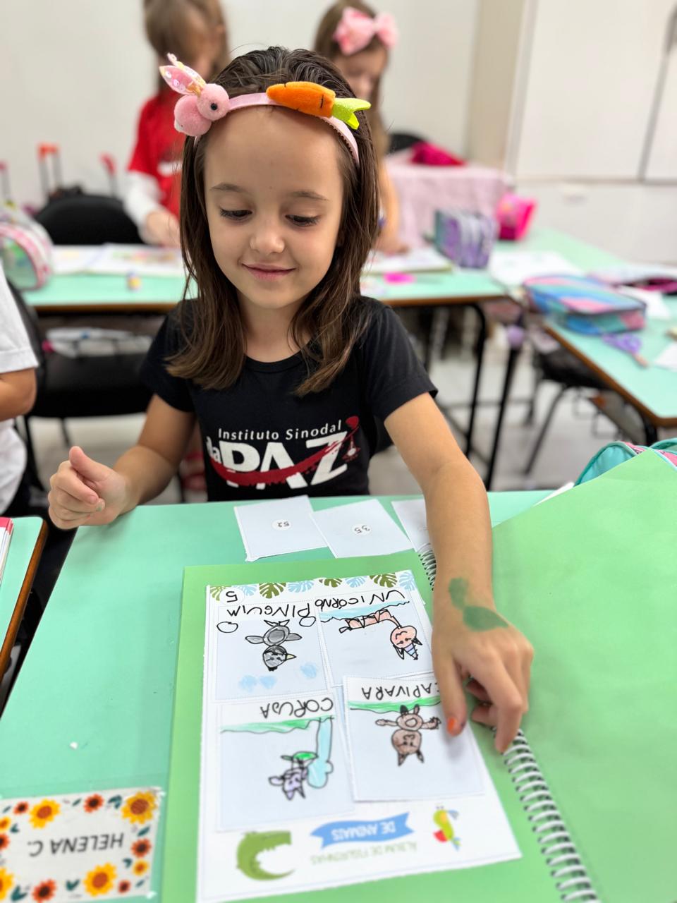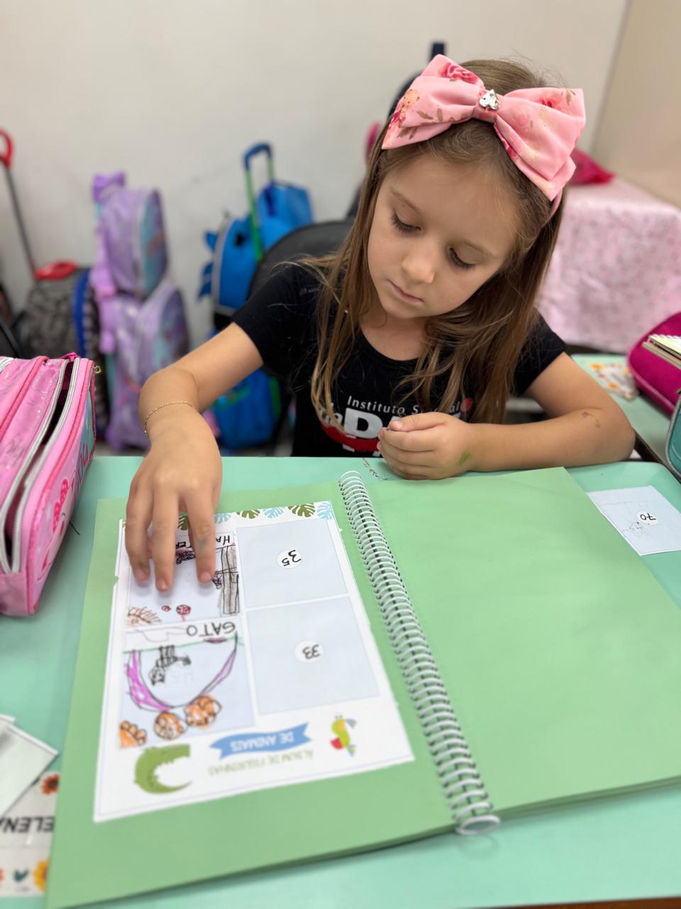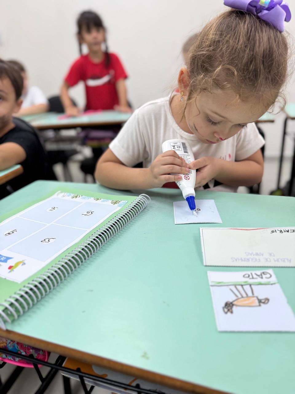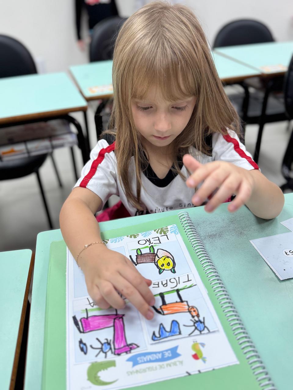 Durante a sequência didática “Álbum de figurinhas de animais”, os alunos produziram um álbum personalizado da turma. A atividade envolveu numerar páginas e figurinhas, localizar os espaços corretos para colagem e, principalmente, pesquisar e descobrir curiosidades sobre os animais — como seus hábitos, alimentação, hábitat e muito mais!