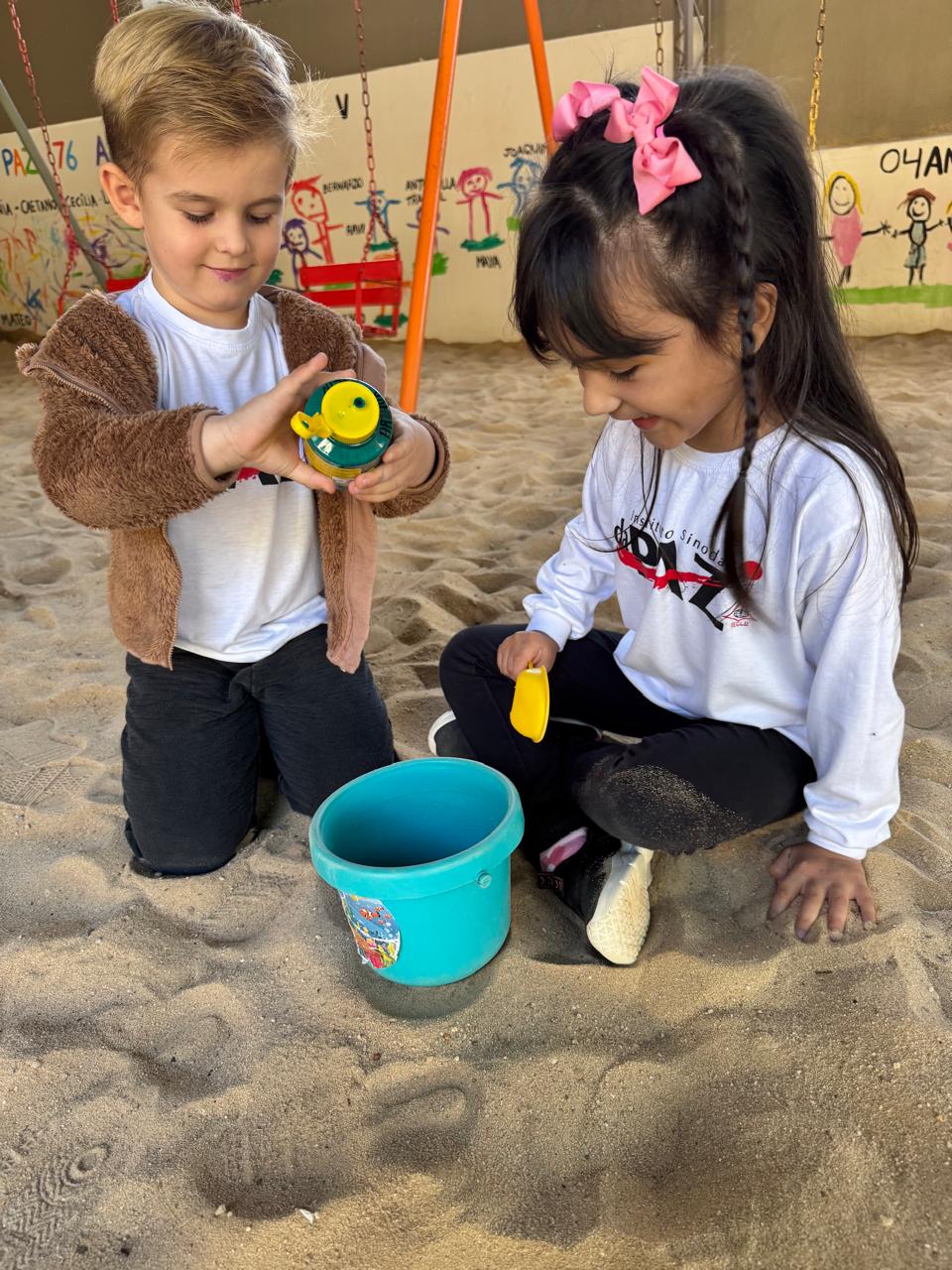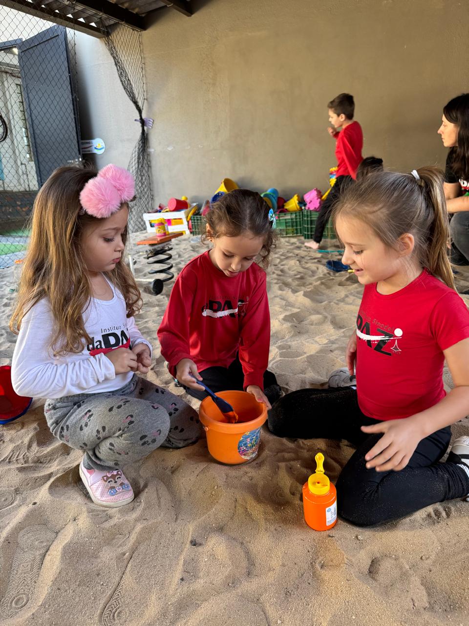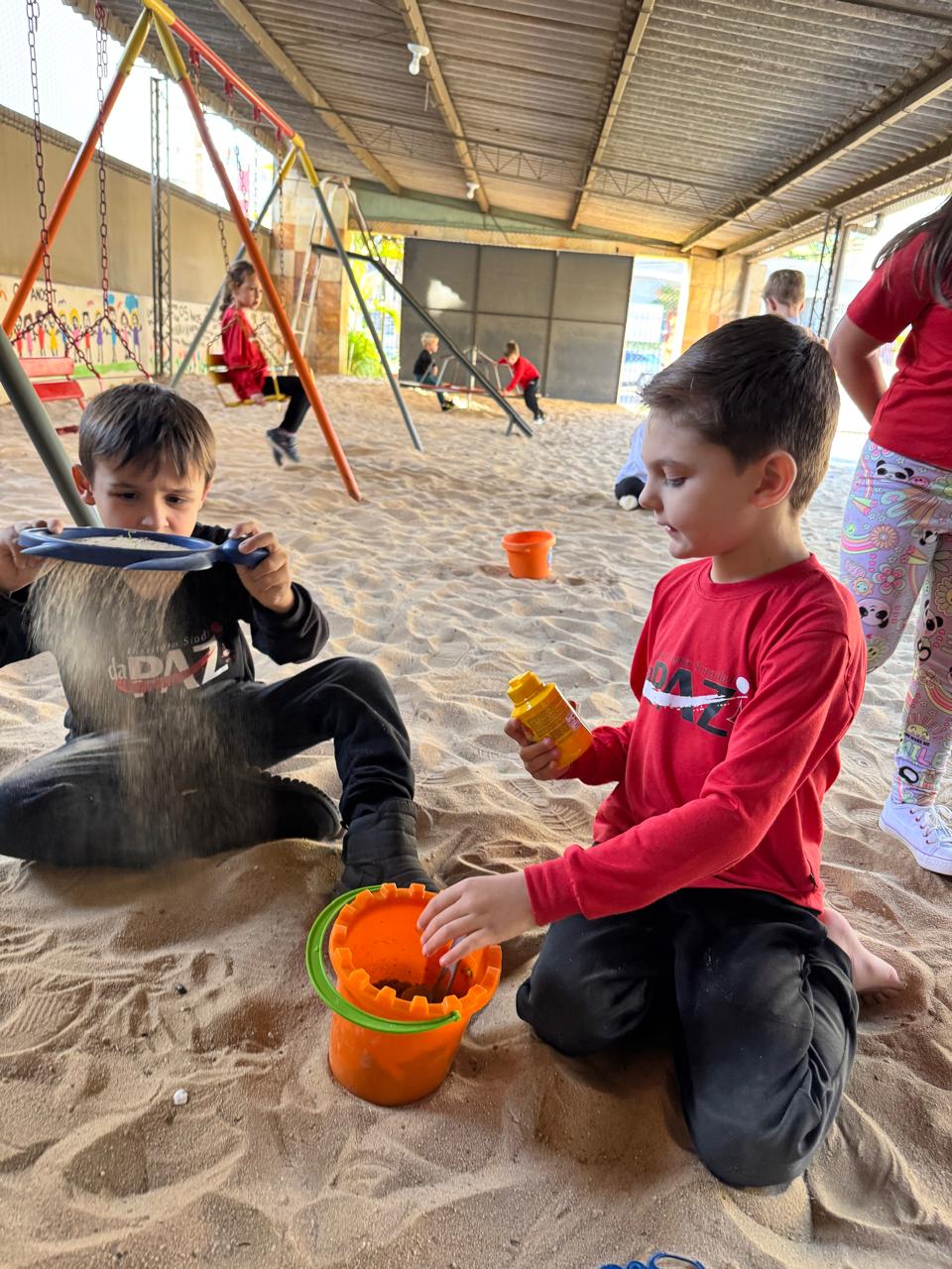 A Turma 05 anos da Educação Infantil, das professoras Ana Paula e Denise, colocou a mão na massa — ou melhor, na areia! Durante a Sequência Didática “Misturas com elementos naturais”, as crianças exploraram cores e texturas ao tingir areia com diferentes tonalidades.