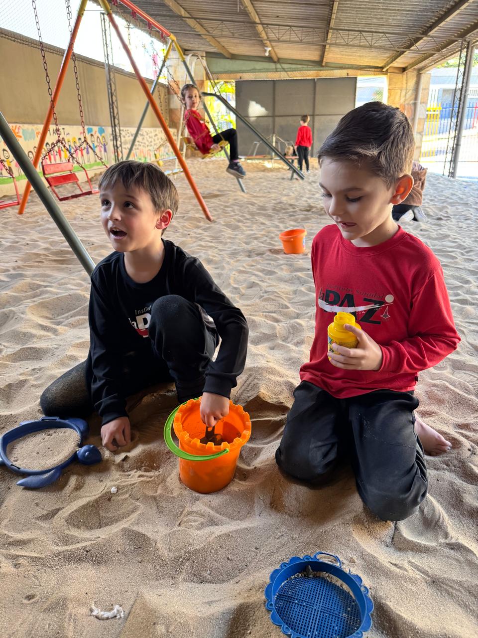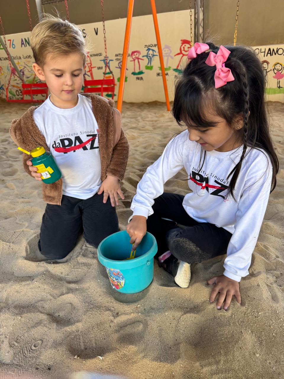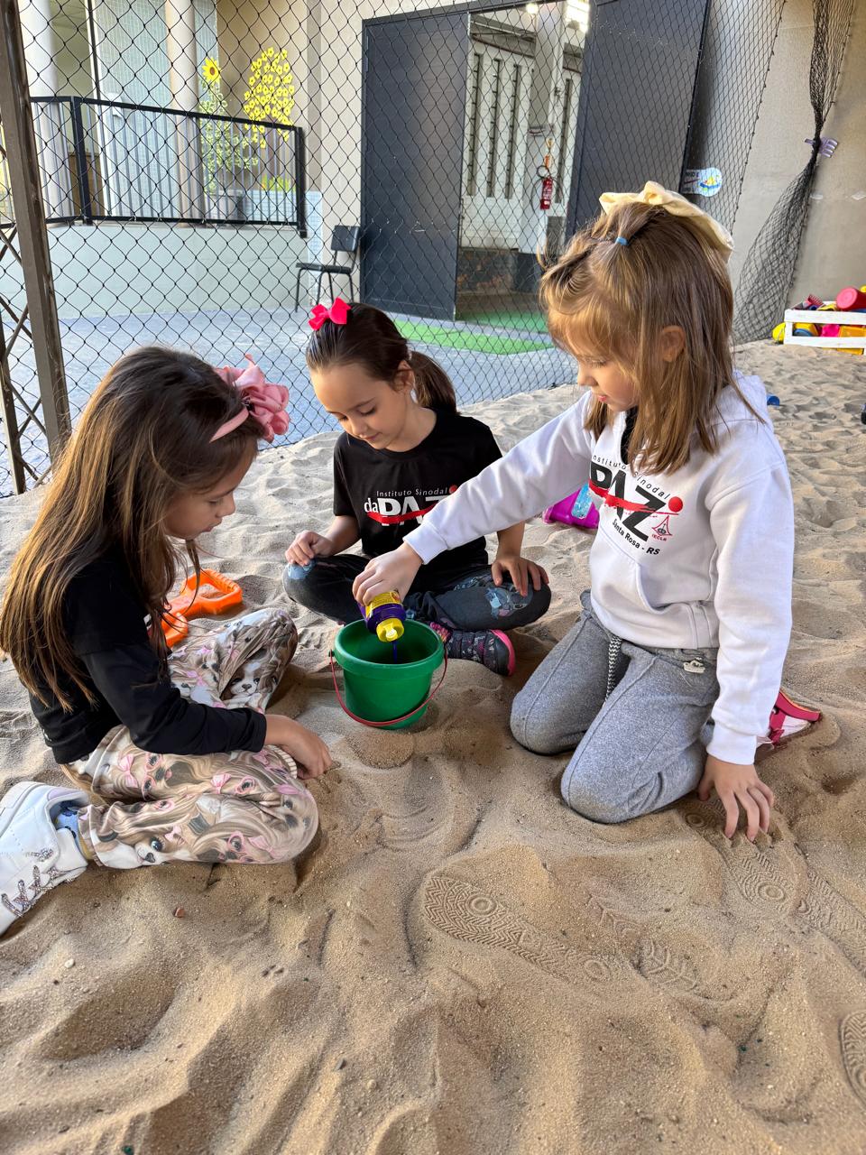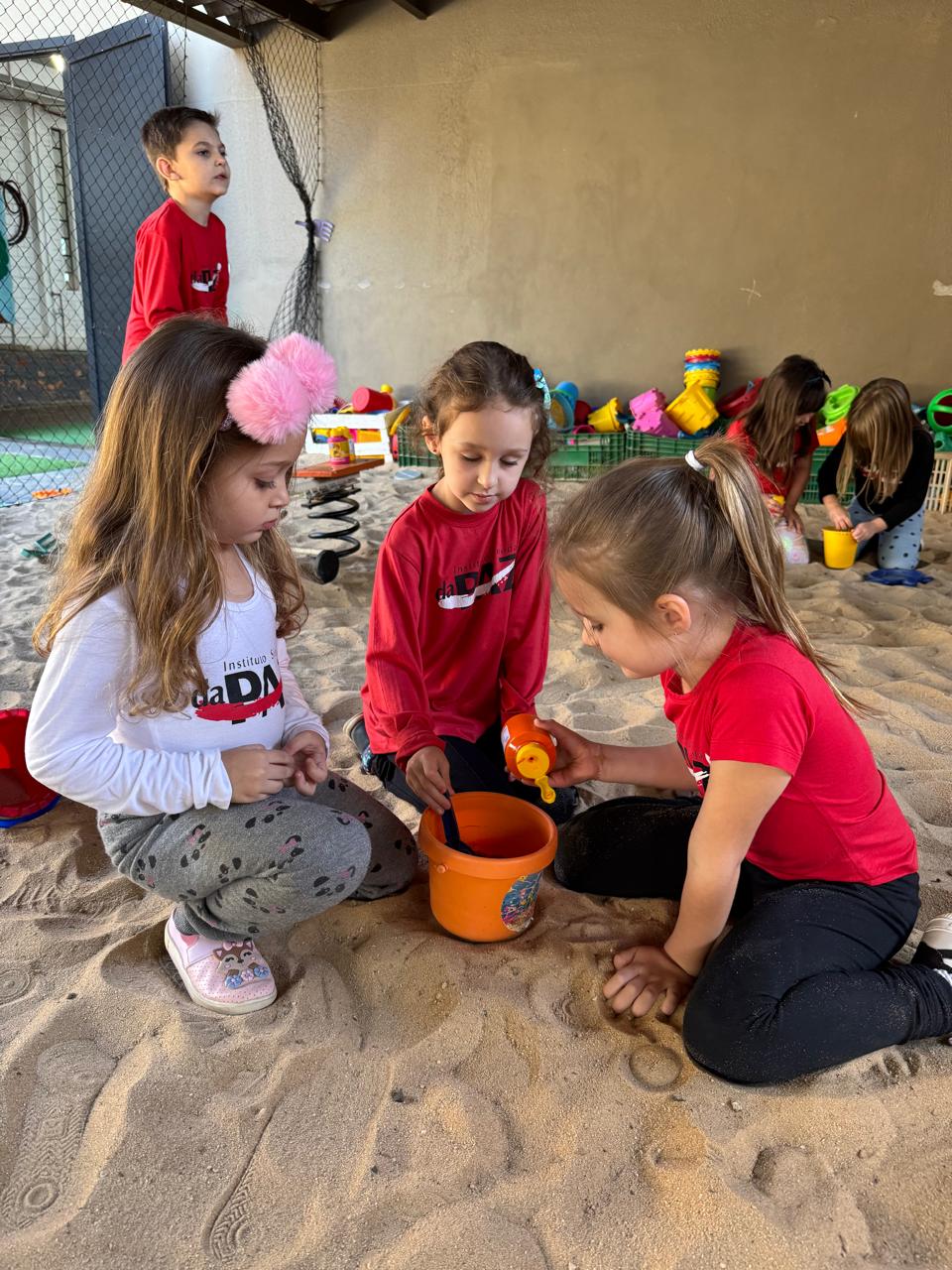 A Turma 05 anos da Educação Infantil, das professoras Ana Paula e Denise, colocou a mão na massa — ou melhor, na areia! Durante a Sequência Didática “Misturas com elementos naturais”, as crianças exploraram cores e texturas ao tingir areia com diferentes tonalidades.