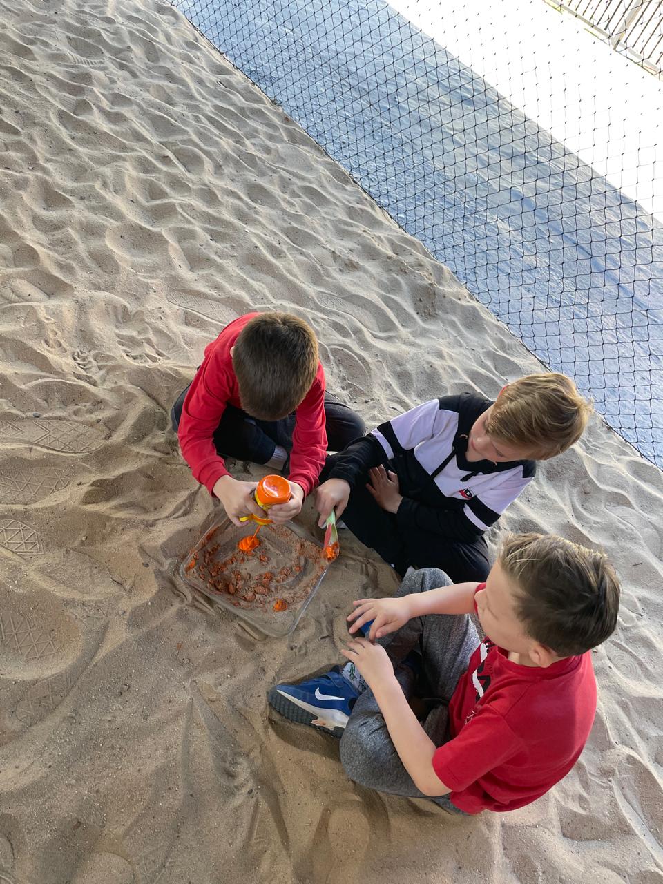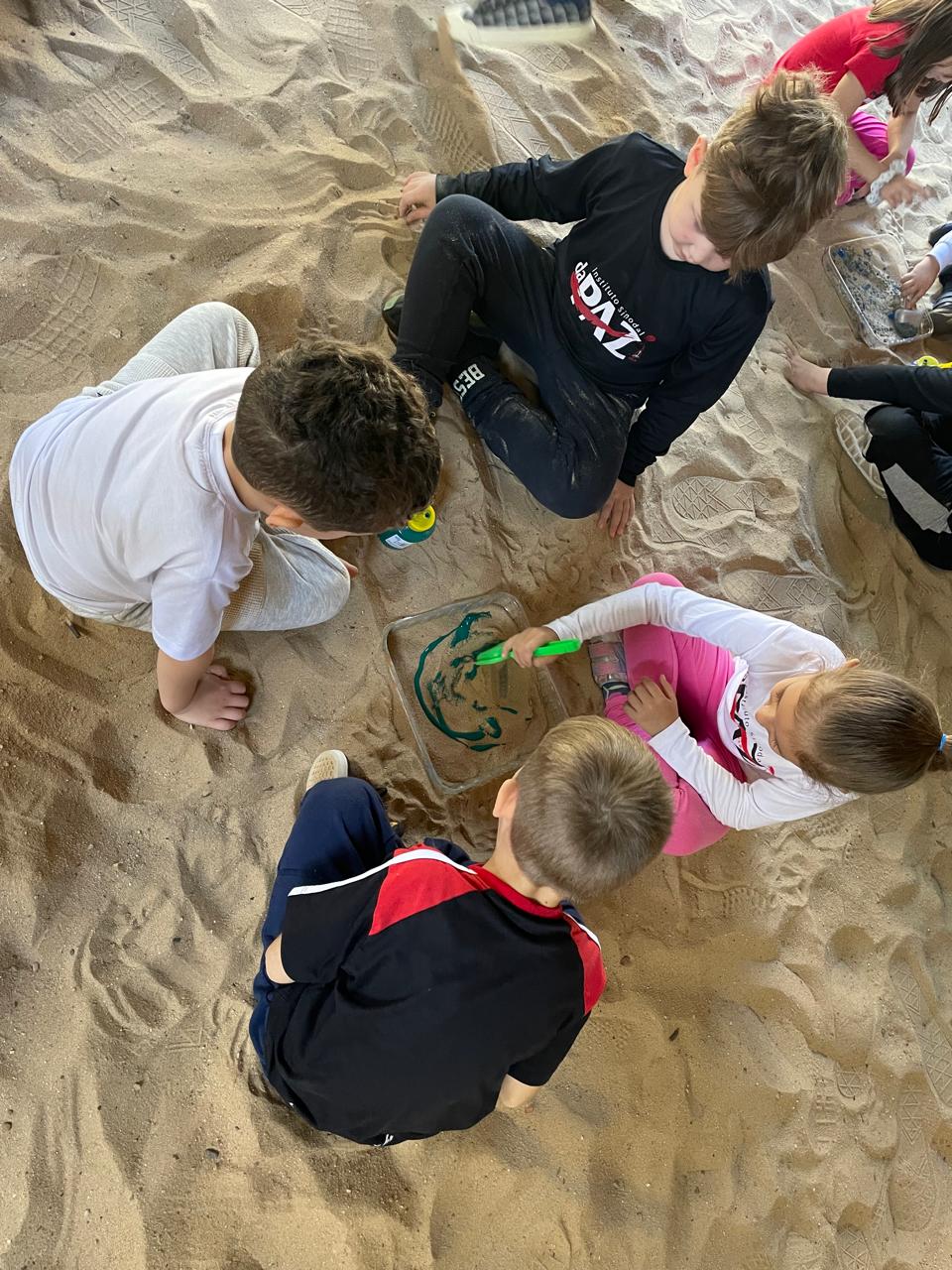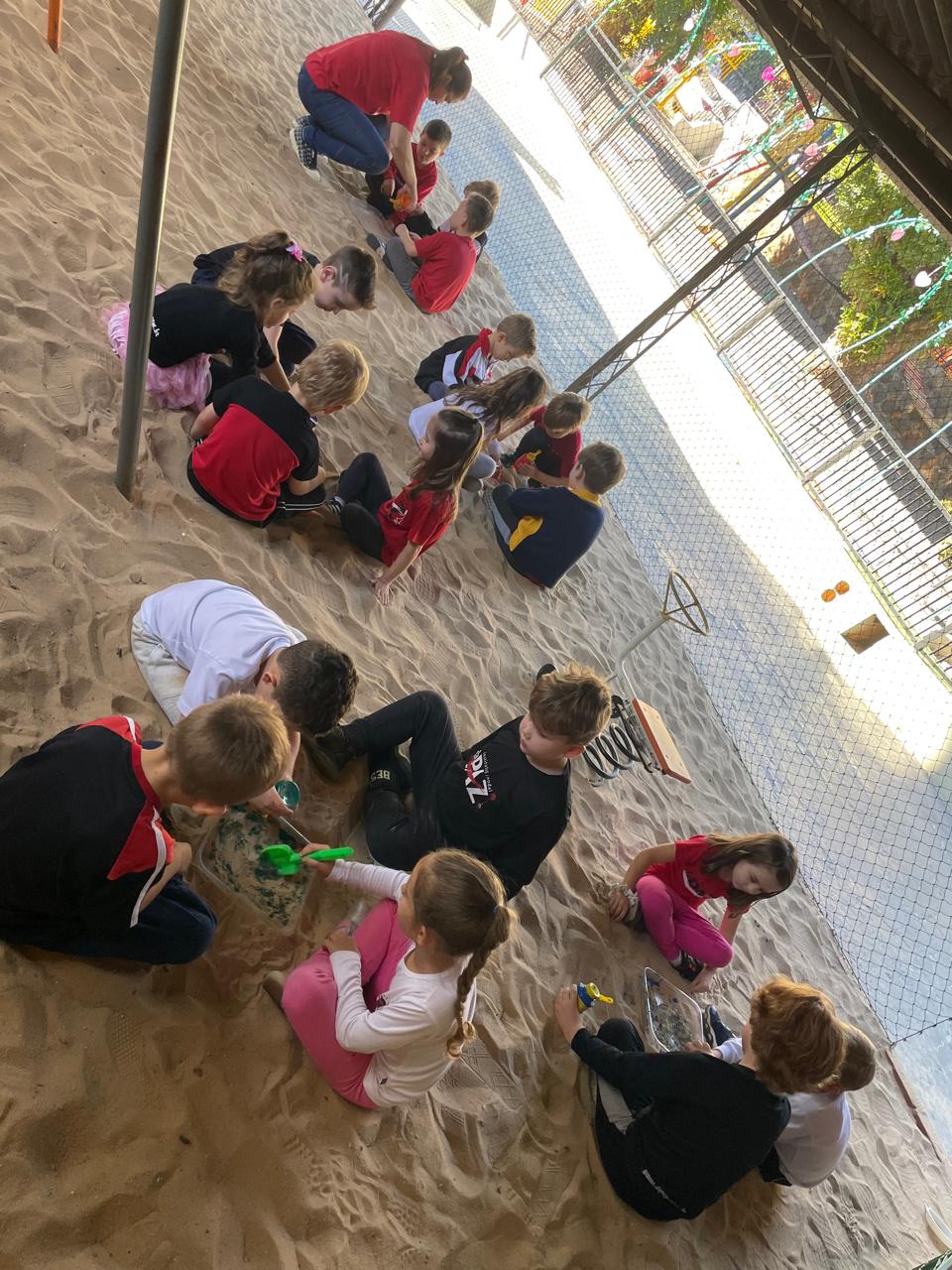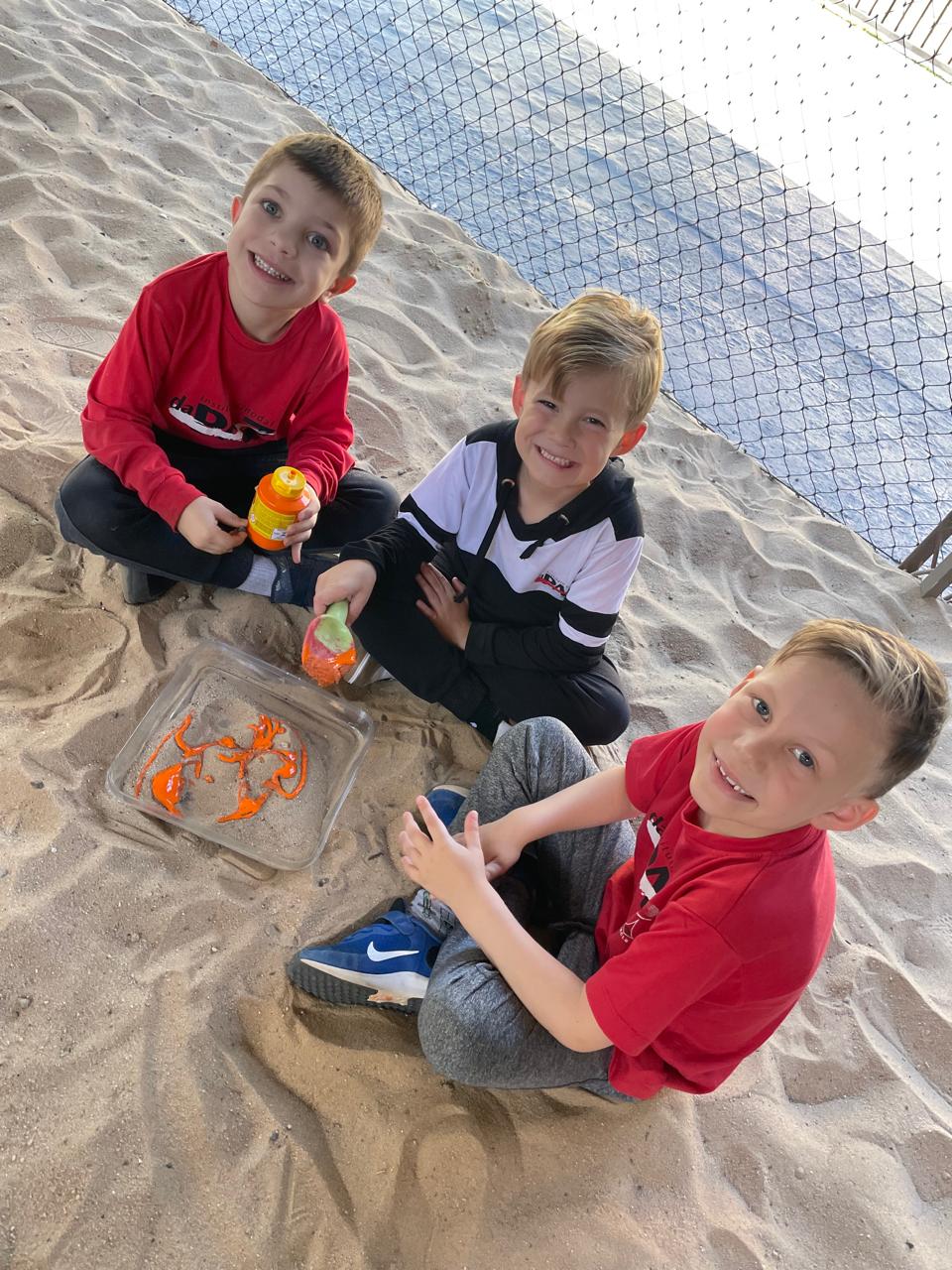 Utilizando a criatividade e o trabalho em equipe, as crianças tingiram areia com diferentes cores, explorando texturas, misturas e muita curiosidade!