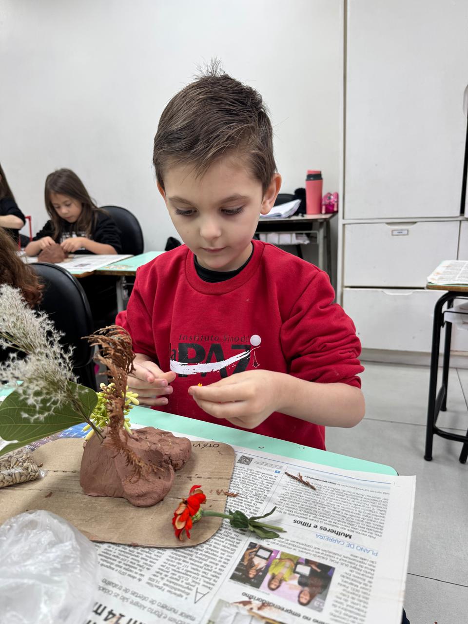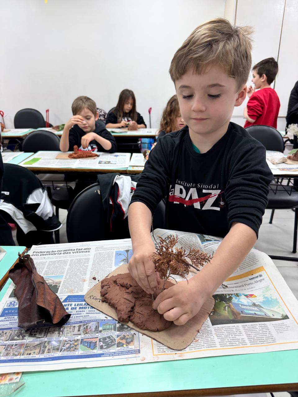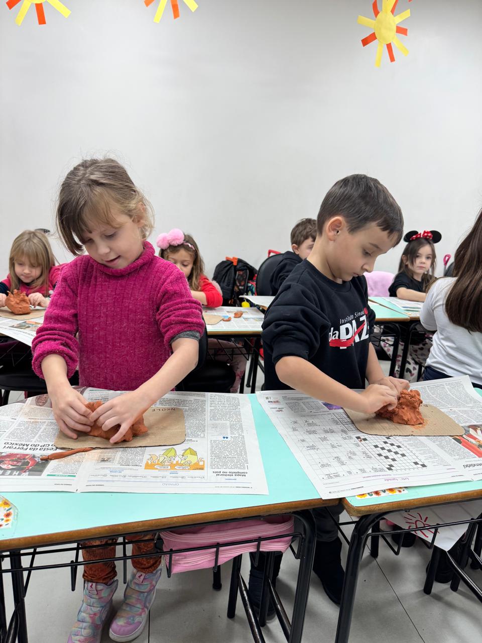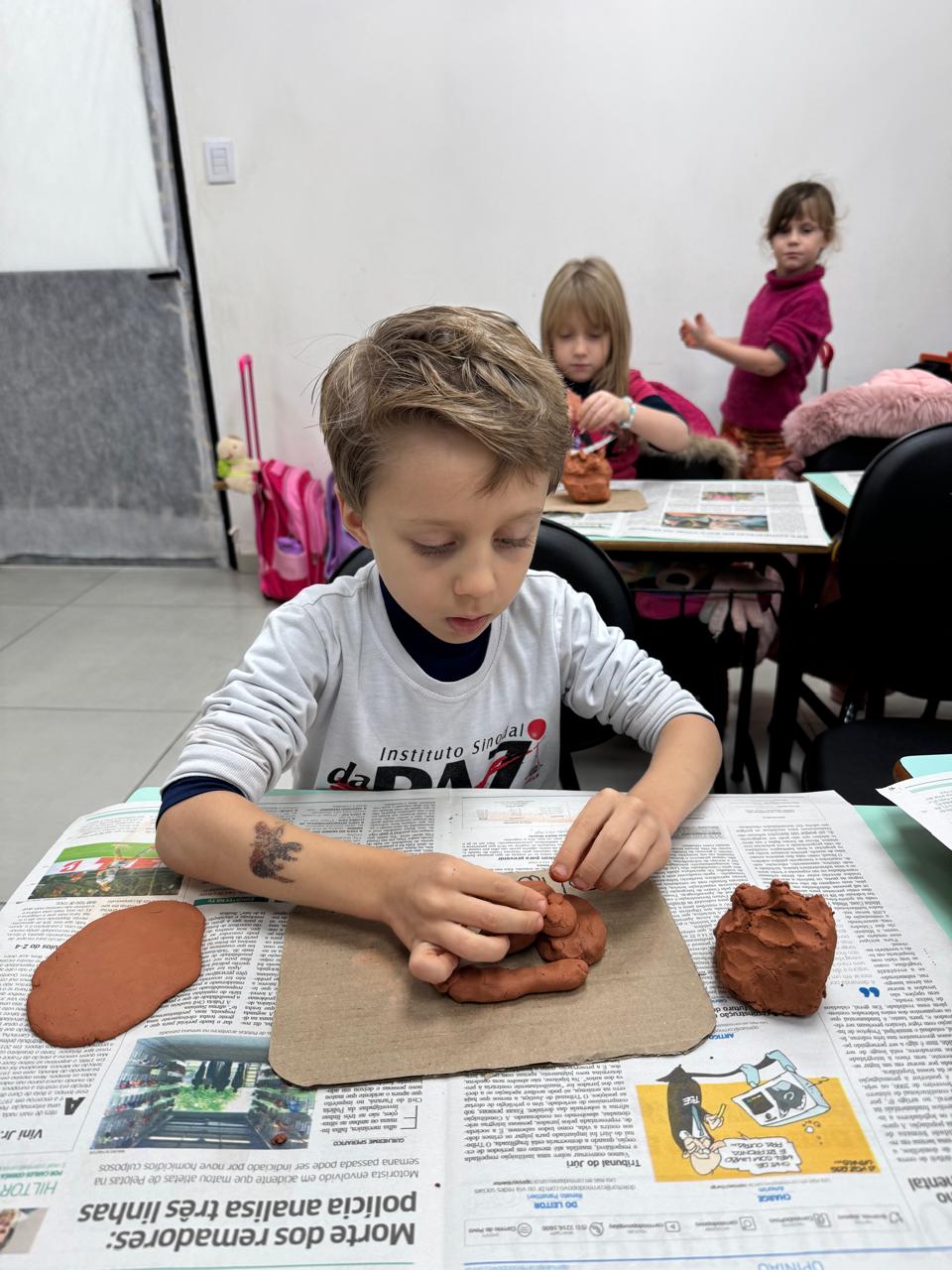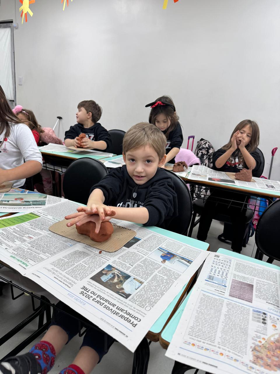 Utilizando argila e elementos naturais, as crianças colocaram a mão na massa para modelar uma linda escultura, expressando sua imaginação e desenvolvendo a coordenação motora de forma lúdica e significativa.