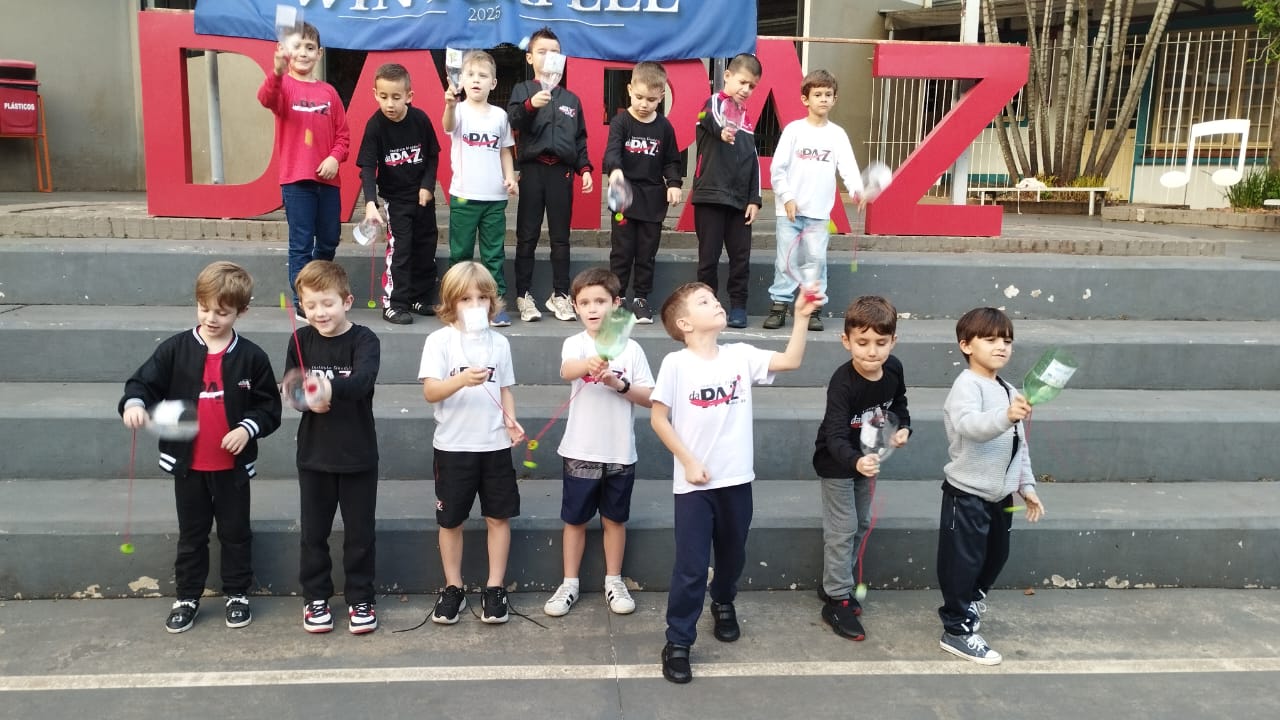 Com muita criatividade, as crianças confeccionaram seus próprios bilboquês utilizando materiais recicláveis. Foi um momento de aprendizado e diversão, onde o cuidado com o planeta entrou na brincadeira de forma leve e significativa.