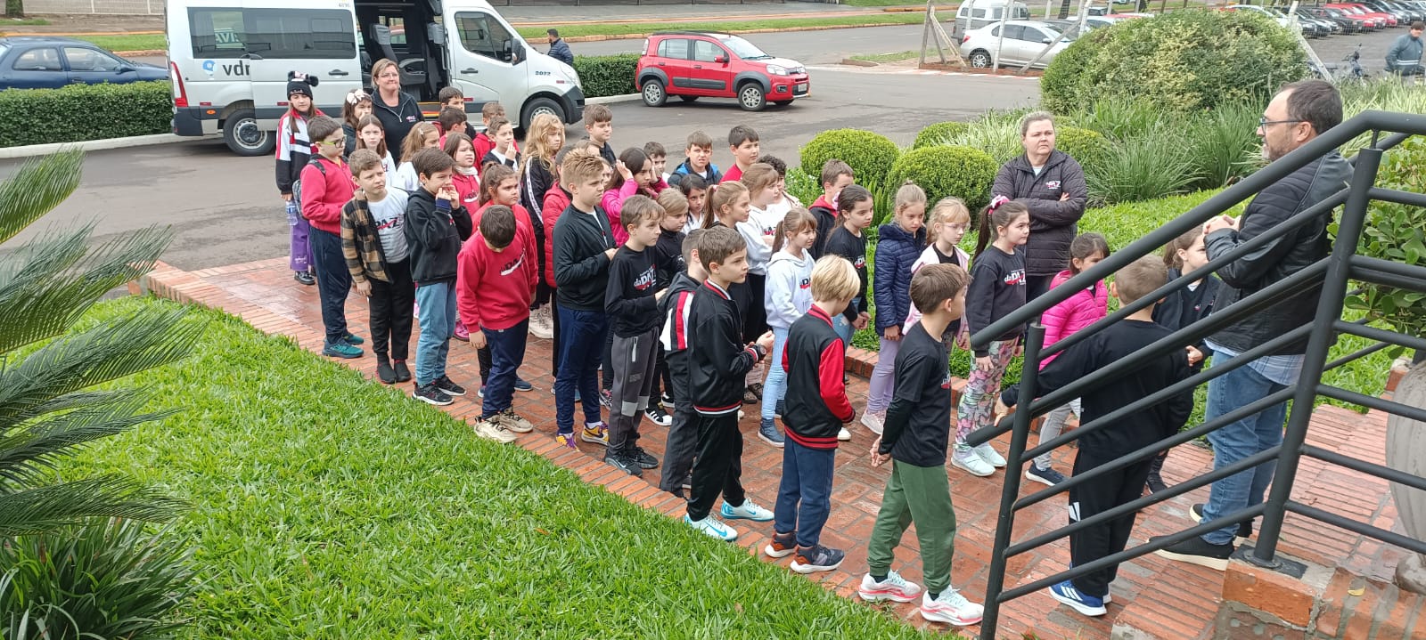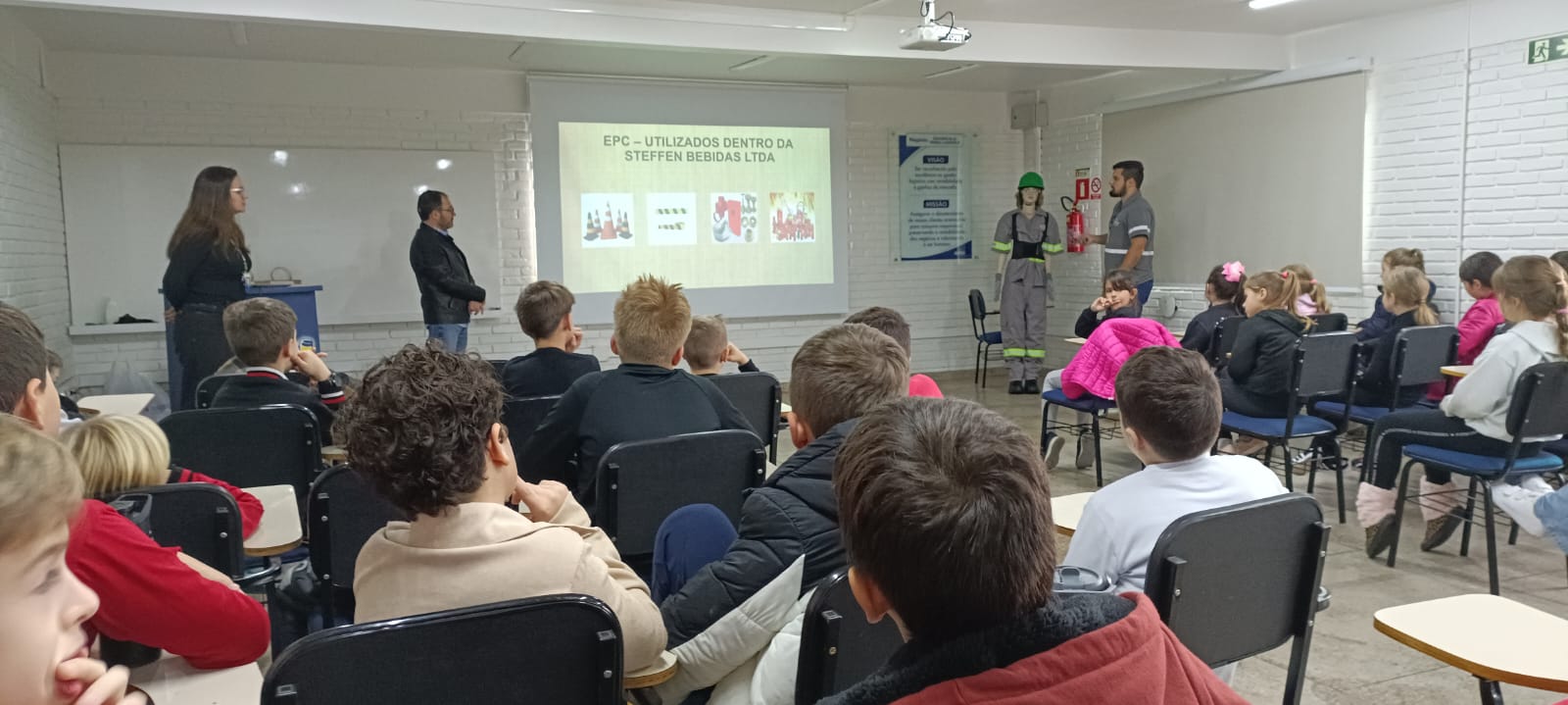 Os estudantes do 3º ano do Ensino Fundamental – turmas I e R participaram de uma tarde especial de aprendizado e descobertas na empresa Steffen Bebidas, acompanhados de suas professoras regentes, Isabel Gewehr e Raquel Stroff.