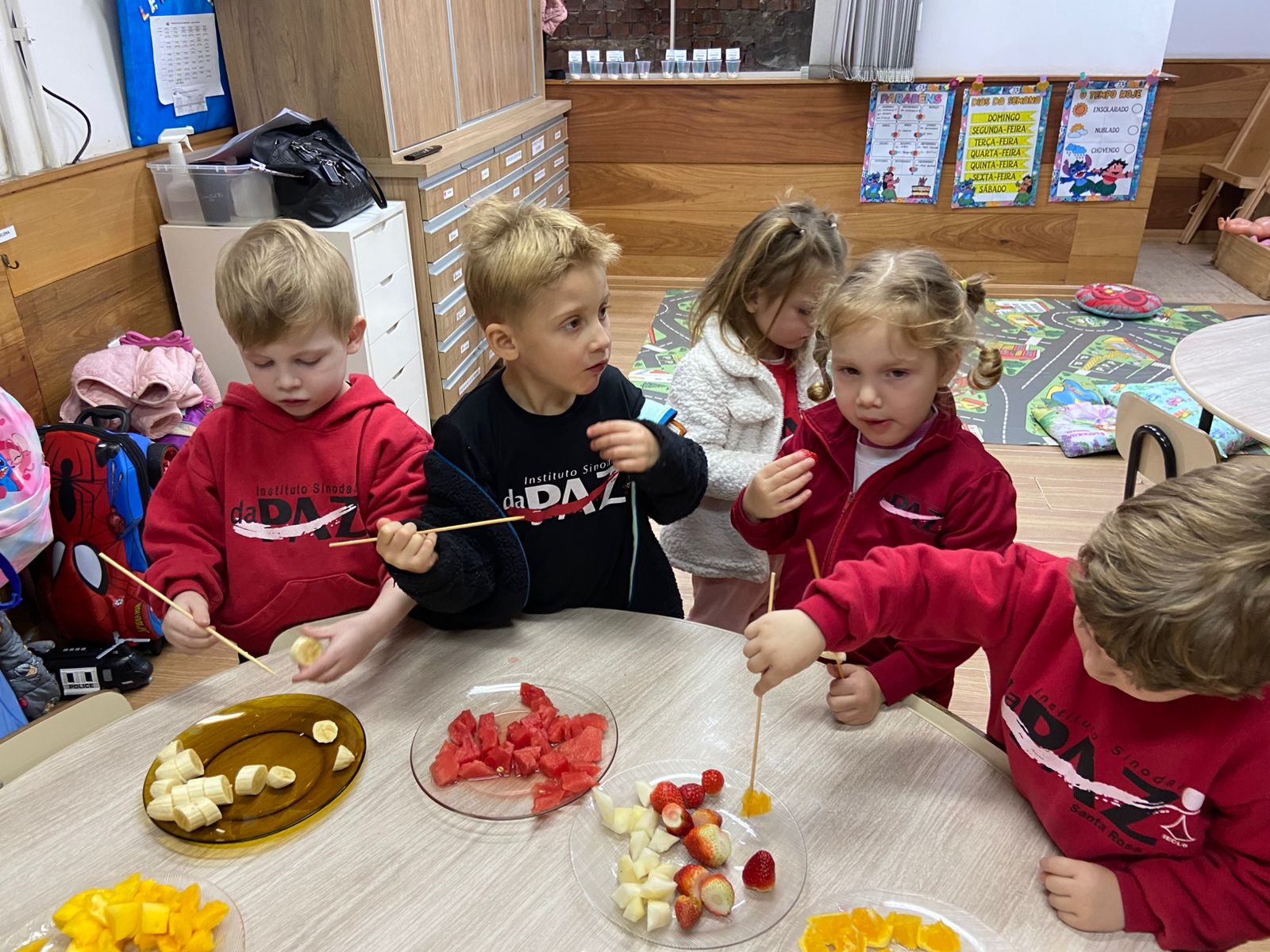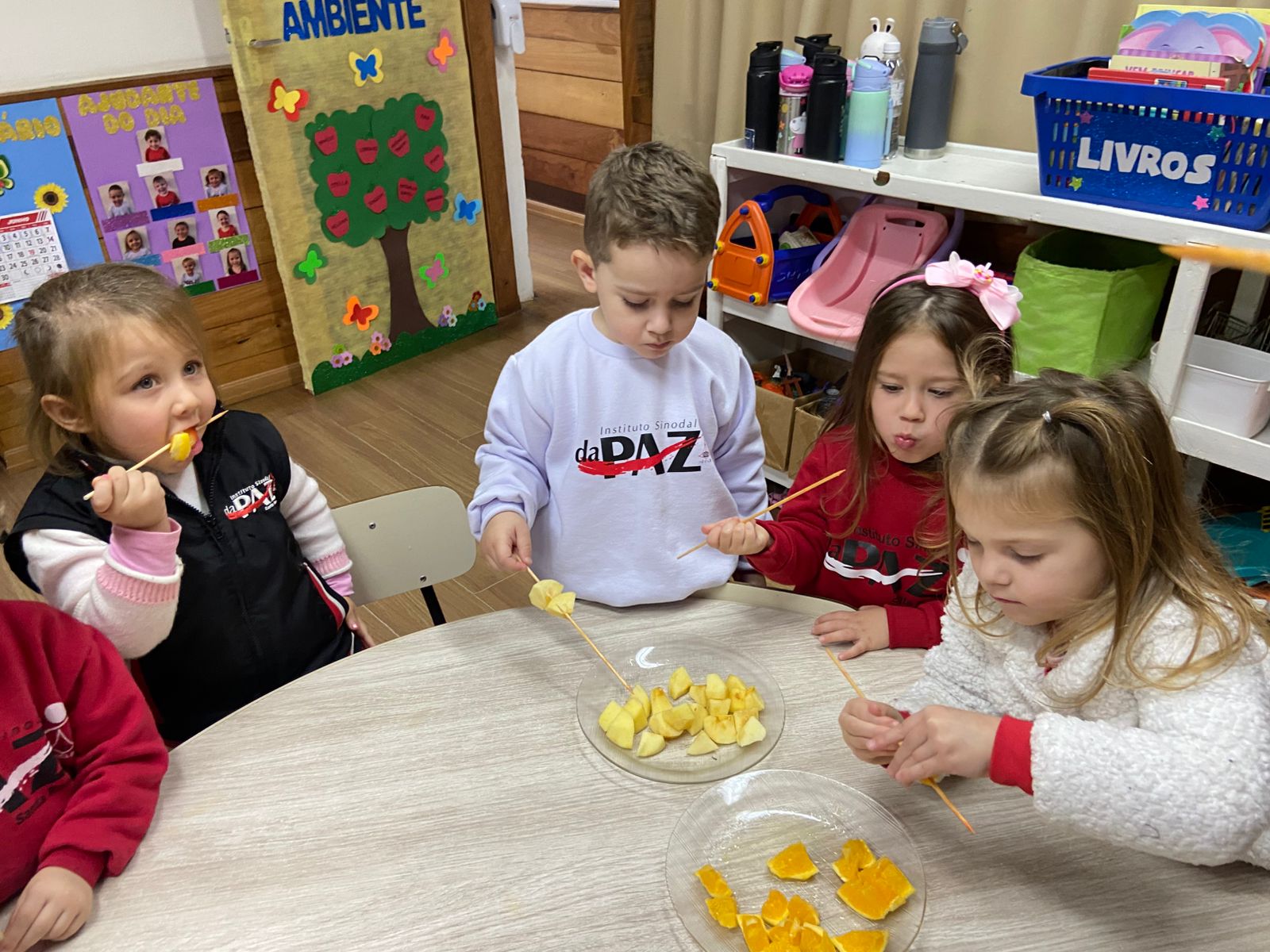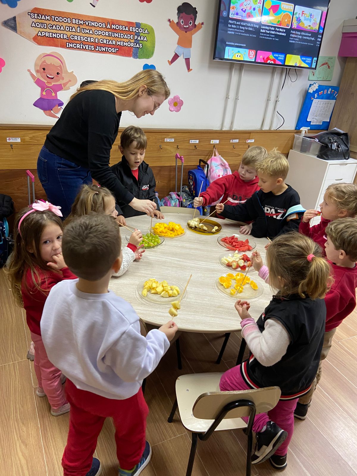 Com o objetivo de ampliar o vocabulário, nossos pequenos exploraram o nome de diversas frutas em inglês e, para tornar o aprendizado ainda mais divertido, participaram de uma deliciosa degustação! Foi um momento de descobertas, sabores e muita alegria — aprendendo com todos os sentidos!