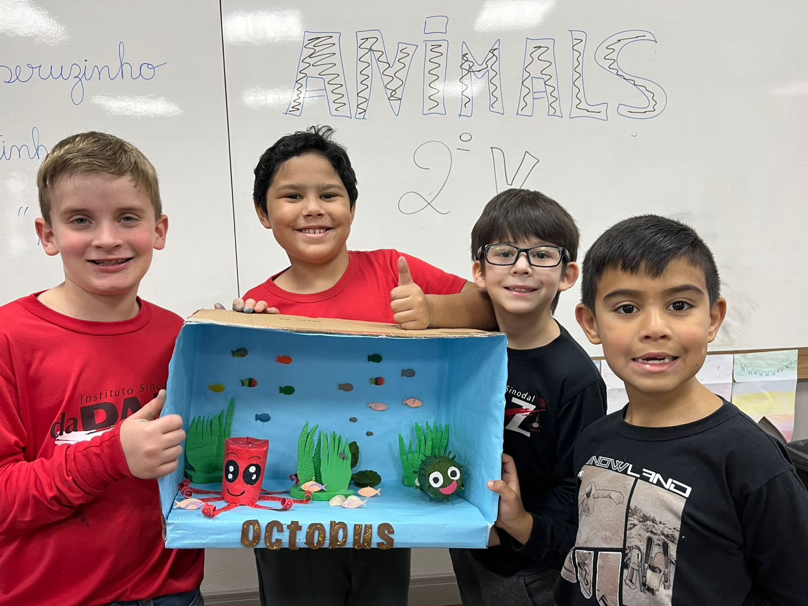 Nossos alunos dos 2º anos L, K e A colocaram a criatividade em prática e criaram maquetes incríveis representando diferentes animais e seus habitats — tudo em inglês!