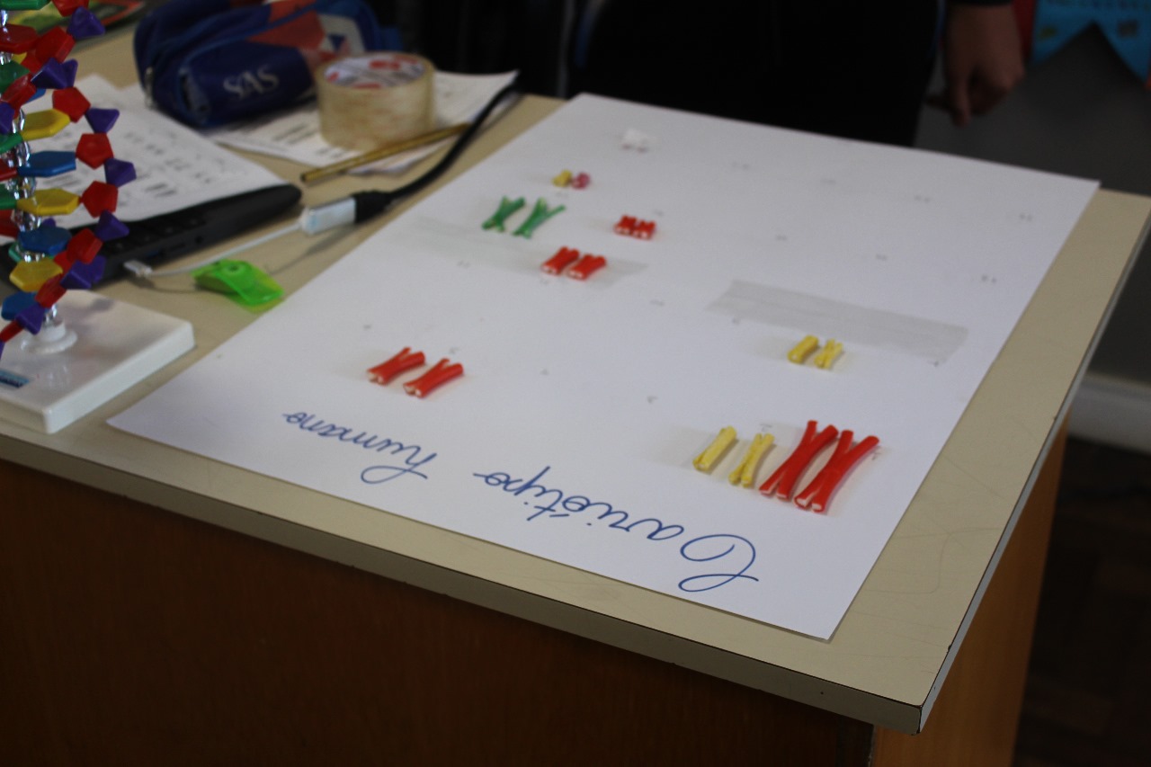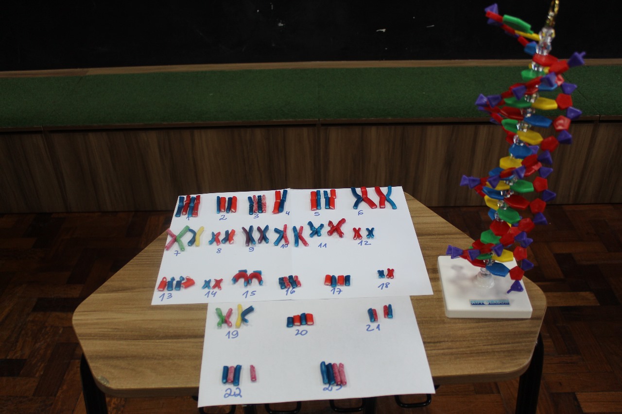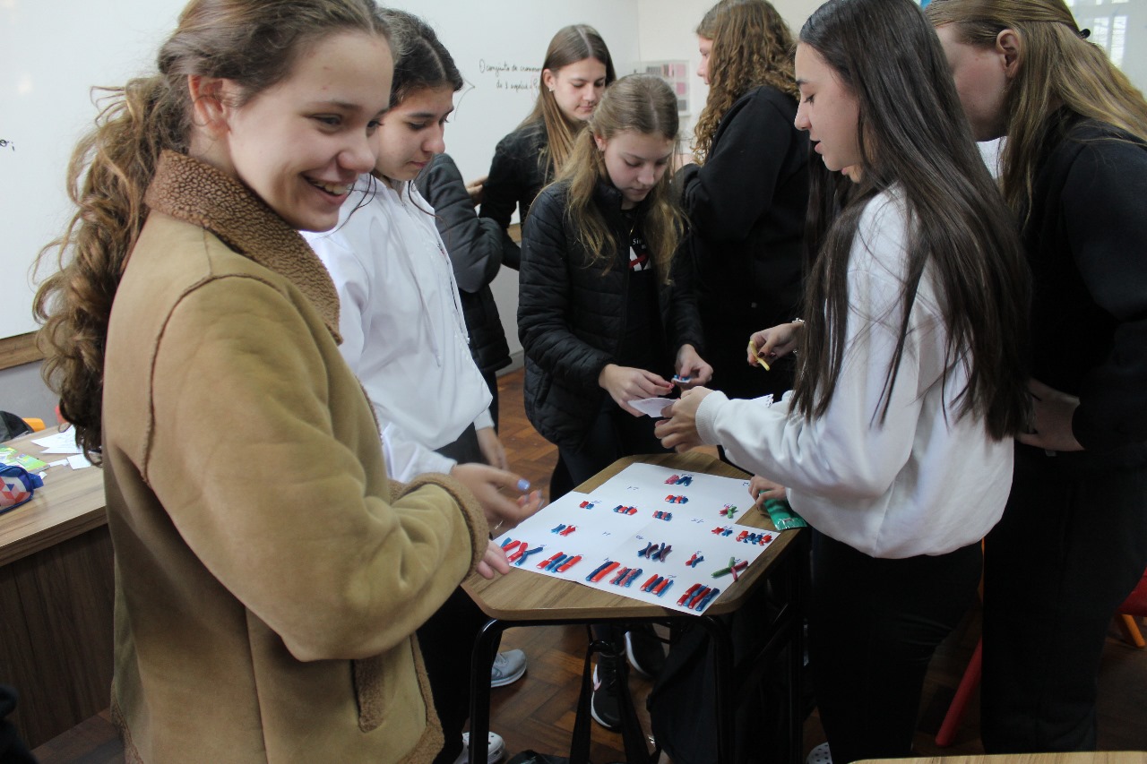 Para compreender melhor os conceitos de cromossomo, gene e genótipo, os alunos dos 8º anos participaram de uma atividade prática que representou genes alelos e a herança genética de forma concreta e visual.