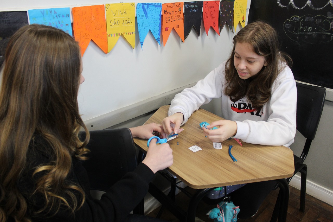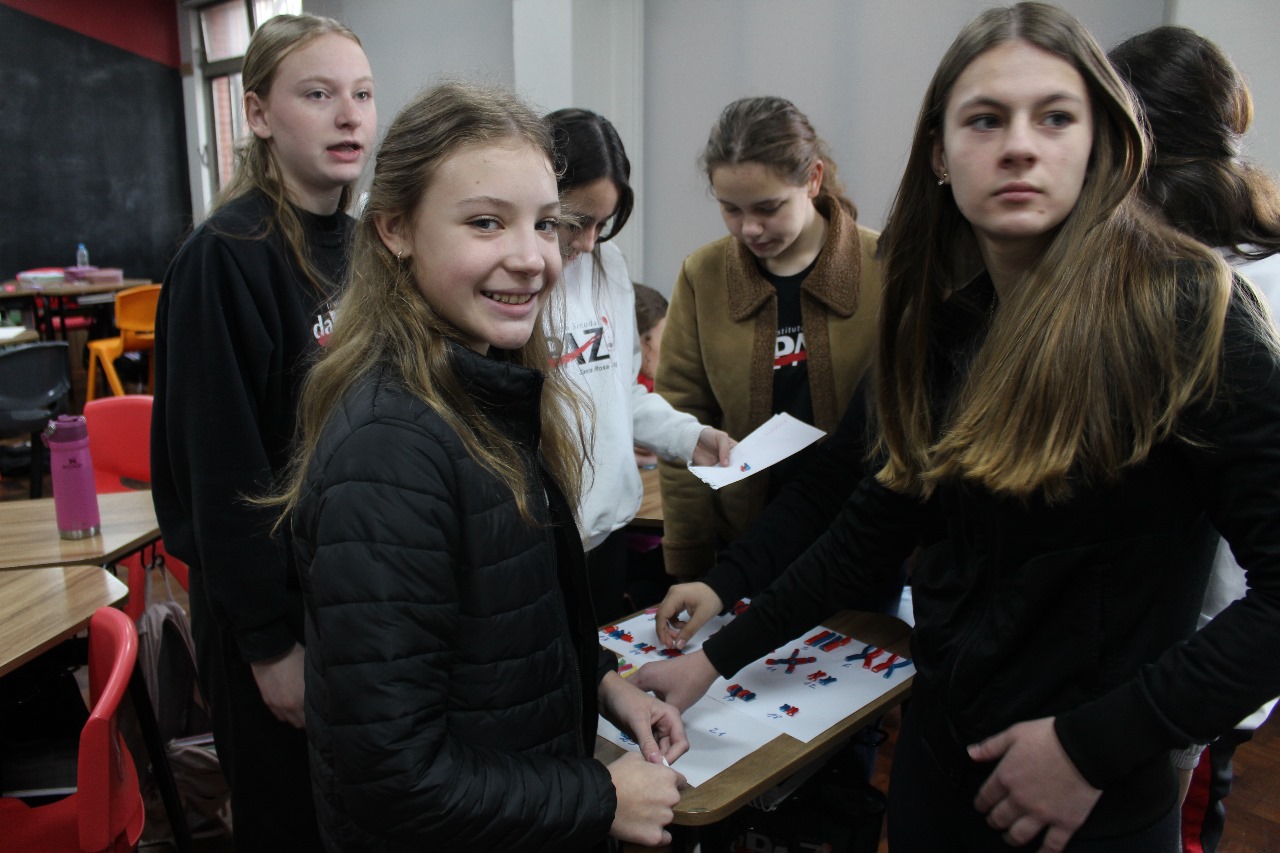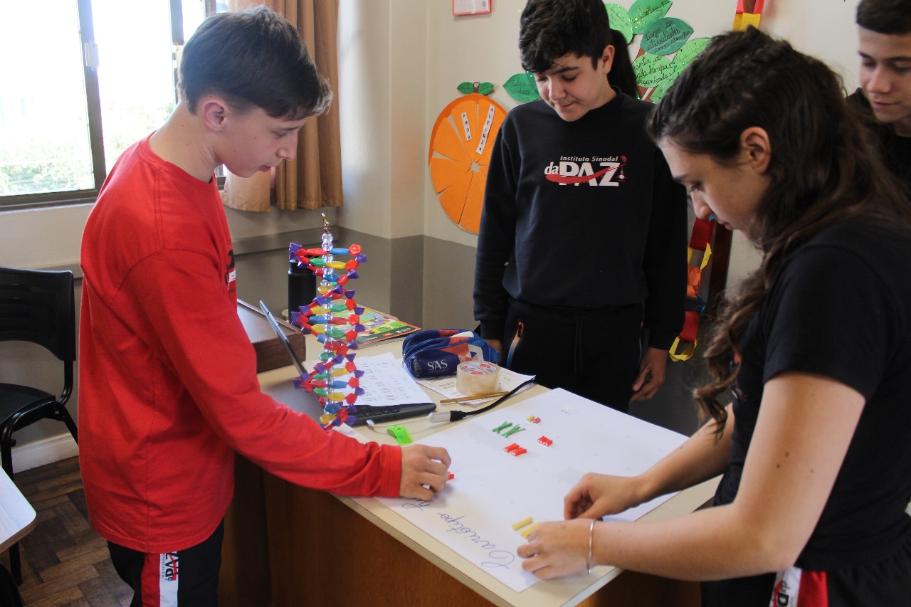 Para compreender melhor os conceitos de cromossomo, gene e genótipo, os alunos dos 8º anos participaram de uma atividade prática que representou genes alelos e a herança genética de forma concreta e visual.