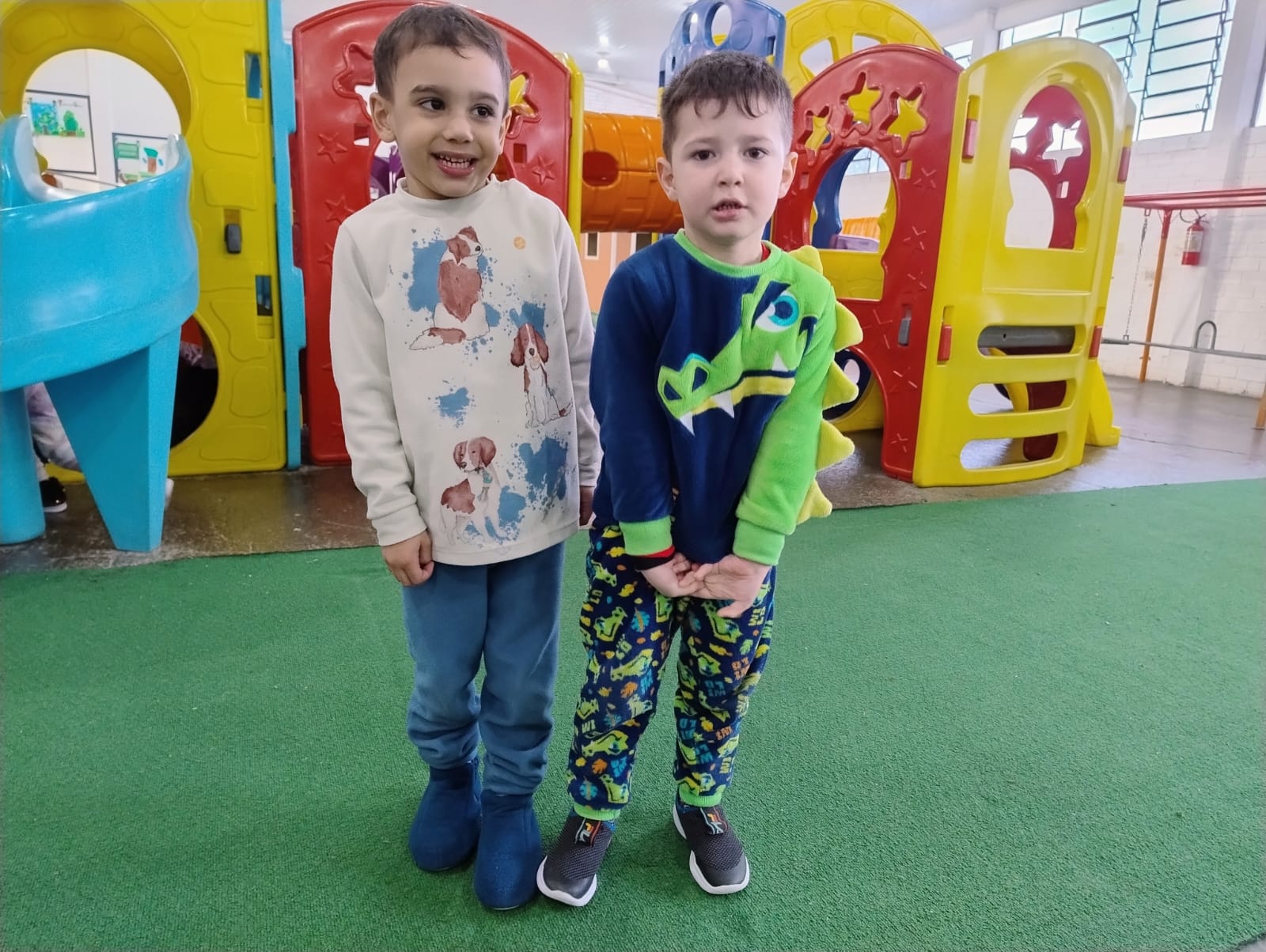 Na sexta-feira, a turma da Pré-escola 04 anos T, da profe Tamara, veio de pijama e aproveitou um momento super especial com muita pipoca, brincadeiras e muitas risadas!