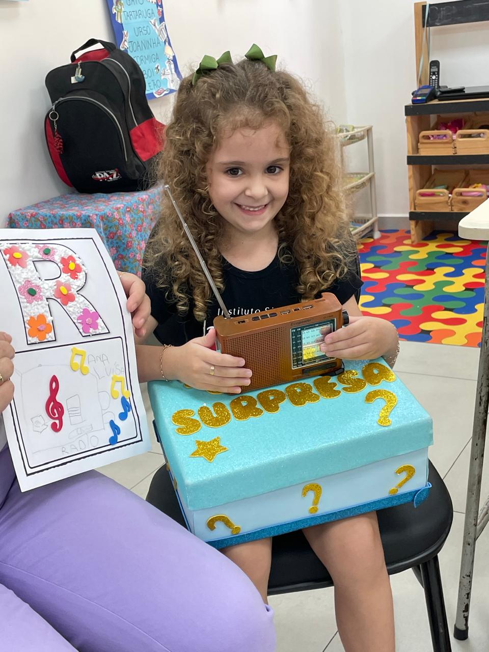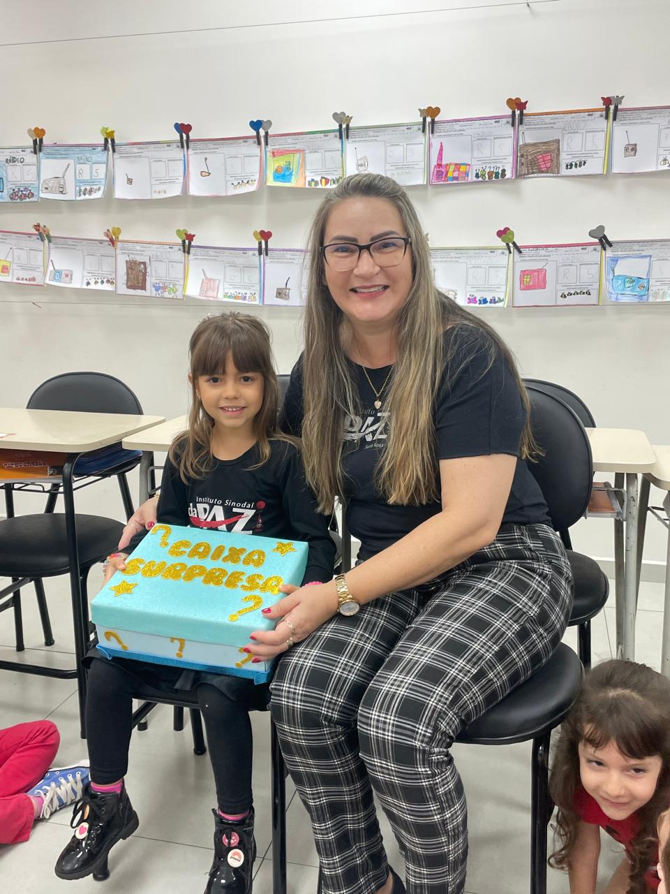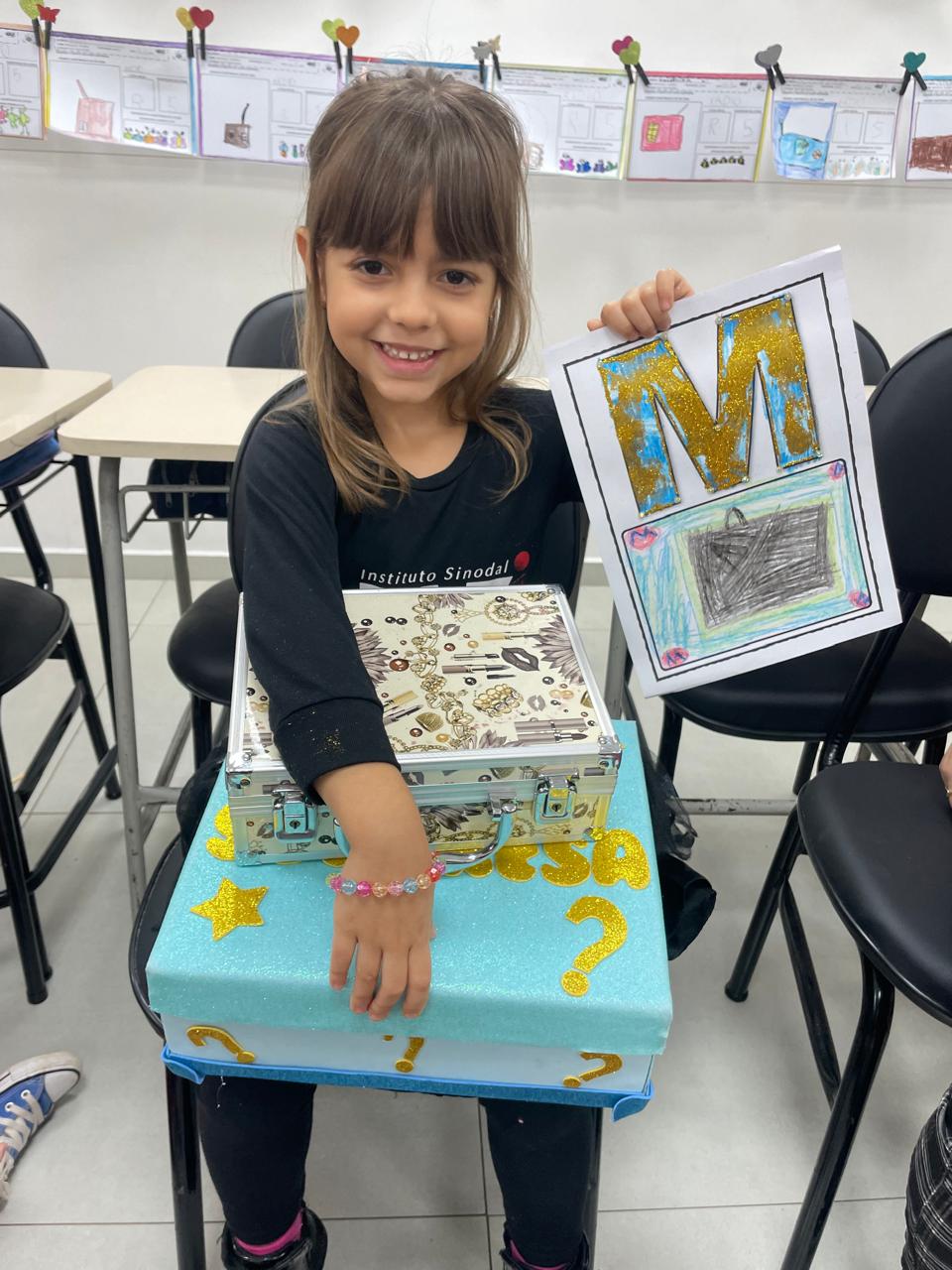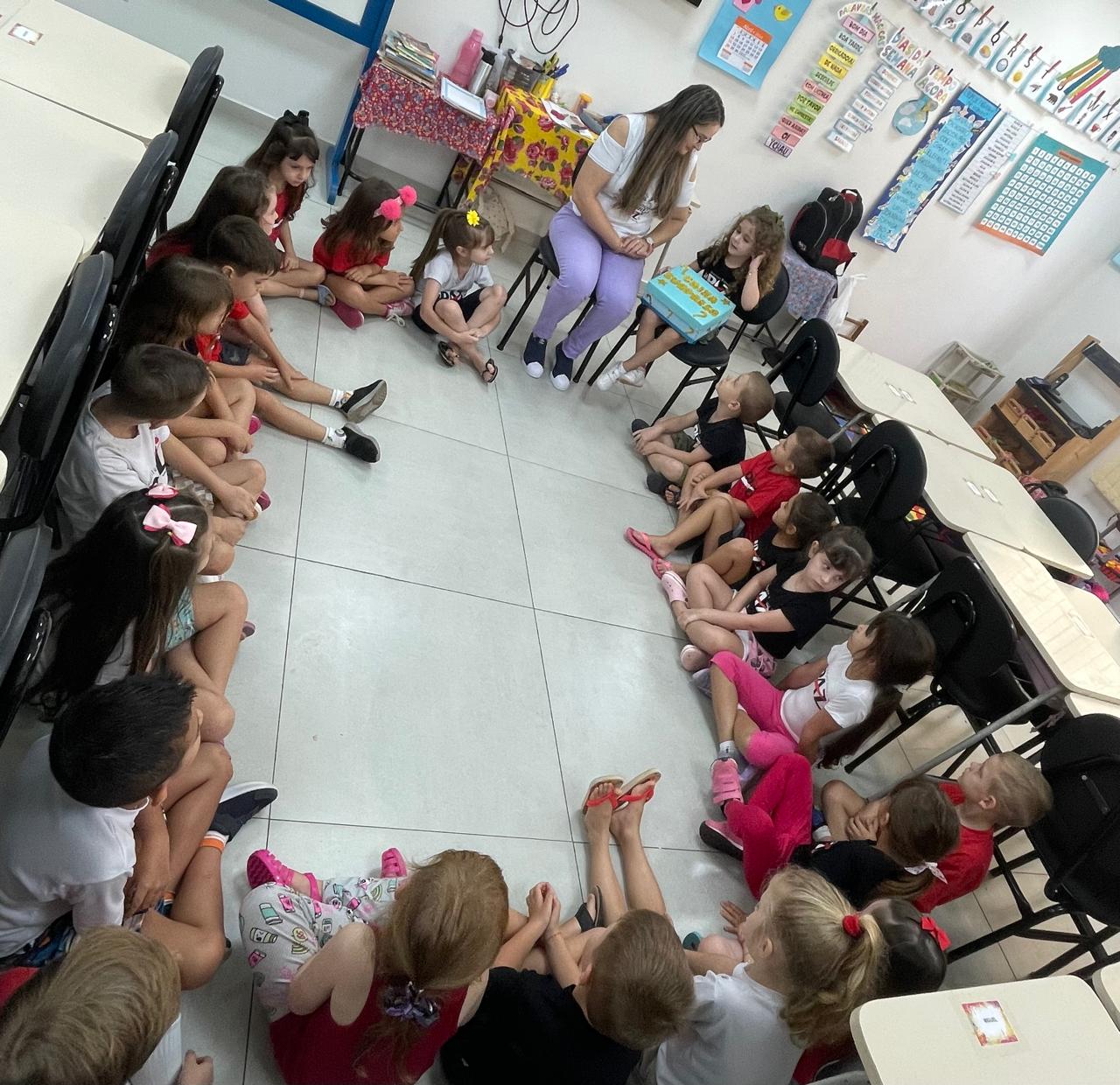 Os alunos da pré-escola 05 anos J, professora Janete Paz iniciaram o Projeto "Caixa surpresa" que tem como objetivo a construção do alfabeto coletivo, através de sorteio de uma letra por semana, cada criança leva a caixa para casa e escolhe algo significativo com sua família, para apresentar a turma.