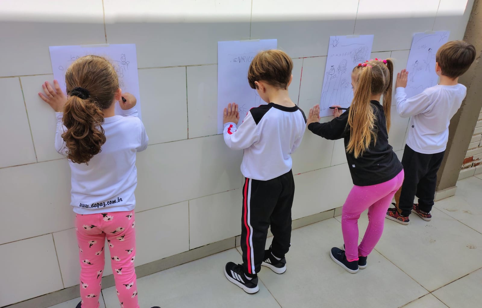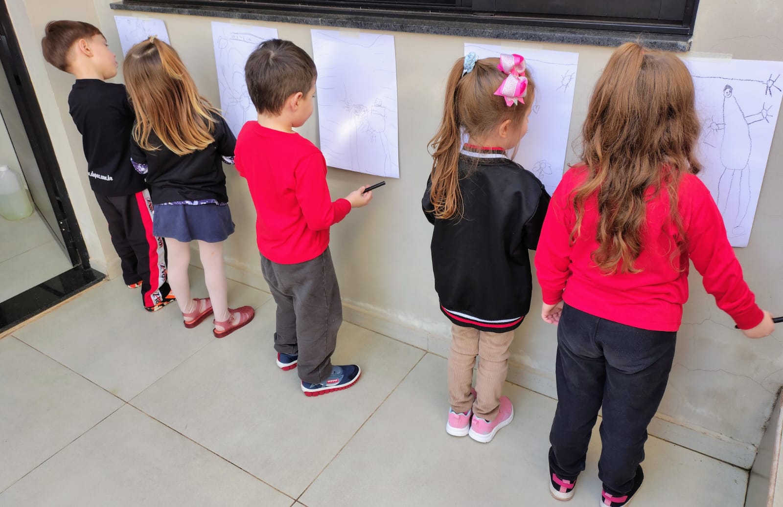 Dessa vez, o desafio foi desenhar com a folha em pé — uma proposta diferente que despertou a imaginação e deixou a atividade ainda mais divertida!