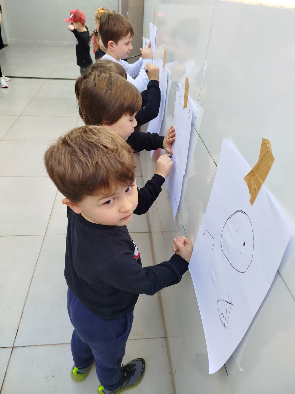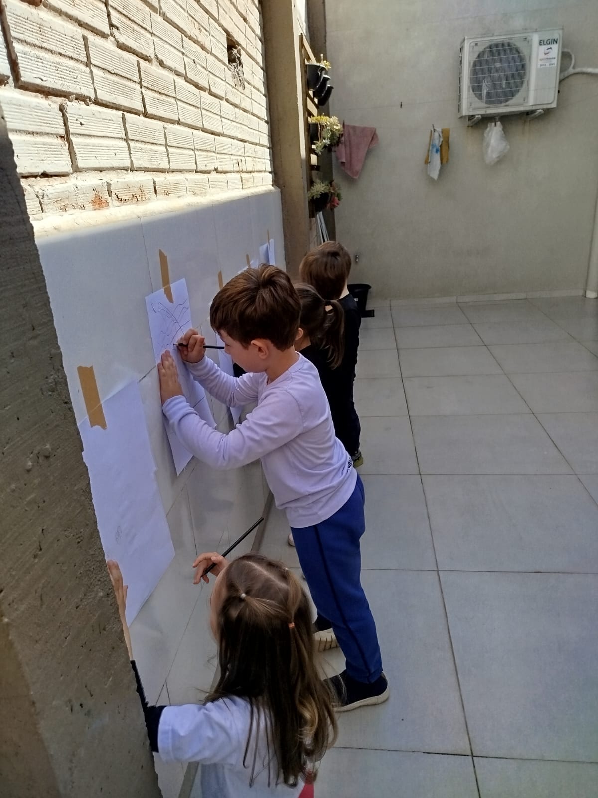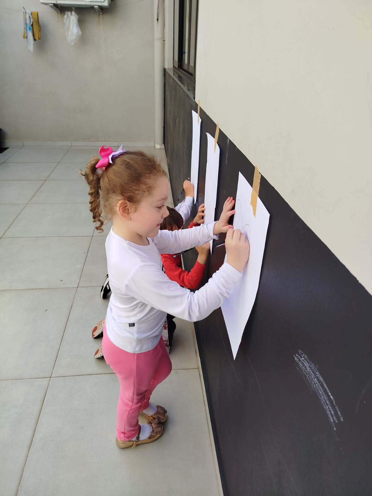 Dentro da sequência didática “Arte e expressão: Desenhar, pintar, colar e apreciar”, os pequenos foram convidados a desenhar com a folha colocada em pé. ????????️