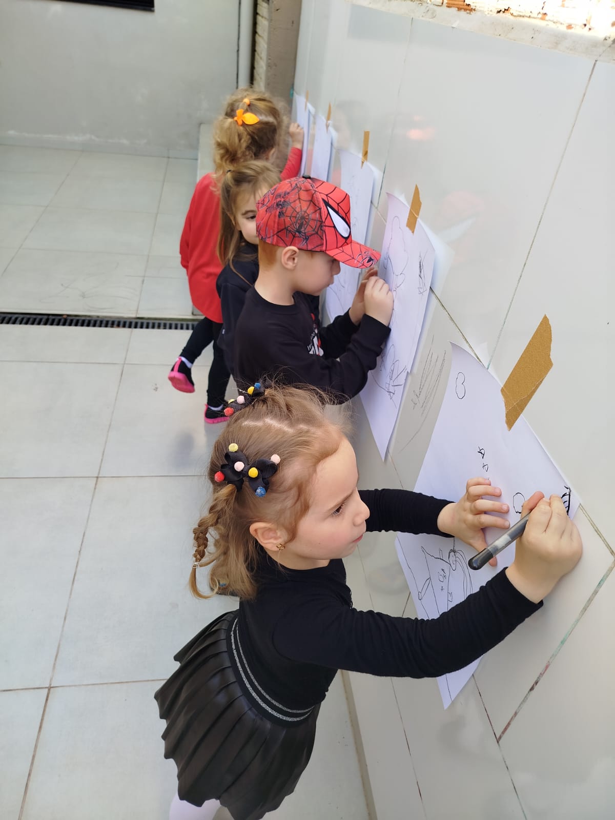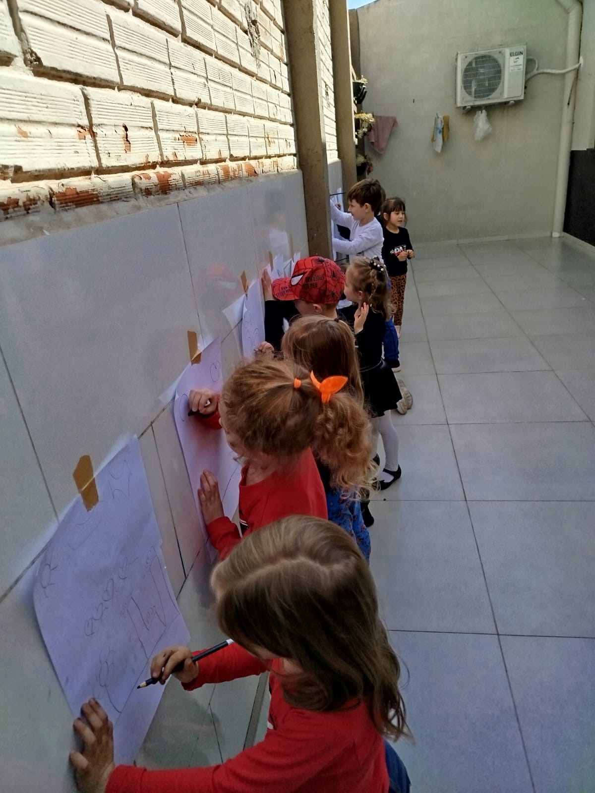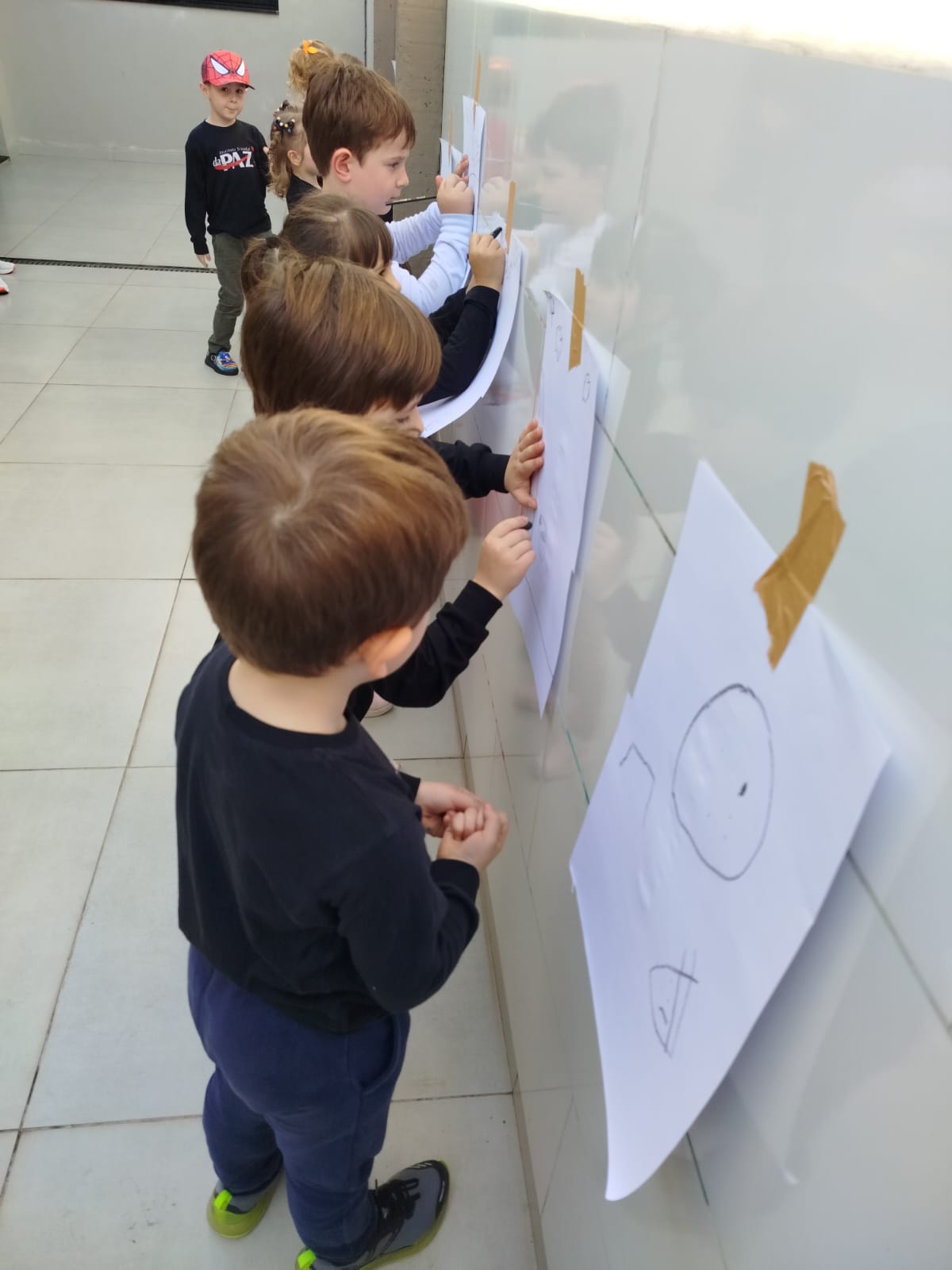 Dentro da sequência didática “Arte e expressão: Desenhar, pintar, colar e apreciar”, os pequenos foram convidados a desenhar com a folha colocada em pé. ????????️