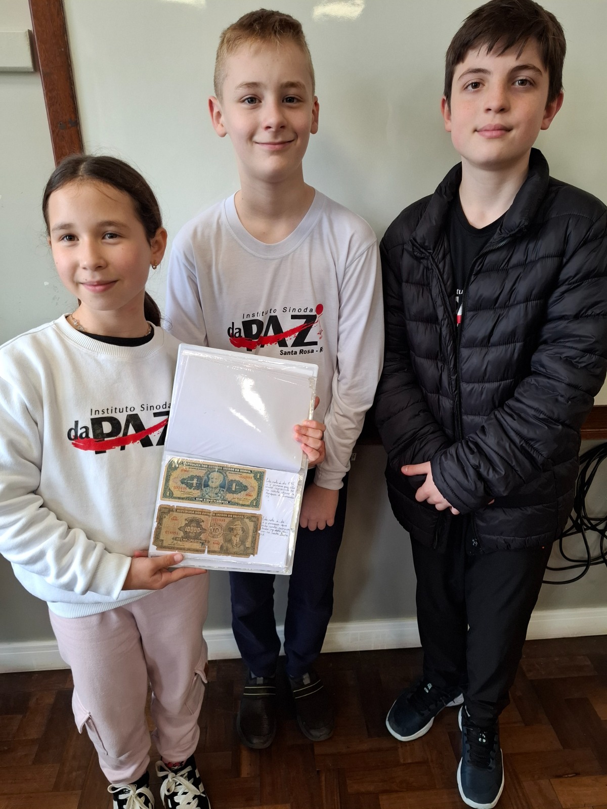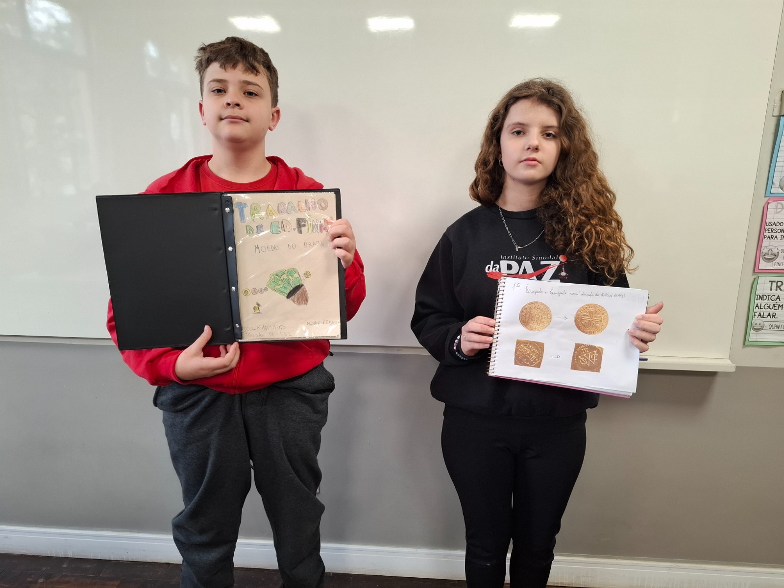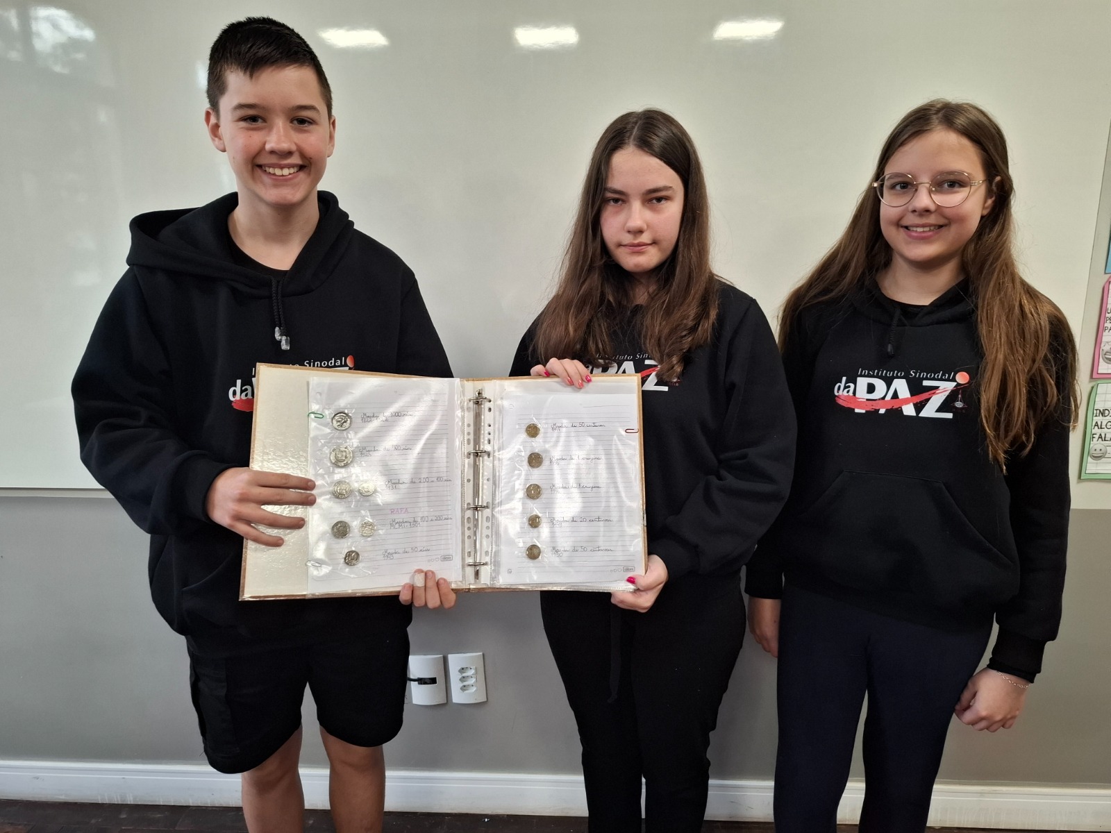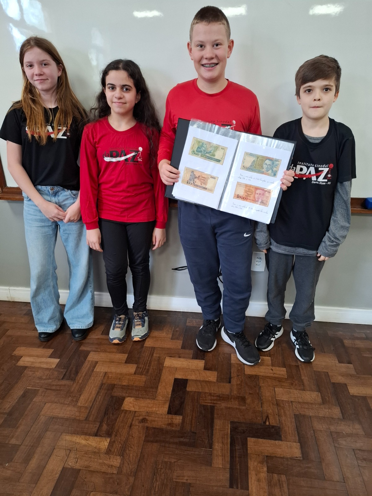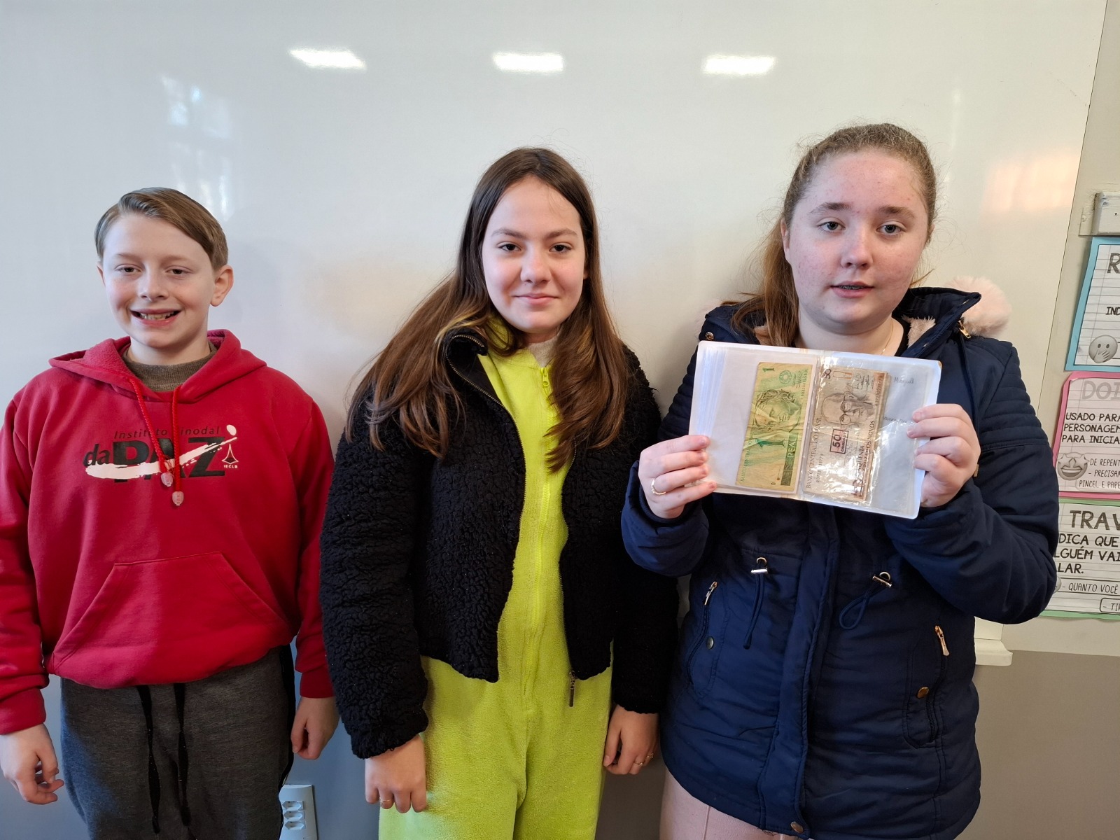 Durante a atividade, que integrou as aulas de Educação Financeira, foram apresentadas moedas desde os tempos do Réis até a moeda atual, o Real.