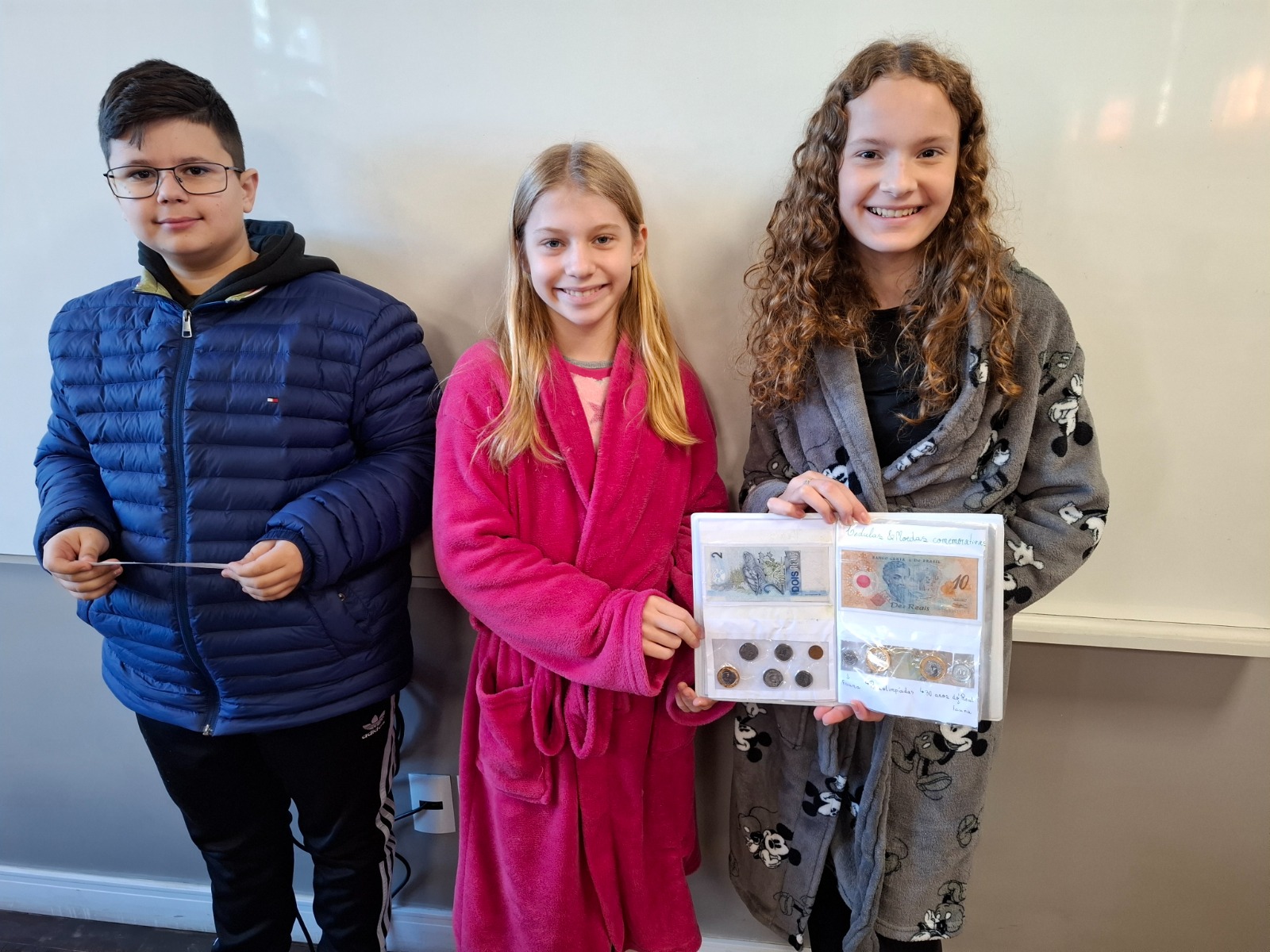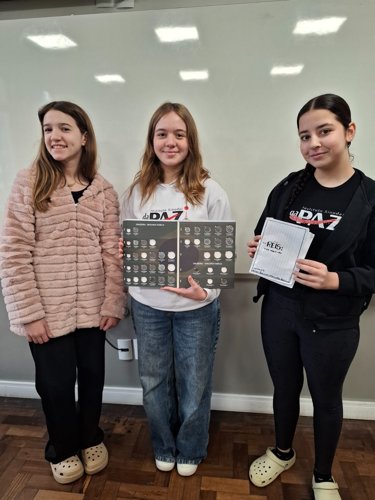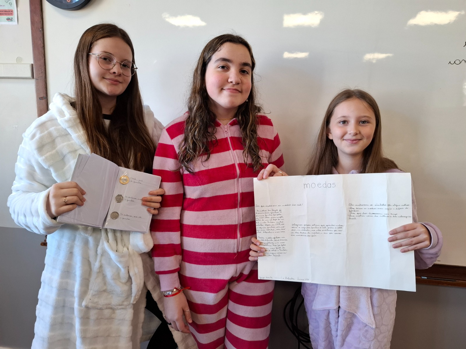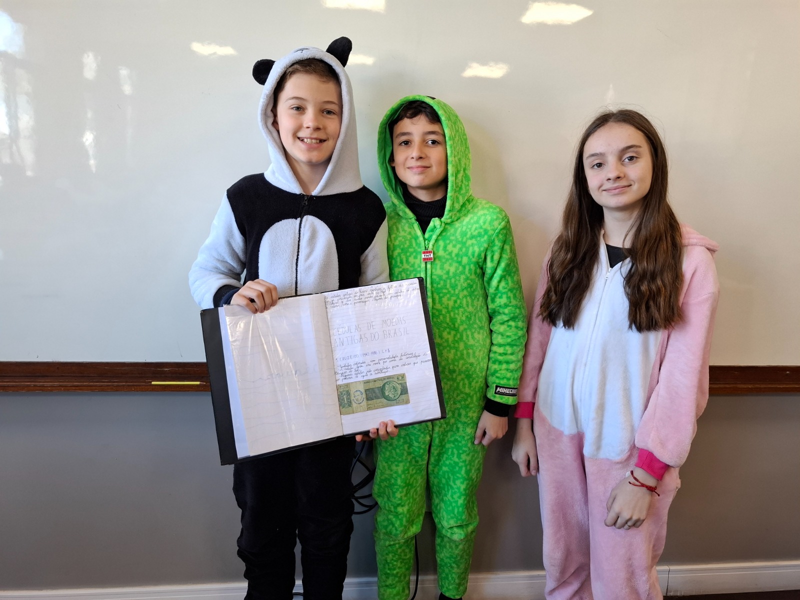 Durante a atividade, que integrou as aulas de Educação Financeira, foram apresentadas moedas desde os tempos do Réis até a moeda atual, o Real.