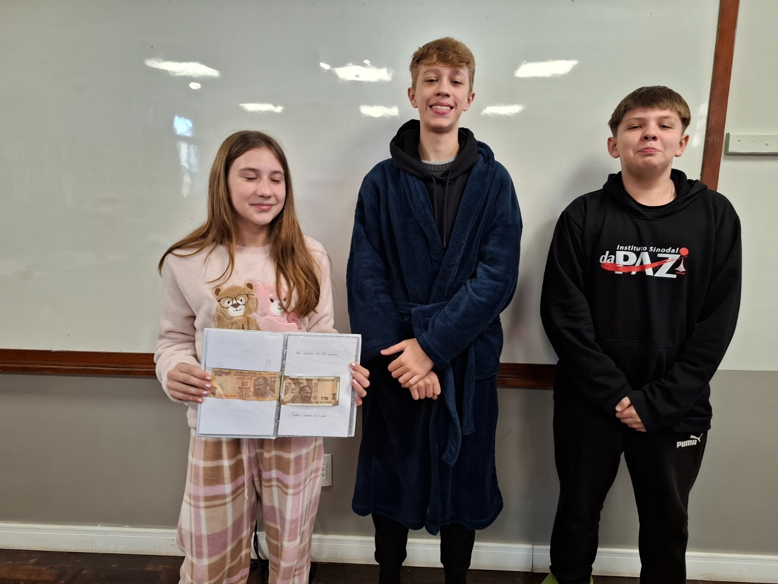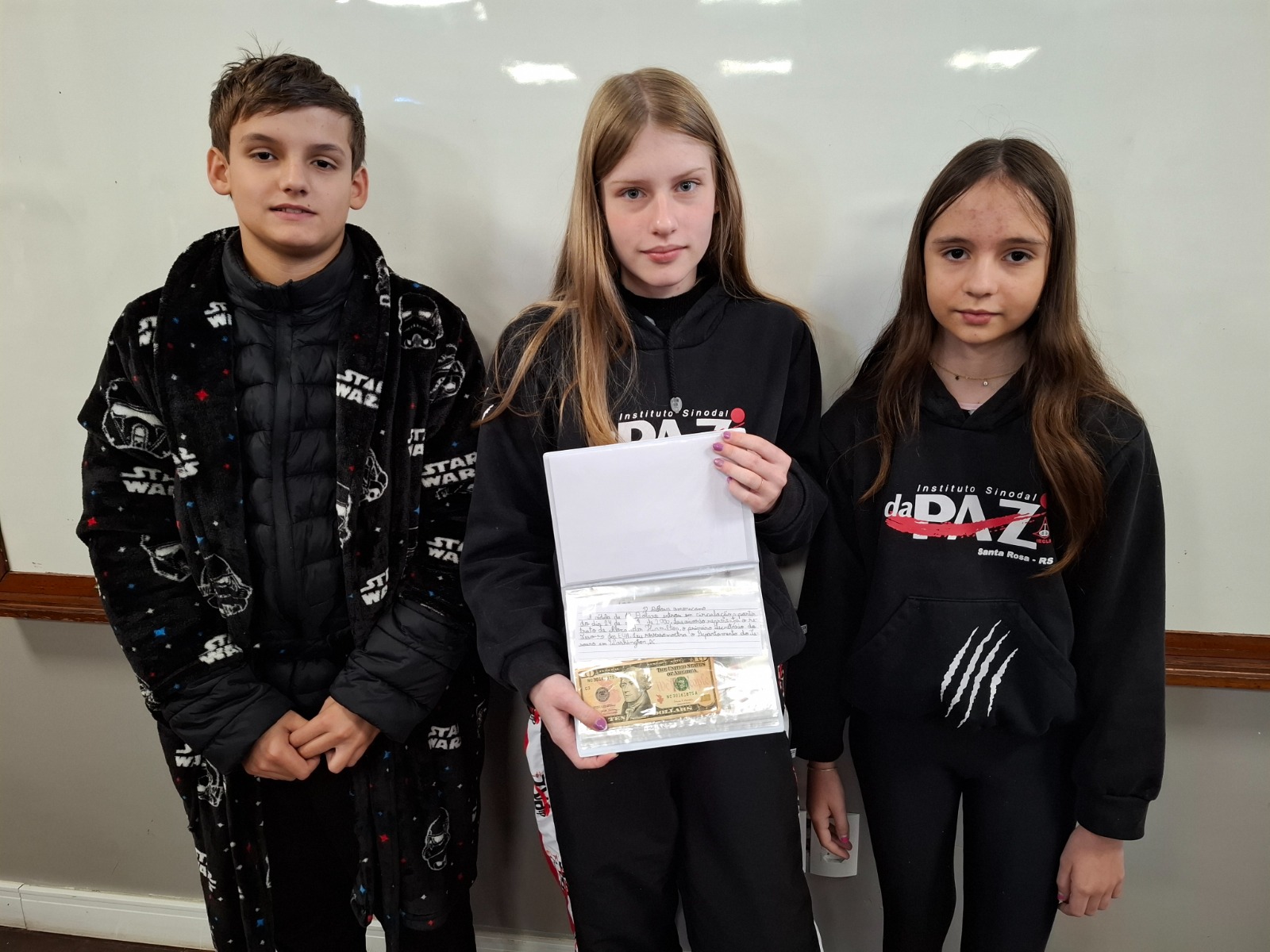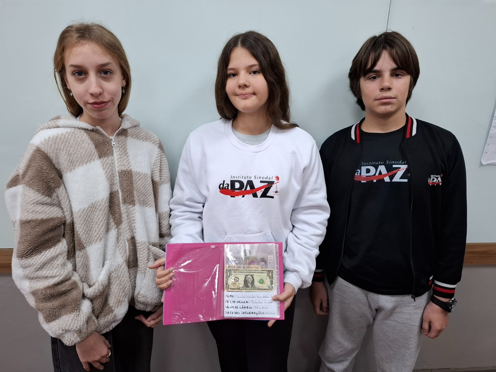 Durante a atividade, eles conheceram diferentes moedas de diversos países, realizaram a conversão cambial e compartilharam várias curiosidades sobre cada uma delas.
