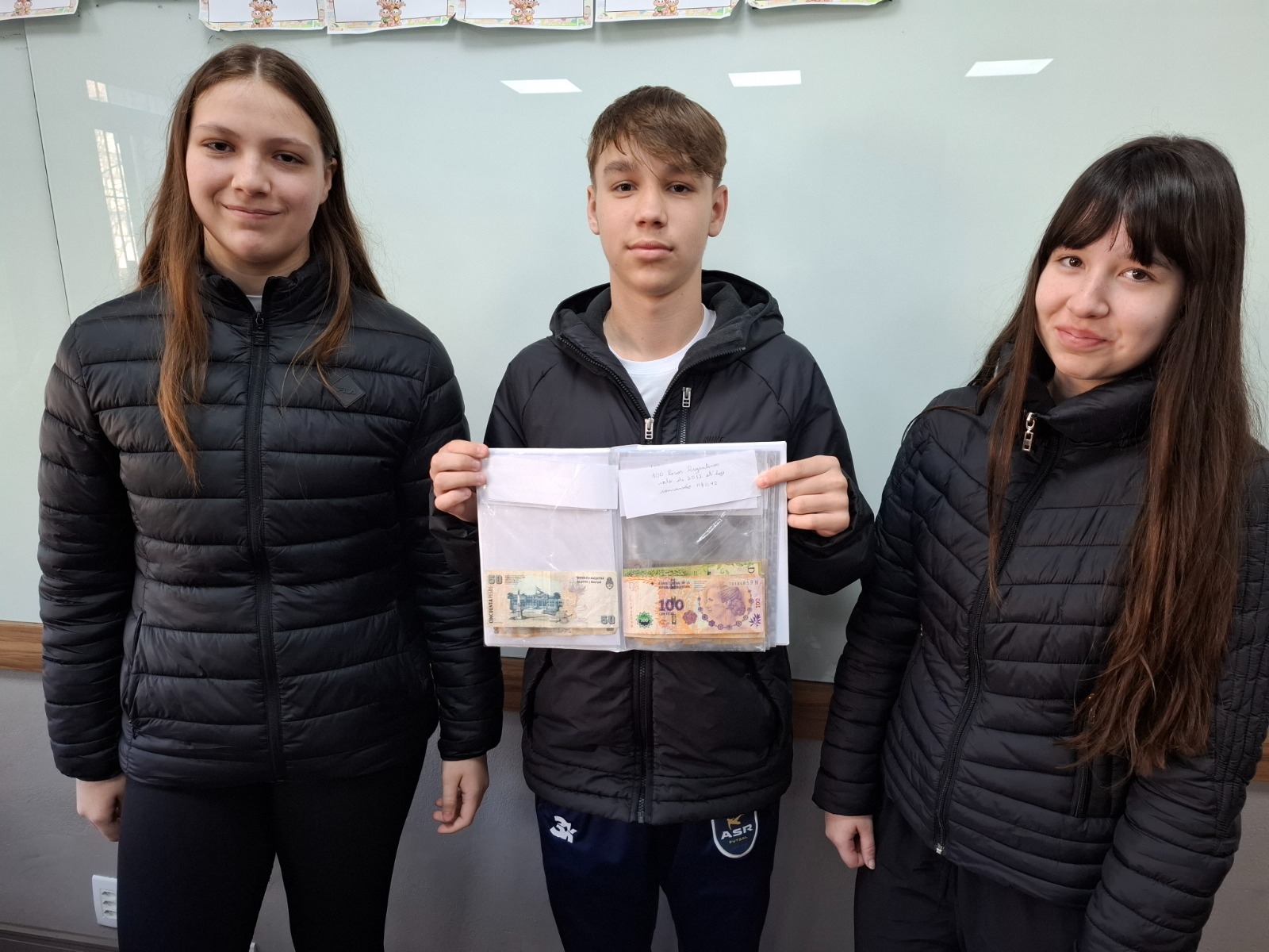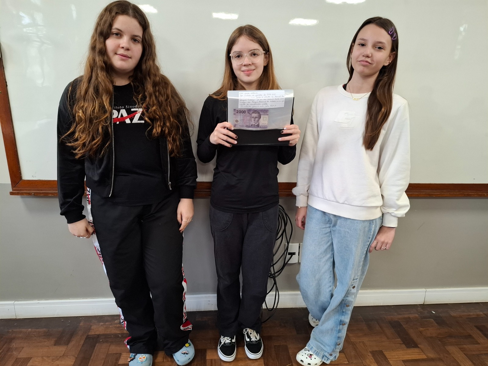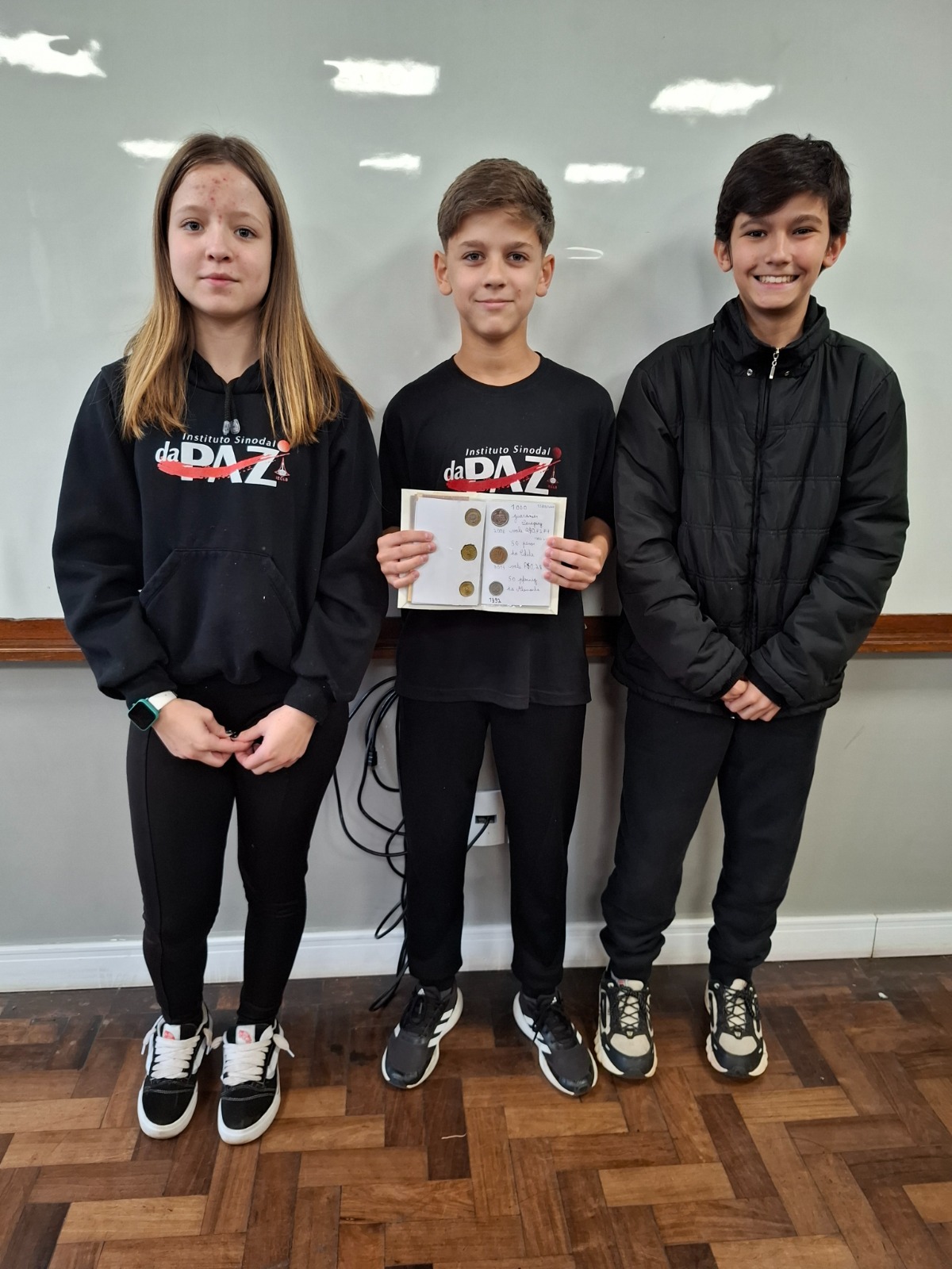 Durante a atividade, eles conheceram diferentes moedas de diversos países, realizaram a conversão cambial e compartilharam várias curiosidades sobre cada uma delas.