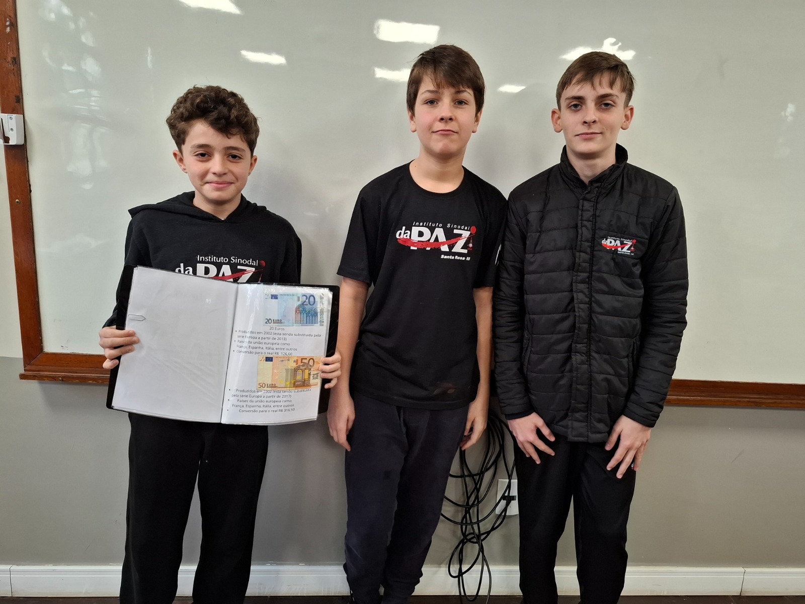 Os alunos dos 7º anos se dedicaram a um trabalho de pesquisa sobre moedas estrangeiras.