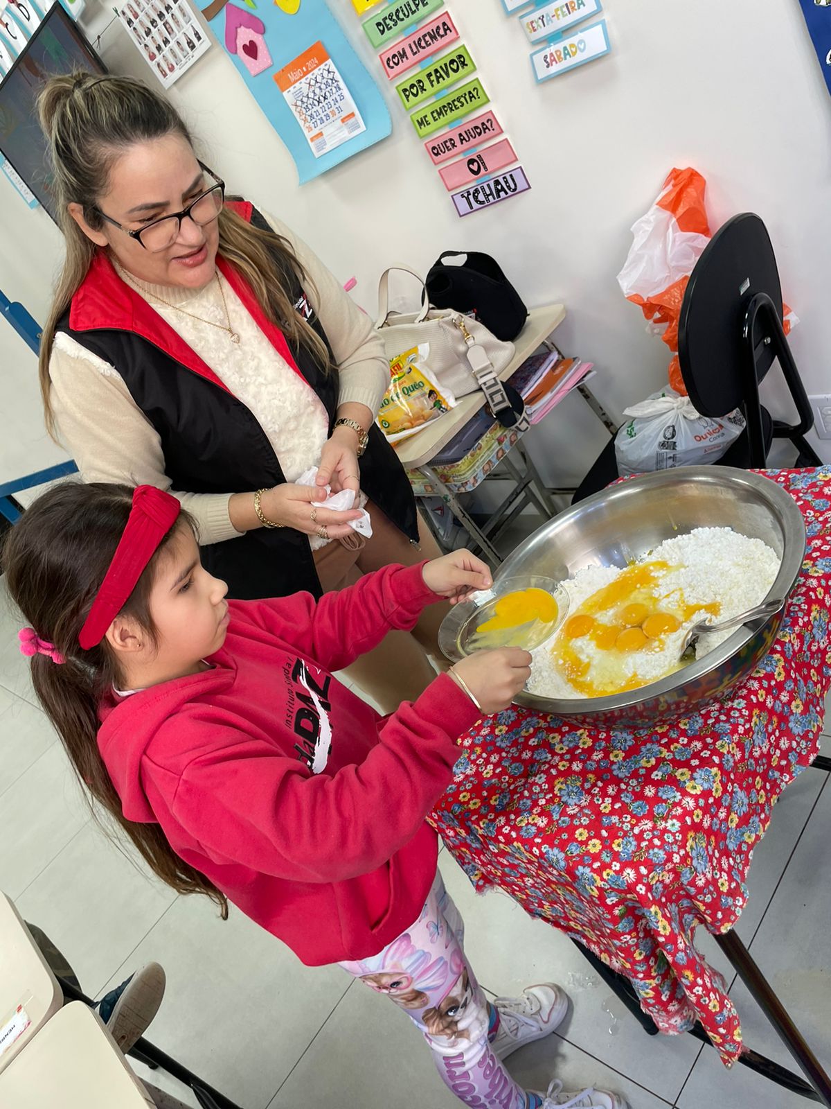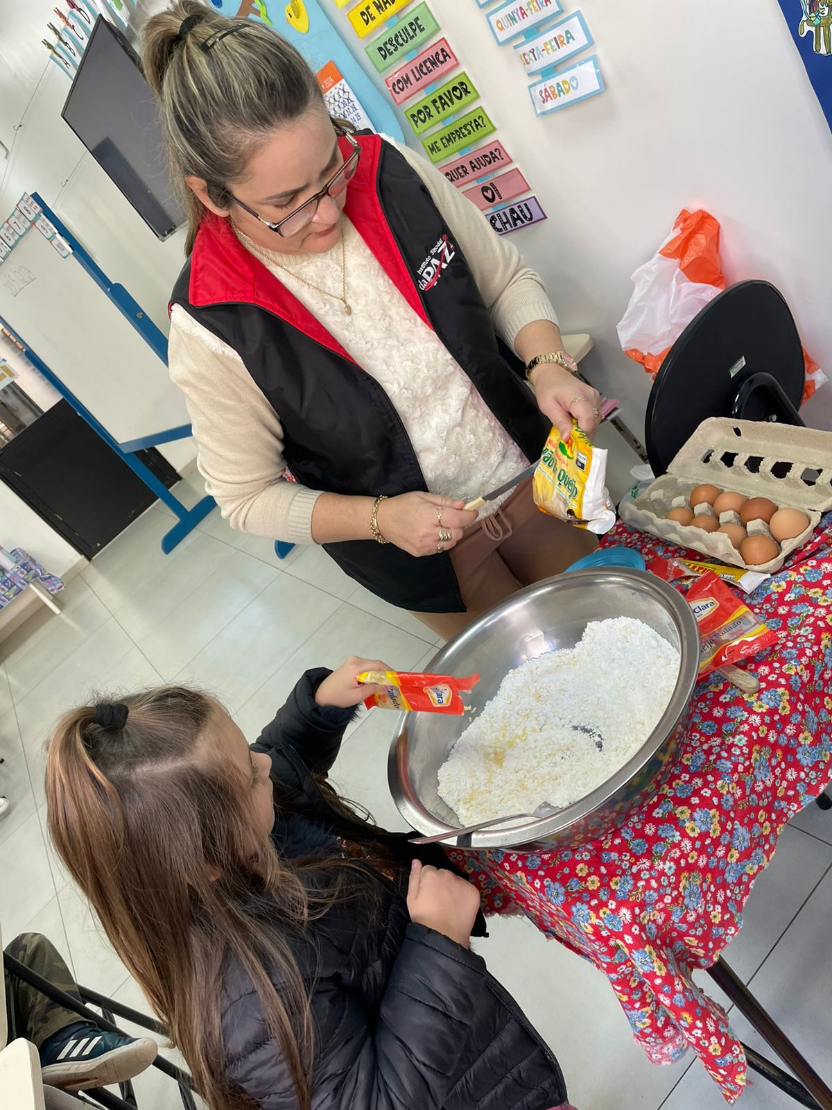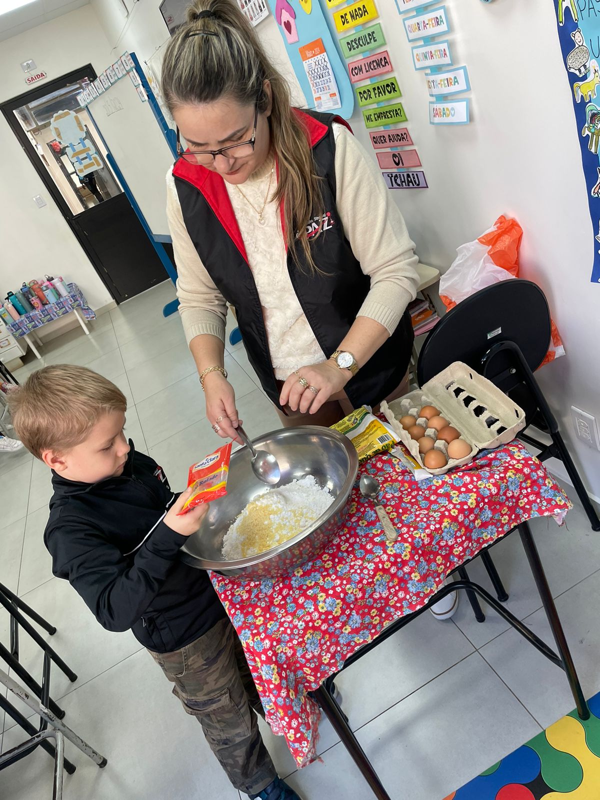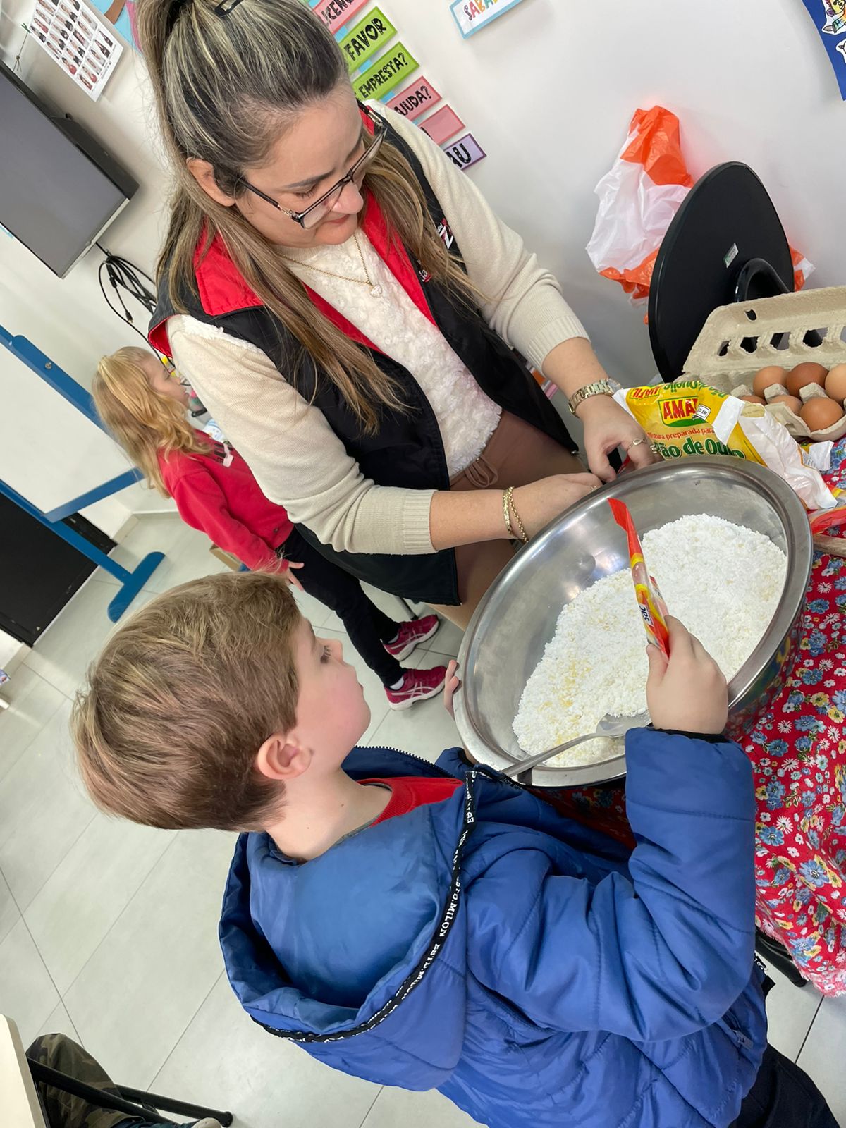 A turma da Pré-escola 05 anos da Professora Janete, durante a Sequência Didática “Comidas do Brasil”, realizaram uma pesquisa sobre um prato típico do Brasil, em seguida preparamos uma deliciosa receita de pão de queijo.