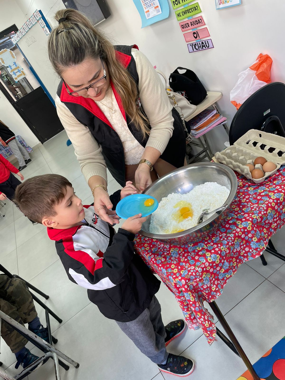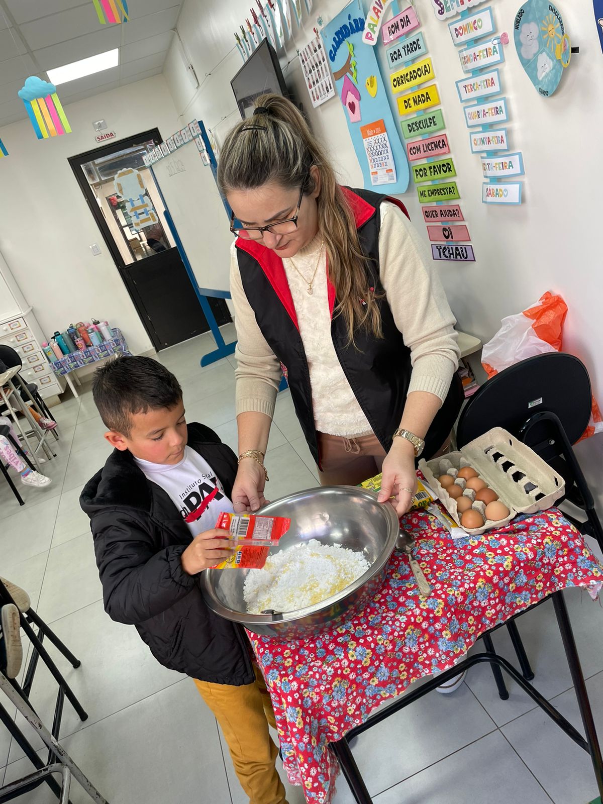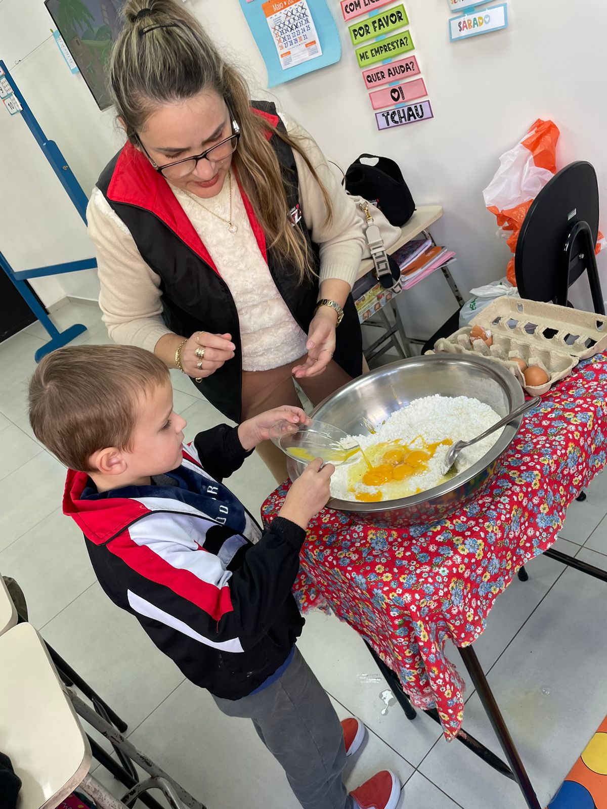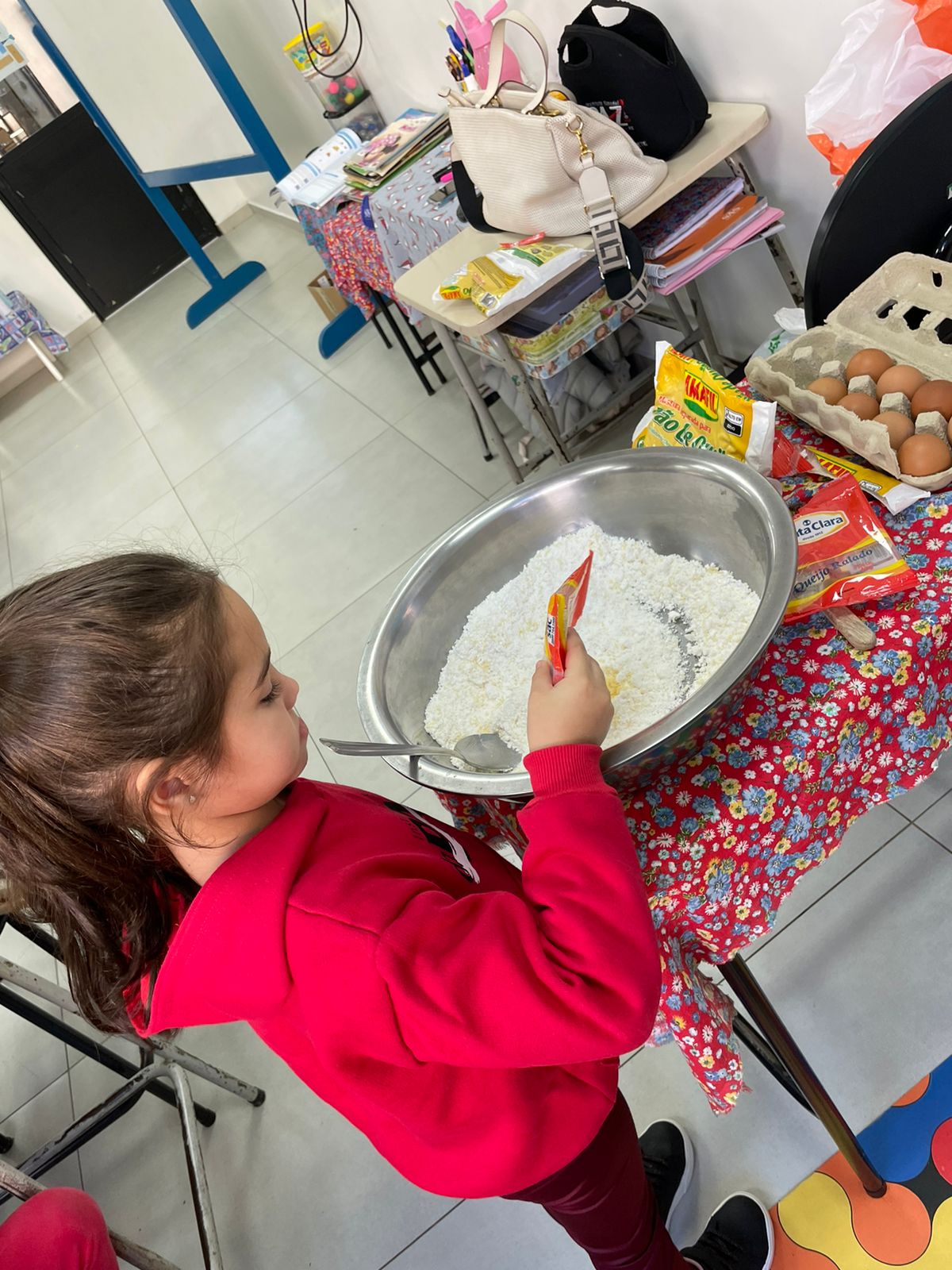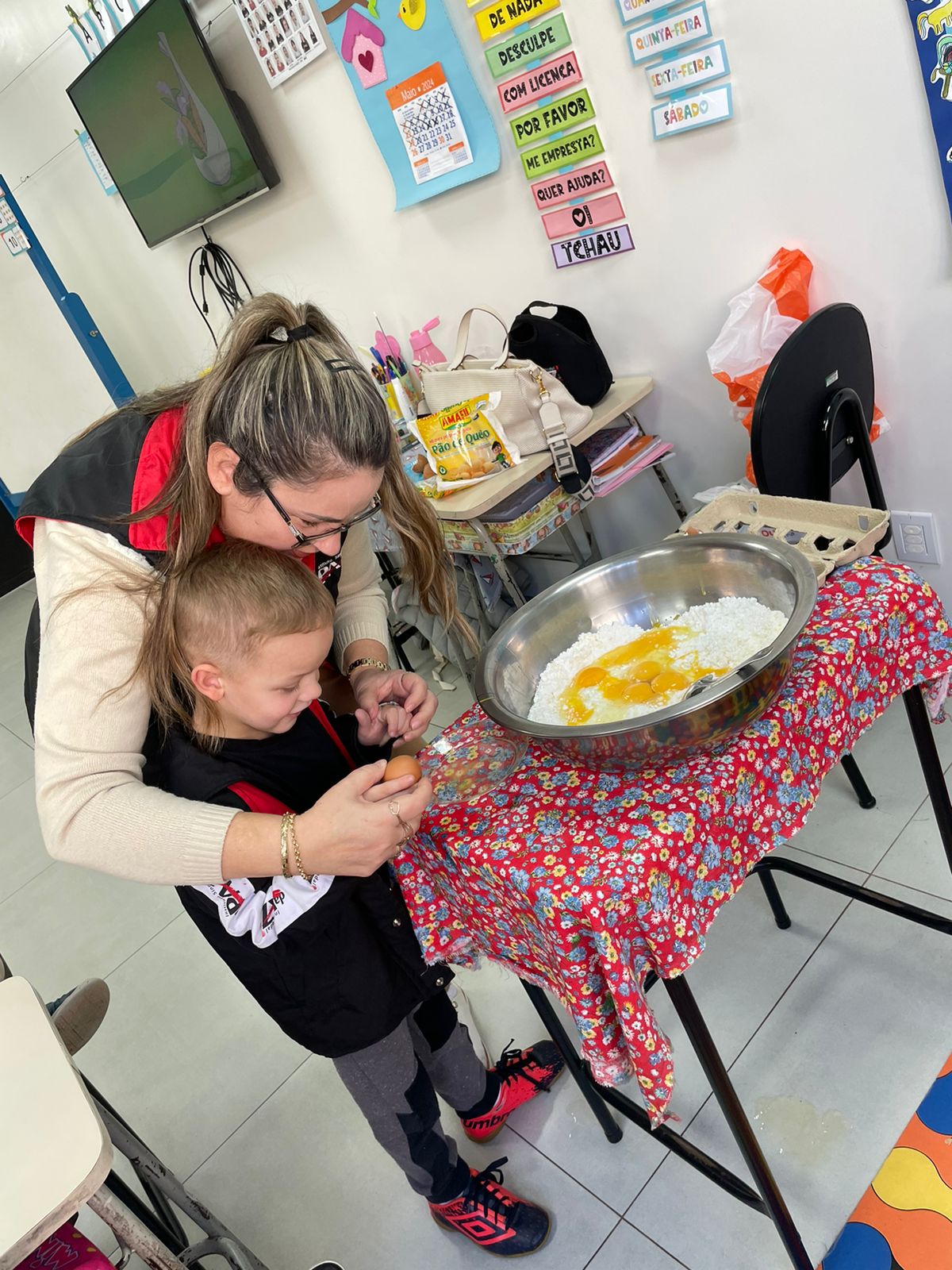 A turma da Pré-escola 05 anos da Professora Janete, durante a Sequência Didática “Comidas do Brasil”, realizaram uma pesquisa sobre um prato típico do Brasil, em seguida preparamos uma deliciosa receita de pão de queijo.
